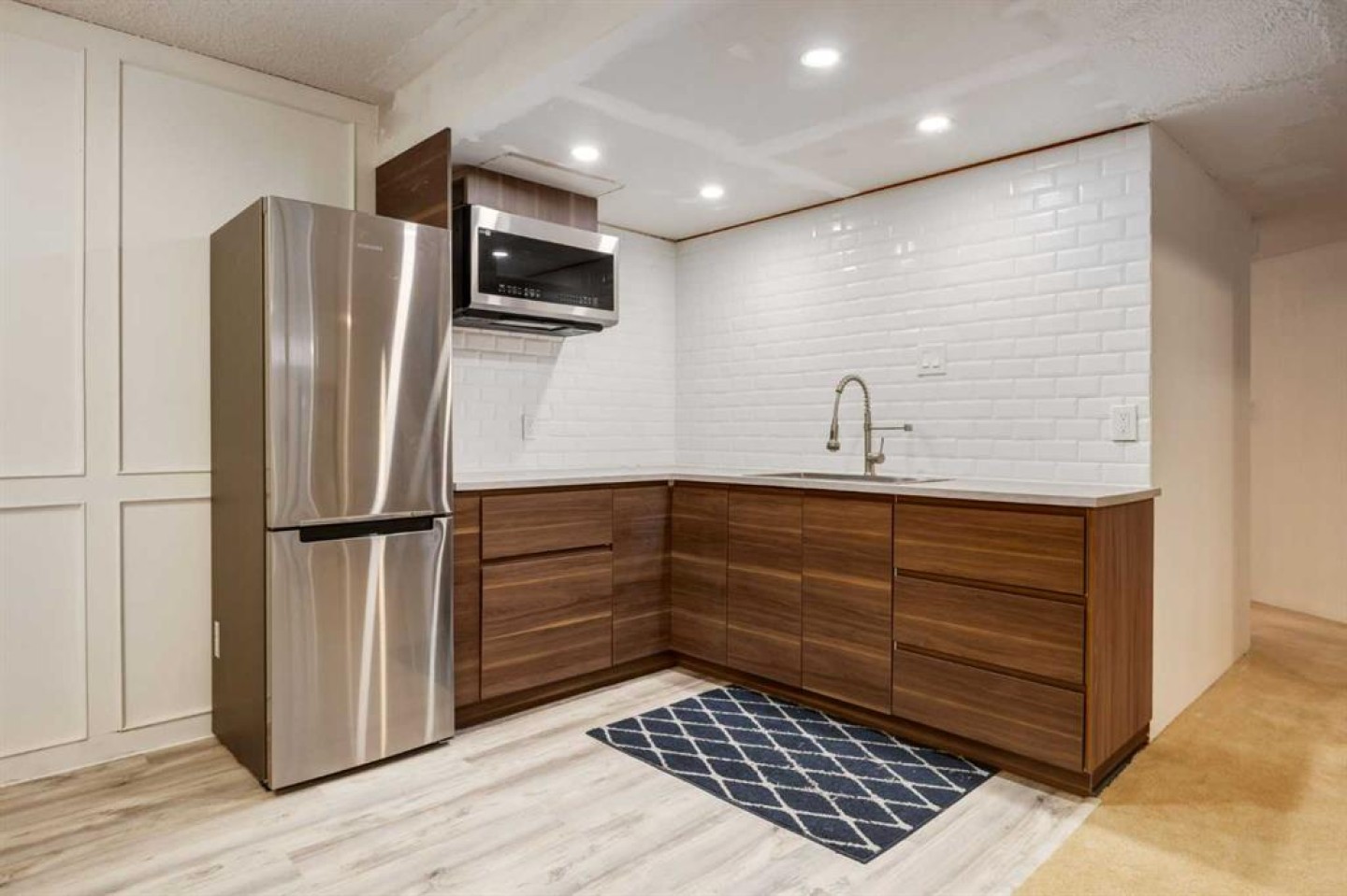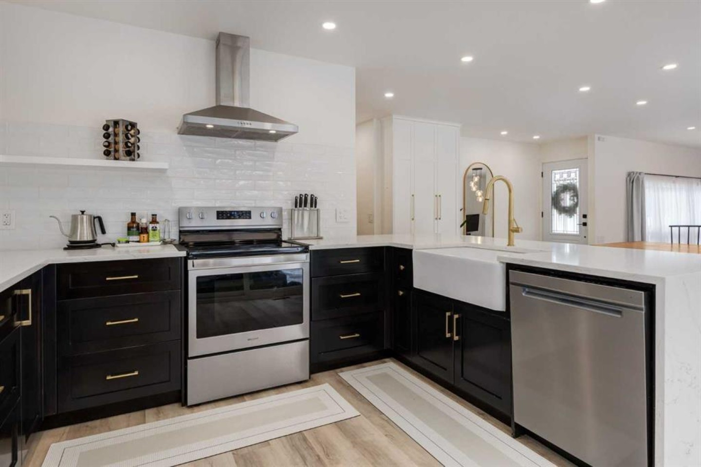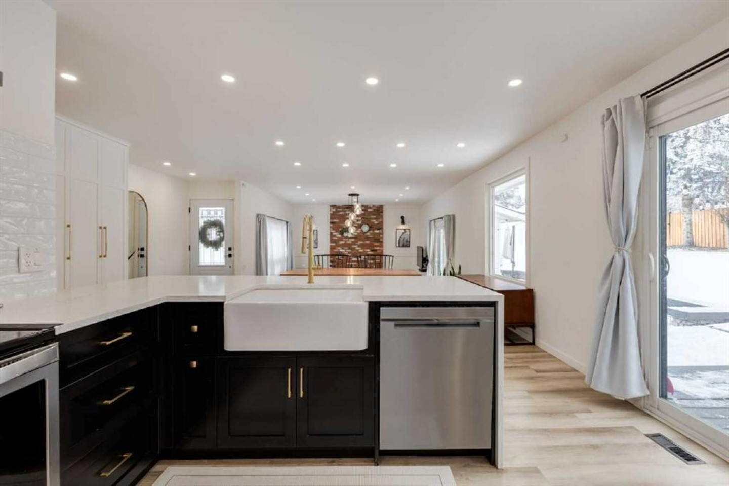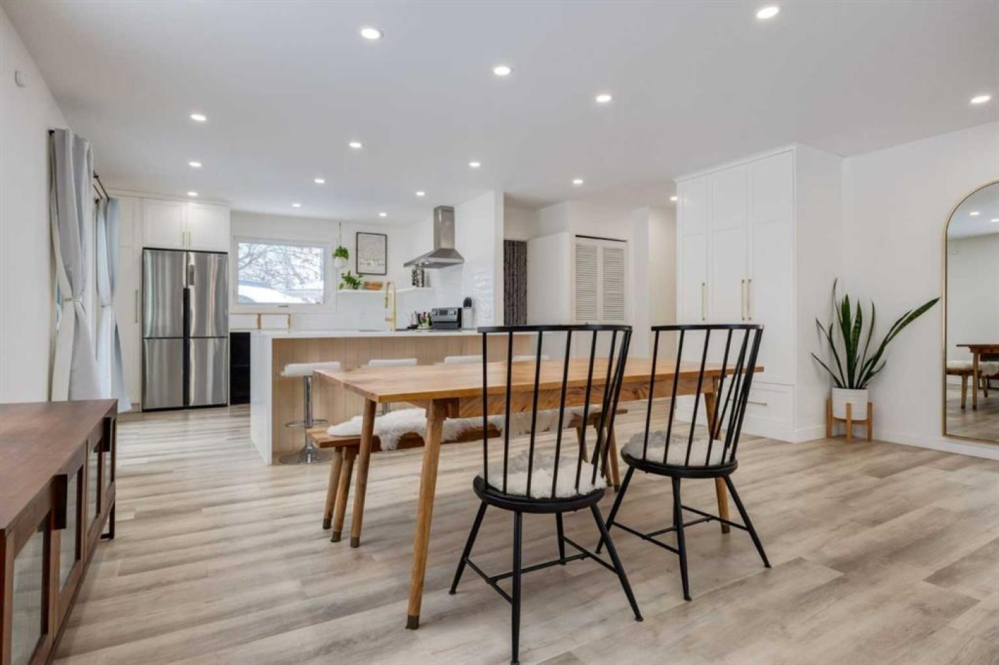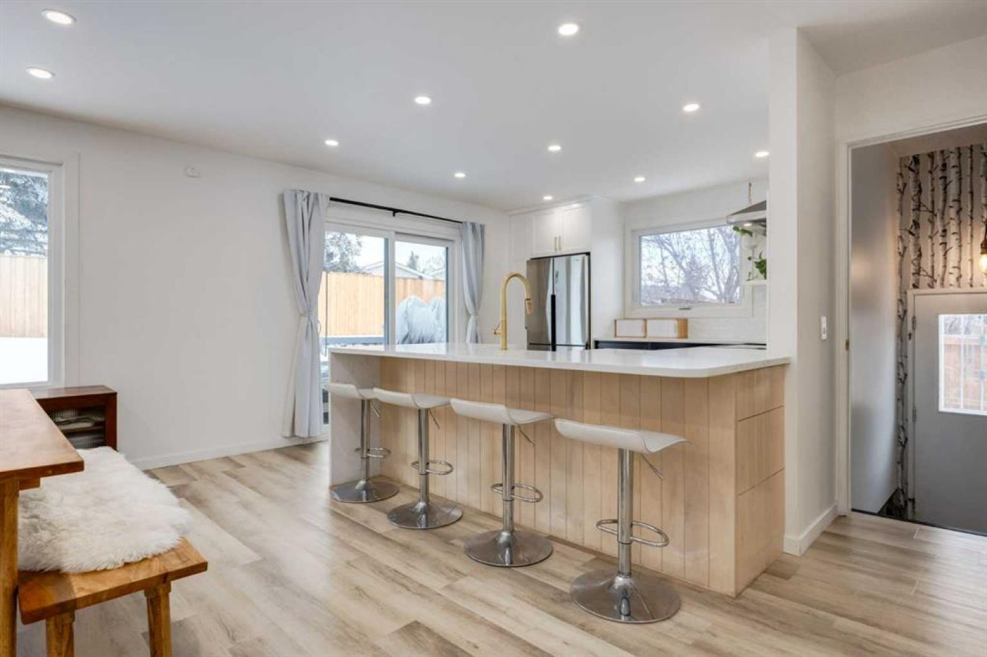 This extensively renovated home is perfect for a family or empty nesters alike, nestled in the serene community of Canyon Meadows, located on a very quiet cul-de-sac in the heart of the district away from busy roads, yet allowing quick access to Fish Creek Provincial Park, walking paths, Canyon Meadows Golf & Country Club, Southcentre Shopping Centre, great schools, community swimming pool, and close to C-Train for easy commute to downtown. The open concept living room – dining room – kitchen areas are abundant with expansive newer double pane windows allowing light to pour inside. Neutral tones and vinyl flooring throughout the main floor flow seamlessly through the three bedrooms and fully renovated bathrooms. This clean esthetic brings this classic bungalow into the modern era with style and elegance. Step through the front door and into the open concept dining area, ideal for family dinners. The fully renovated kitchen features a granite waterfall island, high end finishes, beautiful soft-close cabinetry with clever storage to hide the microwave and ample storage for the chef in the family. While preparing meals in this amazing kitchen, enjoy the view out to the backyard while attending to guests in the dining area and family room. Everyone will gather in the adjacent family room to watch TV or hang out in front of the cozy wood fireplace. The large primary bedroom has room for a sitting area, and includes a 3-piece ensuite. Two kid-sized bedrooms and a second full bathroom complete the main floor, allowing options for work from home, room for children, or guest bedrooms. The fully developed basement offers another 835.56 SF of developed living space including a recreation room, second wood fireplace, kitchenette / bar for entertaining, bedroom, bathroom, and ample storage. This is an awesome area to kick back and enjoy. Recent renovations include kitchenette / bar, newer furnace, hot water tank, and water softener. Outside, the pie-shaped back yard provides a large grass area for the pets to run free, as well as a patio area, multi-level decks, ample built-in seating areas, and even a place to hang your hammock. This yard is ready for BBQs; a welcoming place to layback, relax and enjoy the serene lifestyle of Canyon Meadows. This is a fantastic opportunity. The renovations are too numerous to list. Don't miss out, book your showing today!