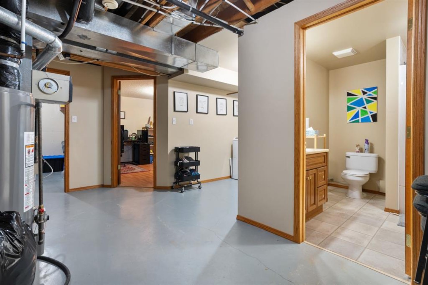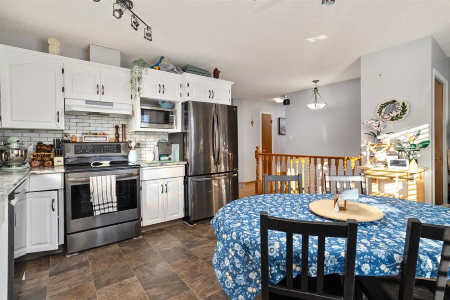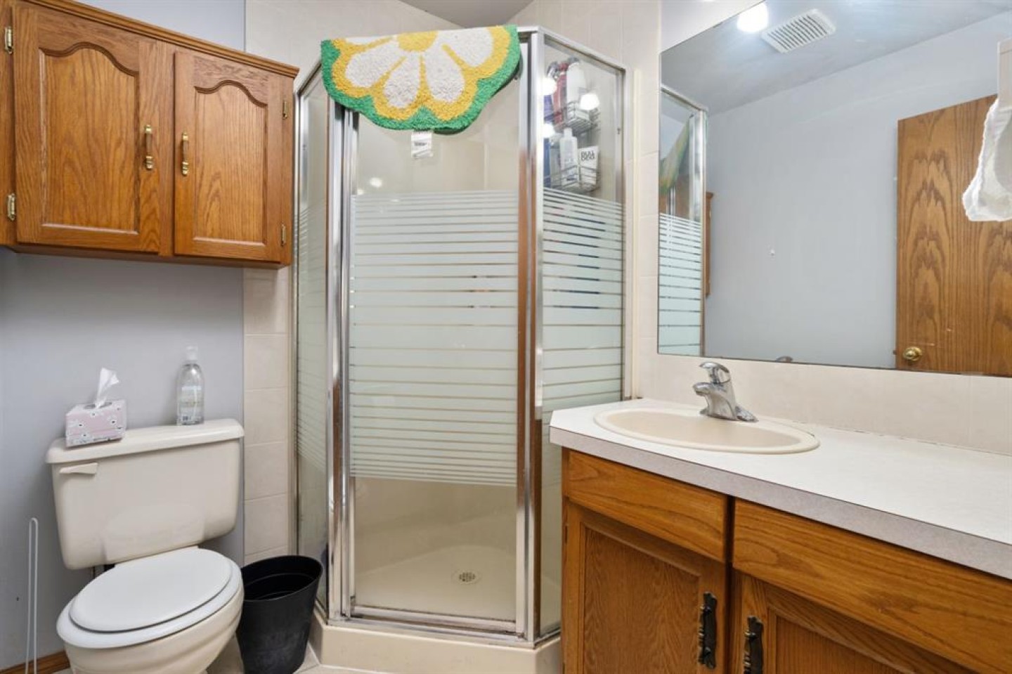 Welcome home to this inviting bungalow in the highly sought after community of Victoria Park, with mature streets, green spaces, & a playground with skating rink just steps away! Enjoy quick access to west end and downtown shopping, the Camrose Golf Course, and walking trails all just minutes from your door. Step inside to a welcoming front entry that opens into a spacious living room featuring hardwood floors and a beautiful bay window that fills the space with natural light. The bright kitchen offers fresh white cabinetry, all newer appliances and a cozy eating area with views of the backyard, making it the perfect place to gather. Step outside onto the spacious back deck and take in the fully fenced and nicely landscaped yard, ideal for relaxing or entertaining. The outdoor space truly shines with a handy storage shed, an oversized double garage, and a fenced concrete pad with room for RV parking. This home is thoughtfully designed for family living, with 3 bedrooms including the primary bedroom and a full four piece bathroom on the main floor, complete with a jetted tub for unwinding at the end of the day. The spacious primary bedroom offers a walk in closet and a three piece ensuite. Downstairs, the fully finished basement provides even more living space with a large rec room anchored by a cozy corner fireplace, a three piece bathroom, a guest bedroom, and laundry area. You will also appreciate the generous storage options, including a dedicated storage room and under stair storage. A brand new hot water tank was recently installed for added peace of mind. This is a warm, well cared for home in a fantastic neighborhood!