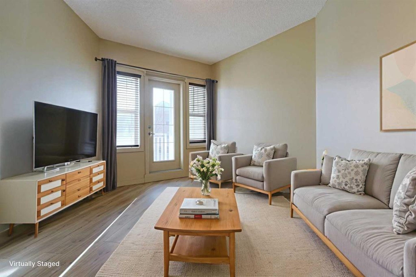 Here is the sought-after neighbourhood of Garrison Green is this fantastic 1 bedroom condo the popular GATEWAY GARRISON GREEN project, walking distance to beautiful Peacekeepers Park with its memorial to our veterans. Available for quick possession, this 3rd floor unit enjoys laminate floors & high ceilings, maple kitchen with granite counters, titled underground parking stall & covered South-facing balcony overlooking the central courtyard. You’ll love this sun-drenched home with its open concept floorplan, featuring the spacious living/dining room & stylish kitchen with island & pantry, black subway tile backsplash & stainless steel appliances which includes a Bosch dishwasher. Great-sized bedroom with 2 windows looking out onto the balcony. Full bathroom with shower/tub combo & laundry closet with space-saving Whirlpool washer/dryer. Overlooking the courtyard, the balcony – complete with natural gas line for your BBQ, is the perfect spot to relax, unwind & enjoy the fresh open air. Also included with this terrific home in this concrete building is a titled parking stall in the secure underground parkade & titled storage locker which is conveniently located just steps from your parking spot. Monthly condo fees include heat, water-sewer & electricity, plus access to the building amenities: main floor fitness centre & yoga studio, residents lounge, bike storage & library; there is also an onsite property manager, underground visitor parking & guest suites you can rent. Prime location just minutes to Mount Royal University, transit & trendy Marda Loop, North Glenmore Park, highly-ranked schools, museums & downtown.