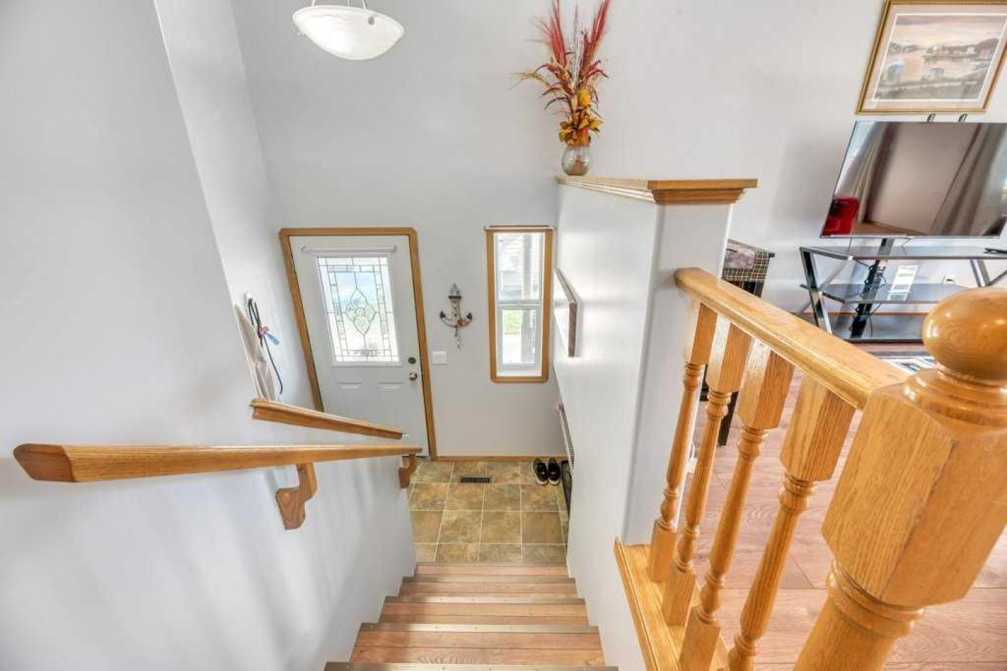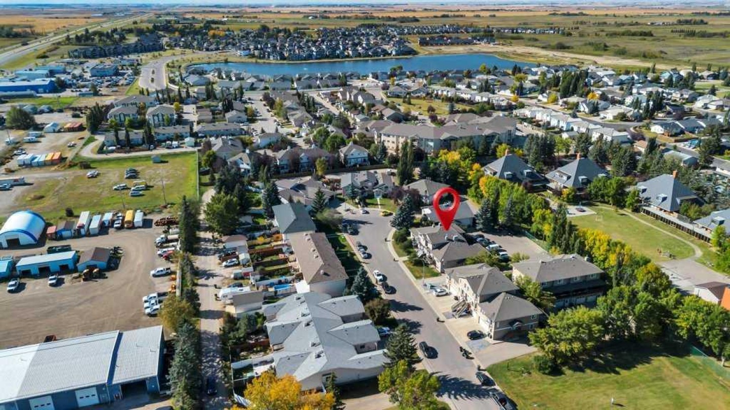 Welcome to this bright and inviting, like new condition end unit in a well-kept 6-plex, tucked away in a quiet cul-de-sac in the heart of Strathmore. Offering both privacy and convenience, this home provides easy walkability to local shops, restaurants, and schools while maintaining a peaceful residential feel. With off-street parking included, the location blends small-town comfort with everyday practicality. The bi-level floor plan creates a thoughtful separation of spaces. The main level features an open-concept kitchen, dining area, and living room designed for both connection and function. Large windows fill the home with natural light, and patio doors open to a sunny south-facing deck, perfectly sized for a table and barbecue—an ideal spot to enjoy morning coffee or evening dinners outdoors. A handy half bathroom, large pantry closet, and a welcoming entrance with a boot cupboard complete the main floor, making day-to-day living effortless. The lower level is where comfort and rest take priority. Two well-sized bedrooms, a full bathroom, a practical laundry room with your utilities and a storage closet ensure that everything has its place. Recent updates bring peace of mind, including refreshed flooring, new paint, a washer and dryer just three years old, and a kitchen equipped with fridge, stove, and dishwasher that have been reliably maintained. The balance of style and function makes this home ready for its next chapter. Whether you are a first-time buyer, investor, or someone seeking a low-maintenance lifestyle in a convenient location, this property offers exceptional value. Thoughtful updates, a desirable end-unit position, and a layout designed for both comfort and practicality make this home a standout opportunity in Strathmore’s market.