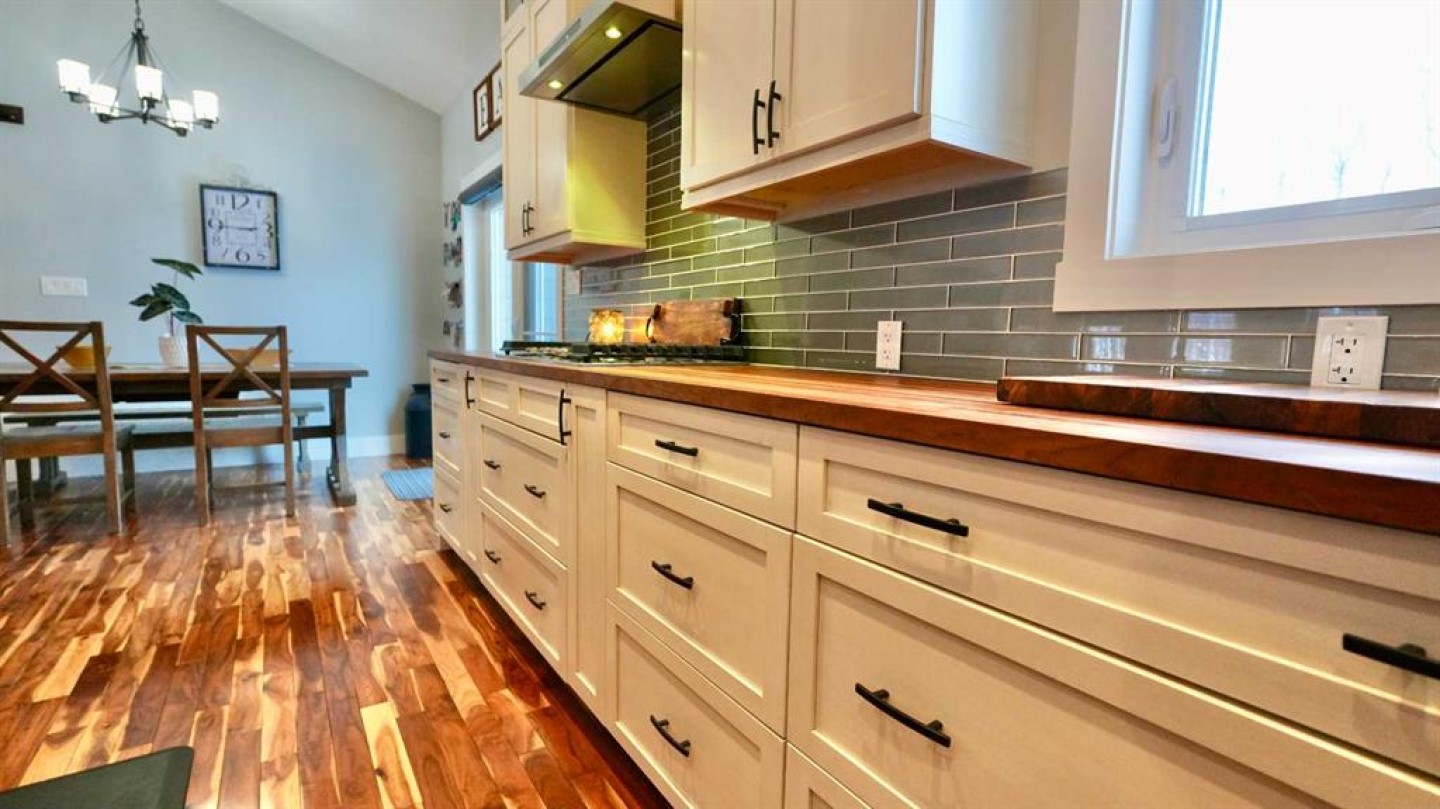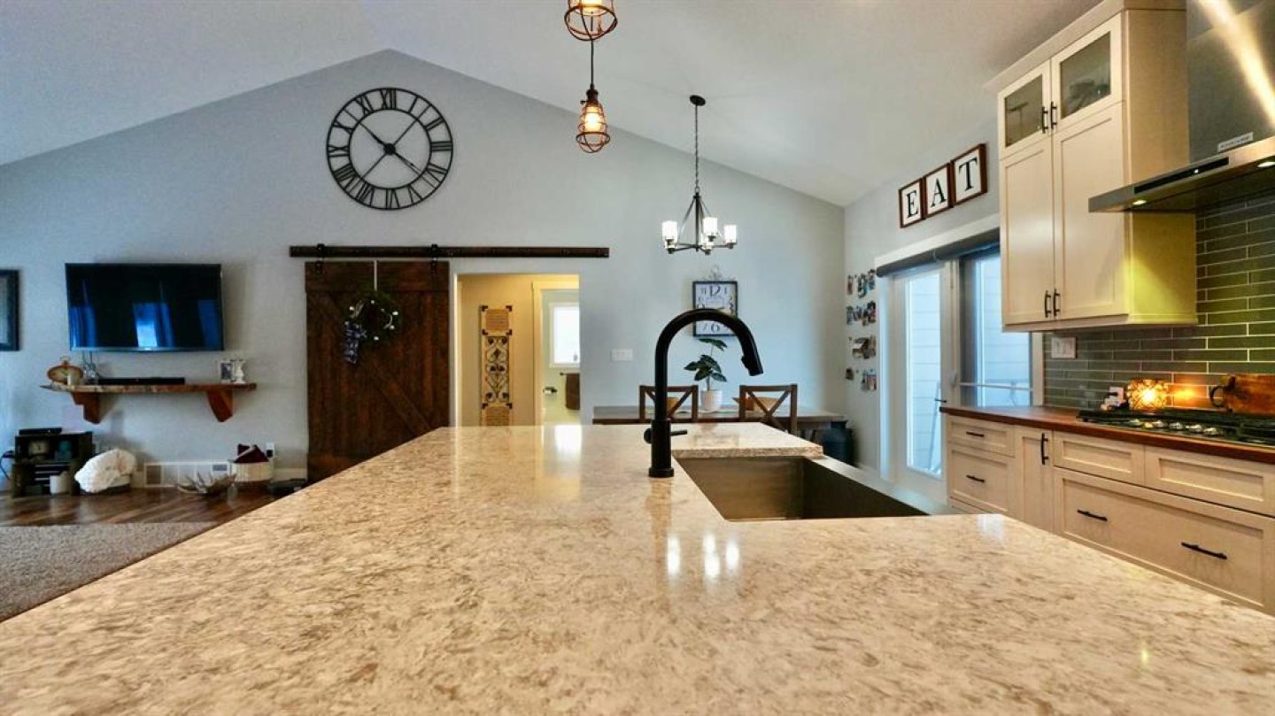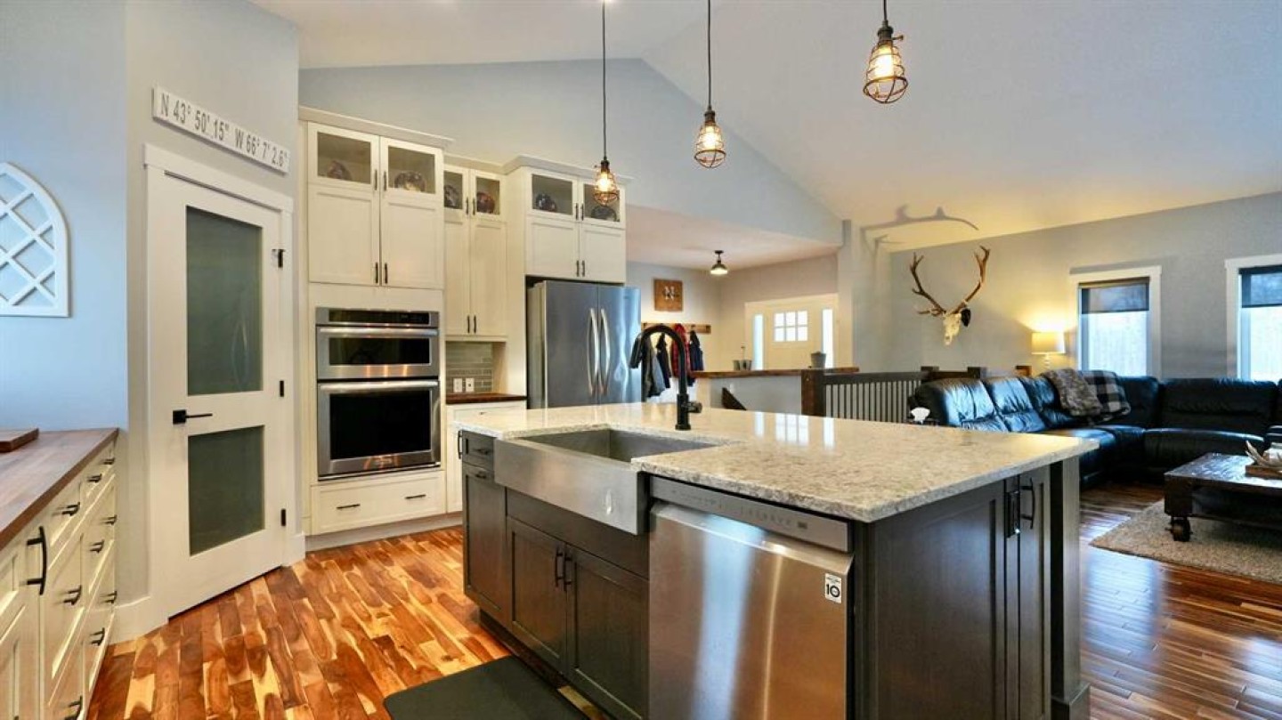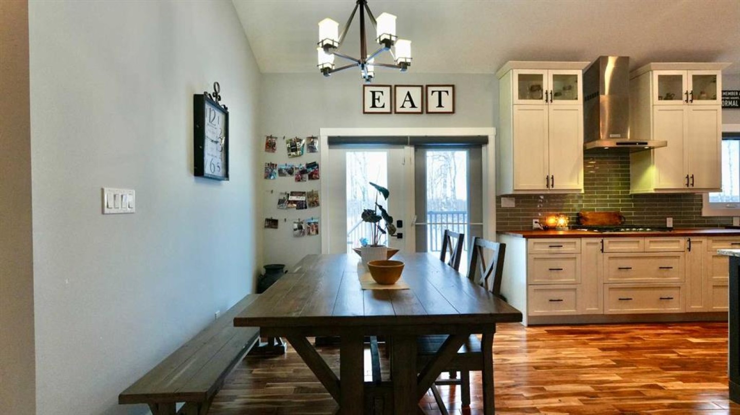 Welcome to your luxurious acreage retreat just minutes northeast of Peace River. This exceptional 2014 custom-built home is a rare offering, perfectly set on 9.98 acres of thoughtfully designed land bordered by breathtaking forest and surrounded by thousands of acres of pristine Crown land. Nature lovers and outdoor enthusiasts will appreciate the direct access to the stunning Peace River Valley and the unmatched privacy this setting provides. With nearly 2,100 sq ft of beautifully designed living space, plus a fully finished walkout basement, no detail has been overlooked in this impressive home. The heart of the home is the bright, open-concept kitchen, dining, and living area—ideal for everyday living and entertaining. The spacious kitchen features an abundance of cabinetry, a large island with eat-up bar, walk-in pantry, quartz and butcher block countertops, and tile backsplash. The oversized living room showcases vaulted ceilings that enhance the sense of space and light, while the adjacent dining area offers easy access to the back deck and BBQ area through patio doors. The main floor is anchored by a private and spacious primary suite that truly feels like a retreat, complete with a walk-in closet and a magazine-worthy ensuite featuring double sinks, a soaker tub, and a tiled shower. On the rest of the main level you will find two more generously sized bedrooms, a full bathroom, and a convenient laundry area with ample space for folding and storage. The fully developed walkout basement adds exceptional versatility and plenty of natural light, offering a large recreation room with wet bar, a full bathroom, and two additional large bedrooms—perfect for guests, family, or entertaining. There is also storage and a convenient office/computer nook. Additional highlights include a 21x24 attached heated garage with room for vehicles, storage, or a workshop. The beautifully landscaped yard features a greenhouse and storage shed, while the back deck provides shade over the lower patio and a private hot tub area—an ideal spot to relax and unwind. The remainder of the property is treed and private, with a site already prepared for a future shop and even a dirt bike track, making it a dream for kids or riding enthusiasts. Experience the perfect blend of luxury, privacy, and outdoor adventure—this remarkable acreage truly offers it all.