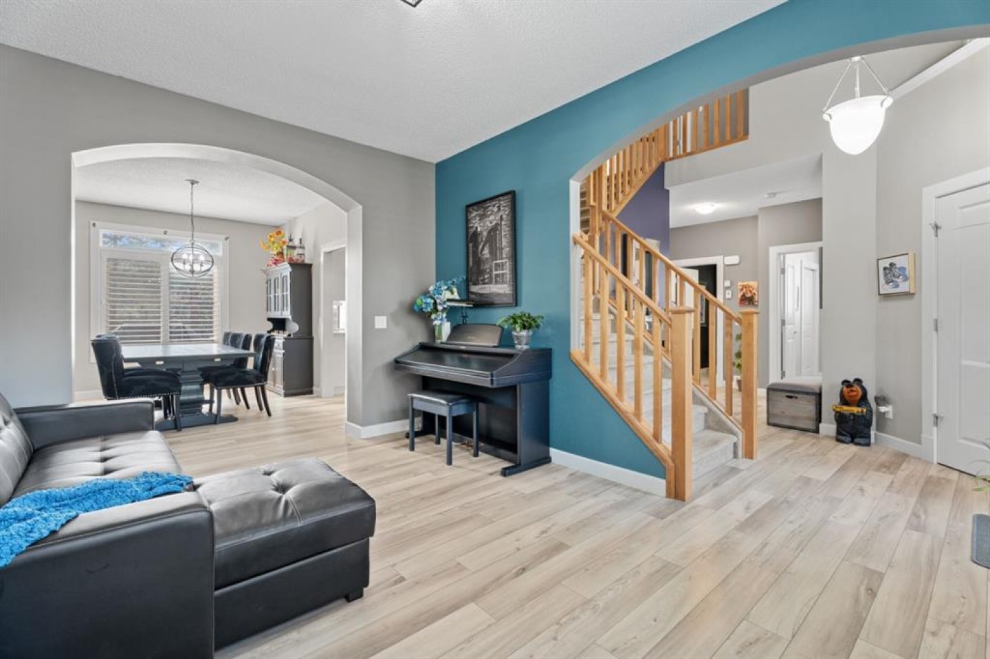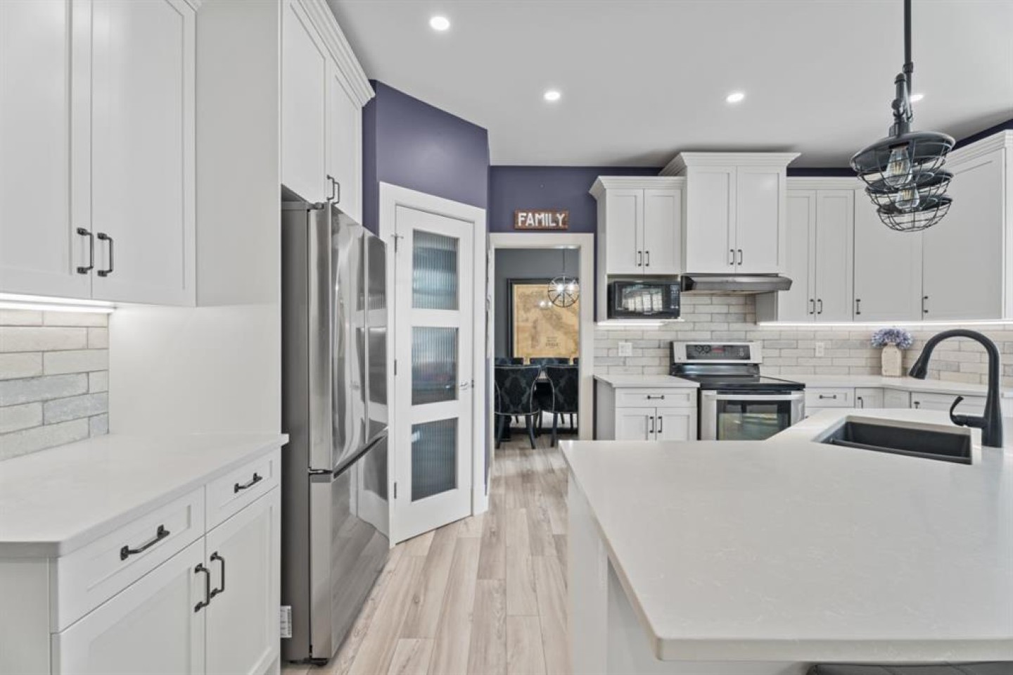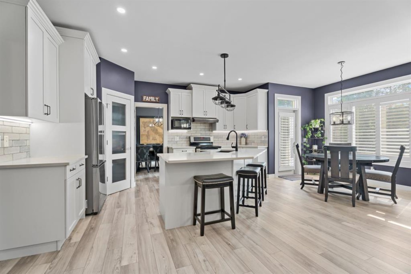 It’s rare to find a home that offers five true bedrooms upstairs, including a tucked away room currently used as a private office that can easily function as a bedroom-a layout that’s perfect for growing families, guests, or multi-generational living. Welcome to this warm and inviting family home in Drake Landing, thoughtfully designed for both everyday living and entertaining. Step into the bright foyer with open to below ceilings that create an airy, welcoming first impression. The renovated kitchen is a true showstopper, featuring white cabinetry, quartz countertops, a stylish tile backsplash, and a corner pantry for added storage. The sunny breakfast nook is ideal for casual meals, while the adjoining living room with a cozy gas fireplace sets the stage for family gatherings. A large formal dining room and a second main floor living space provide flexibility for entertaining, working from home, or relaxing. California shutters throughout the main floor add a touch of elegance, while the mudroom with access to the double attached garage keeps busy family life organized. Upstairs the four bedroom layout truly shines. The spacious primary suite offers a walk in closet and ensuite with soaker tub and shower. Three additional generous bedrooms, plus convenient upper level laundry, make this level as practical as it is comfortable. The unfinished basement is ready for your vision, whether you’re dreaming of more bedrooms, a recreation space, or a multi generational space. Dual furnaces and air conditioning ensure year round comfort. Outside, enjoy summer evenings in the sun soaked, south facing backyard with a large deck, perfect for barbecues and entertaining. Located in the family friendly community of Drake Landing, you’re close to schools, parks, shopping, and have quick access to the city. With its rare bedroom layout and flexible living spaces, this home is designed to grow with your family for years to come. Be sure to check out the virtual tour.