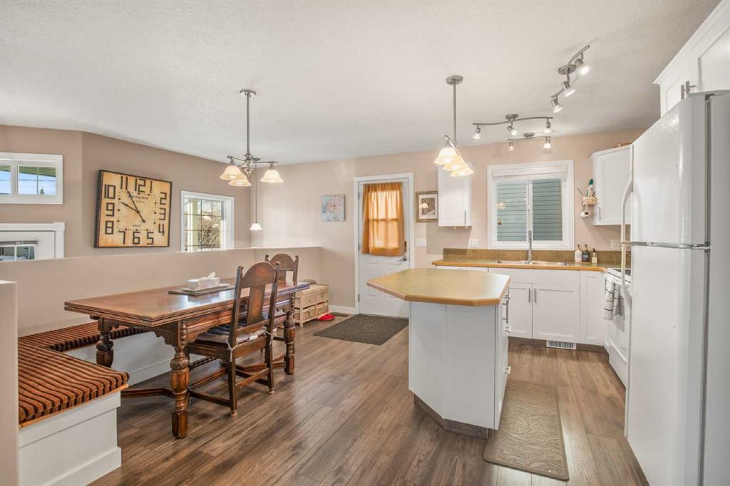 This lovely 4 bed 3 bath home needs a new owner. It could be you! Many upgrades have been done over the years and one can see the pride that the previous owner had in the place. The Bosch dishwasher was installed in 2022 and the LG washer and dryer are only a couple of years old. New tiles were installed in the main entrance, around the main floor pellet stove and main bathroom in 2023.. Main floor was repainted at that time as well. New laminate plank flooring installed on the main floor in 2022. New hot water on demand installed in 2024. Many other upgrades have been done and as such the home needs to be seen to be appreciated. The main floor features two bedrooms along with a 4pc main floor bath and a 3pc ensuite. The open concept kitchen/dining room features a cool built in bench for your dining room table. A coffee nook is also close at hand and the living room features a built in pellet stove to keep the evenings cozy and warm. Main floor laundry is available here which is always nice. The basement comes with a seperate entrance and features two more bedrooms and one 4pc bathroom. There is a partial kitchen area with a sink and the utility room has ample storage. Another pellet stove can be found in the basement as well to help with heating costs. Outside you will find a oversize single garage next to paved parking for two vehicles at the rear of the property. Property is located within a block of a elementary school and within a block of a bus stop if one needs other schooling. A walking trail is close at hand along with a pond that transforms into a outdoor skating surface in the winter. Timmons close is a great neighborhoud with seniors, families and couples within the close. All in all this really is a wonderful property.