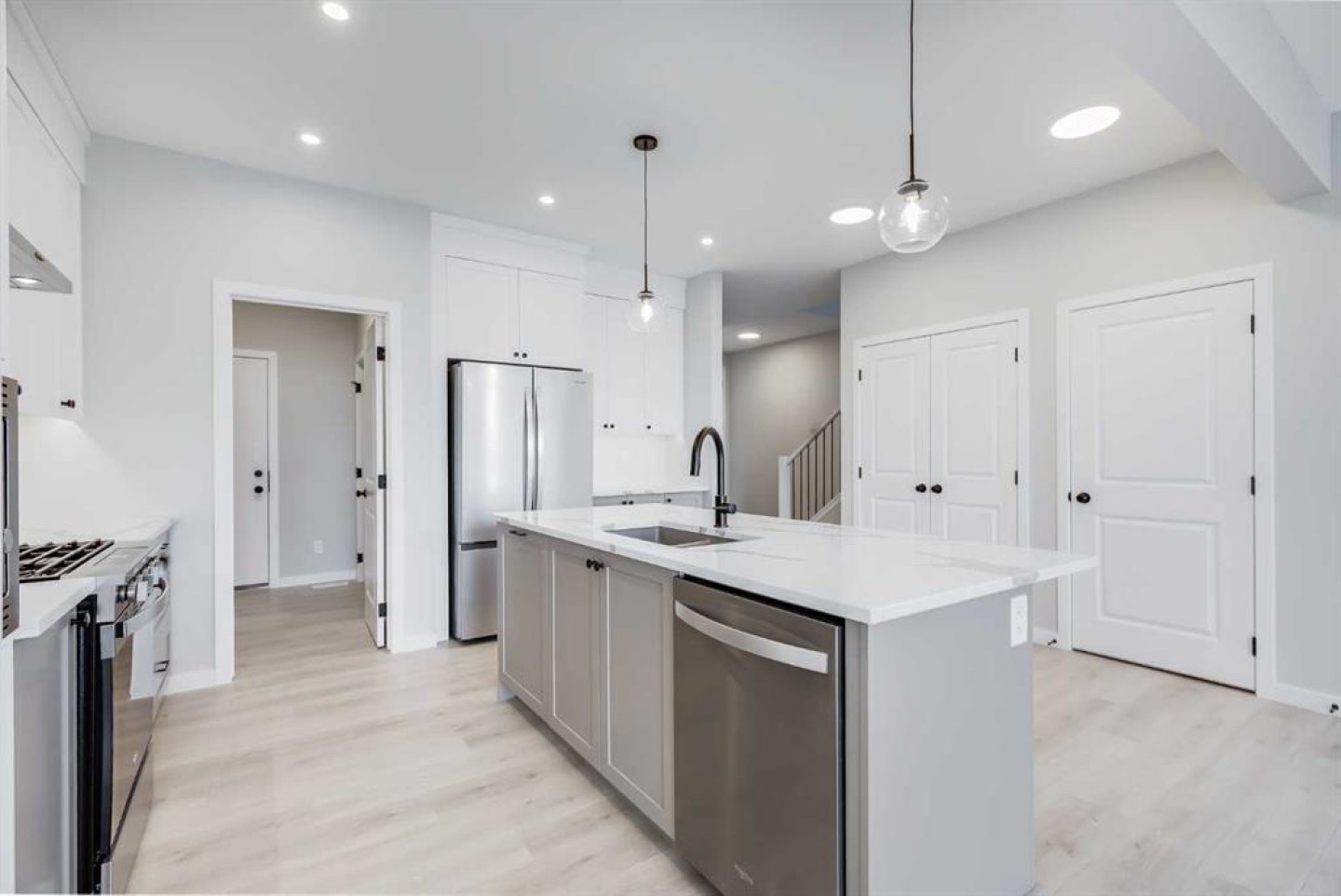 Meet THE BASIL — a beautifully designed and thoughtfully upgraded 1,872 SQ.FT. home offering 3 BEDROOMS, 2.5 BATHROOMS, an EAST-FACING BACKYARD on a SPACIOUS LOT, and a bright SUNSHINE BASEMENT. This home is ready for a QUICK POSSESSION, you can move forward with confidence knowing your next home is already ready for you. Built by BAYWEST HOMES (TRUSTED SINCE 1985), this home delivers quality craftsmanship and peace of mind with a 10-YEAR ALBERTA NEW HOME WARRANTY plus a 1-YEAR BUILDER WARRANTY. Step inside to a welcoming entryway that opens into the heart of the home—an incredible CHEF-INSPIRED KITCHEN featuring 42” WHITE CEILING-HEIGHT CABINETRY, CROWN MOLDING, UNDER-CABINET LIGHTING, QUARTZ COUNTERTOPS, a GAS RANGE, BUILT-IN MICROWAVE, and a stunning CHIMNEY HOOD FAN WITH FULL-HEIGHT TILE. The stylish TAUPE ISLAND, SILGRANITE UNDERMOUNT SINK, and the smart 4-BIN PULLOUT SYSTEM keep this space both beautiful and functional. A WALK-IN PANTRY, convenient MUDROOM STORAGE, and a tucked-away MAIN FLOOR POWDER ROOM complete the main level. Perfect for entertaining, the open-concept great room and dining area feature OVERSIZED WINDOWS and a SLIDING PATIO DOOR overlooking the backyard. Additional upgrades include a SIDE ENTRANCE, MODERN RAILINGS, TRIPLE-PANE WINDOWS, and 9’ BASEMENT CEILINGS—ideal for future development. Upstairs, the PRIMARY RETREAT offers a spacious WALK-IN CLOSET and a luxe ensuite with DOUBLE SINKS and an OVERSIZED SHOWER. You’ll also enjoy a bright BONUS ROOM, UPSTAIRS LAUNDRY WITH EXTRA STORAGE, TWO LARGE SECONDARY BEDROOMS, and a main bath upgraded with DUAL SINKS. Located in the growing community of SAWGRASS PARK, you’ll love the nearby GREEN SPACES, WETLANDS, PARKS, and future plans for a SCHOOL and RECREATION AMENITIES. This is a MUST-SEE HOME on a QUIET STREET in a fantastic location—don’t miss it!