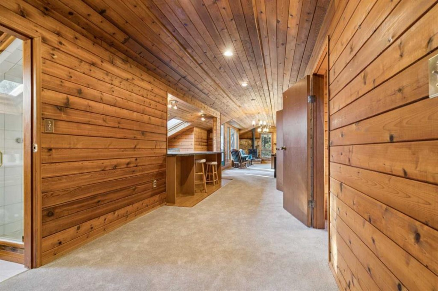 **OPEN HOUSES JAN 17 AND 18 1:00-4:30 PM** Deep in the woods of Redwood Meadows lies a house that is so much more than it seems. Set modestly away from the street into the trees, you might not notice it on a quick drive past- but there are many things that make it worth exploring! First of all is the pride of ownership- this house has been cared for and it shows in every room. The main floor features 3 bedrooms, 2.5 baths, a multitude of areas for entertaining and living, and a deck with outdoor fireplace that would be the envy of anyone who likes to spin a tale to friends under the stars. The kitchen has been updated with new appliances, lighting and gorgeous granite countertops. The primary bedroom has custom closet inserts and an ensuite with modern tile and fixtures. The main floor on its own would be a stunning bungalow, but there is more-the upstairs loft is where this home truly shines. The aura of the second floor brings to mind the quintessential cozy cabin with its wood paneling and new gas fireplace in a Rundlestone inglenook. It is another world upstairs, and has two snug bedrooms, a full bath, wet bar, and renovated balcony with glass balustrade. What could you do with this space? A home based business. A unique space for visiting family. Nanny quarters, art studio, or a bed and breakfast? The potential is endless and intriguing. The upgrades to this home are too numerous to list but include new windows, furnace, hot water heater, bathroom renovations, carpet, roof, insulation, electrical and exterior paint. Everything has been taken care of, all you have to do is move in and enjoy this incredible neighbourhood. Redwood Meadows features golf, fishing, hiking, mountain biking, x-country skiing, tennis, disc golf, and more…right outside your front door. Located only 30 minutes from Calgary, 8 minutes to the Bragg Creek hamlet, with access to great schools, shopping and restaurants, and right at the gateway to all the recreational opportunities of Kananaskis Country. Come see why everyone wants to live here!