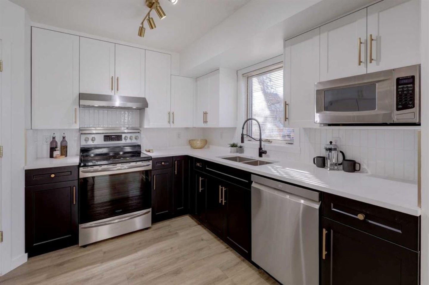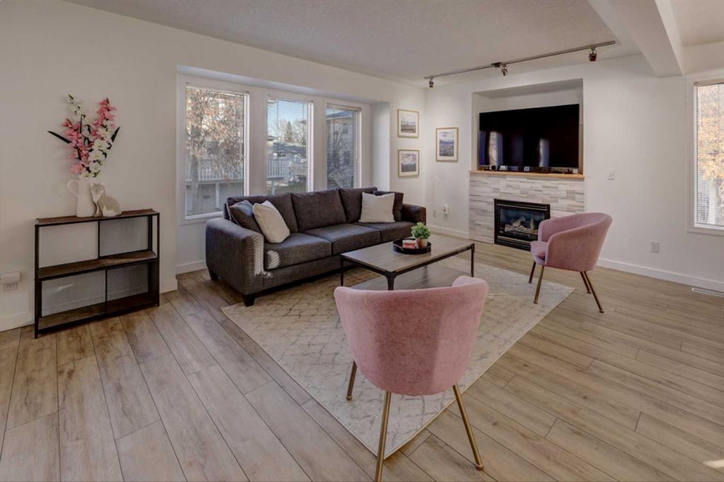 This beautifully updated two-storey townhome offers three bedrooms, a double attached garage, air conditioning, & a cozy fireplace—perfectly blending comfort and functionality. The home is filled with natural light, especially in the bright kitchen & breakfast nook, creating an inviting space to start your day. A separate dining area & spacious living room with fireplace provide ideal spaces for everyday living and entertaining. Upstairs, the generous primary suite features a walk-in closet & a well-appointed ensuite with a soaker tub & separate shower. Two additional bedrooms, full bathroom & convenient upper-level laundry complete the upper floor. The kitchen has been tastefully renovated with quartz countertops & stainless steel appliances, complemented by new vinyl plank flooring throughout the home. A west-facing back deck offers the perfect spot to enjoy afternoon sun & evening relaxation. Extensive updates include new flooring, paint, & baseboards in 2023; a kitchen renovation in 2024/2025; new dishwasher, hood fan, washer, & dryer in 2025; new programmable light fixtures; & window replacements scheduled for fall/winter 2026. Ideally located close to parks, schools, an off-leash park, pubs, restaurants, shopping, & tennis courts, this home is also just a short walk to Marda Loop & within biking distance to downtown. A fantastic opportunity in a vibrant, amenity-rich neighbourhood.