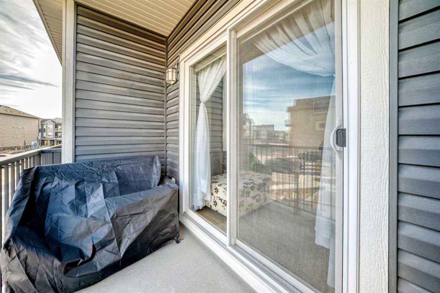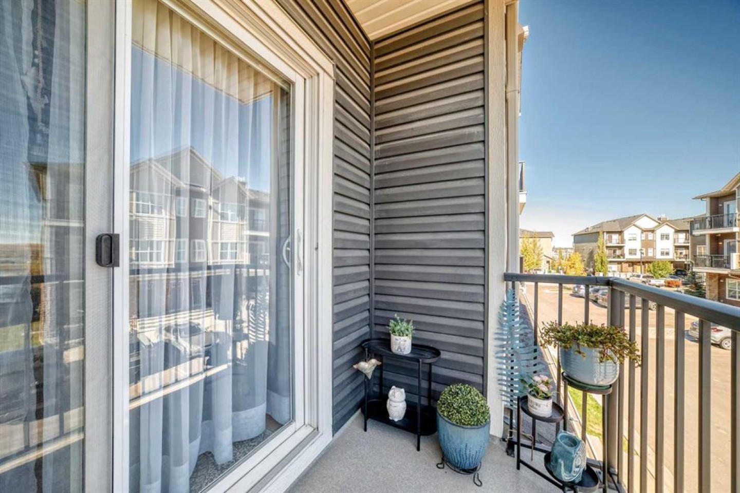 Welcome to this immaculate, upgraded townhome in the desirable community of Fireside, Cochrane, featuring peaceful pond and green space views that create a tranquil, nature-inspired setting. The bright, open-concept layout showcases a modern kitchen with quartz countertops, white shaker-style cabinetry with Custom Pull-Out shelving, stainless steel appliances, and breakfast bar; other upgrades include wide plank flooring, plush carpets, 9-foot ceilings, quartz counters throughout, and energy-efficient LED lighting. Large windows and patio doors open to two private balconies with views of the pond, ideal for morning coffee or evening relaxation. The home offers two spacious bedrooms, including a primary bedroom with a walk-in closet; a full bathroom and a stylish powder room, upper-floor laundry, ample storage, as well as a separate storage unit, and a titled parking at the side of the front door, just perfect for off loading groceries and everyday errands. Located in a well-managed, family-friendly complex close to schools, parks, walking paths, shopping, and recreation, with easy access to Calgary and approximately one hour from Banff and Canmore, this home delivers exceptional value and lifestyle.