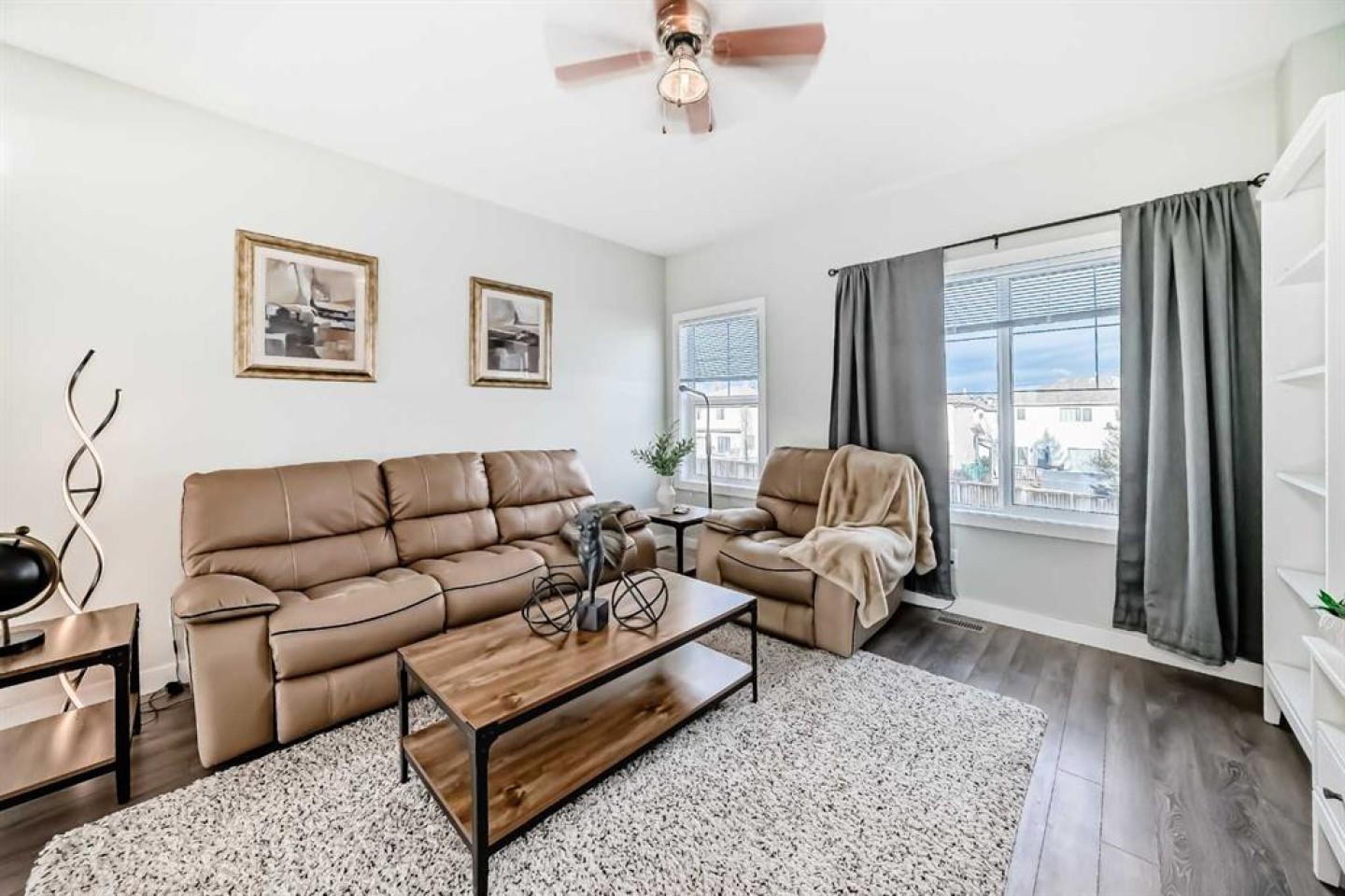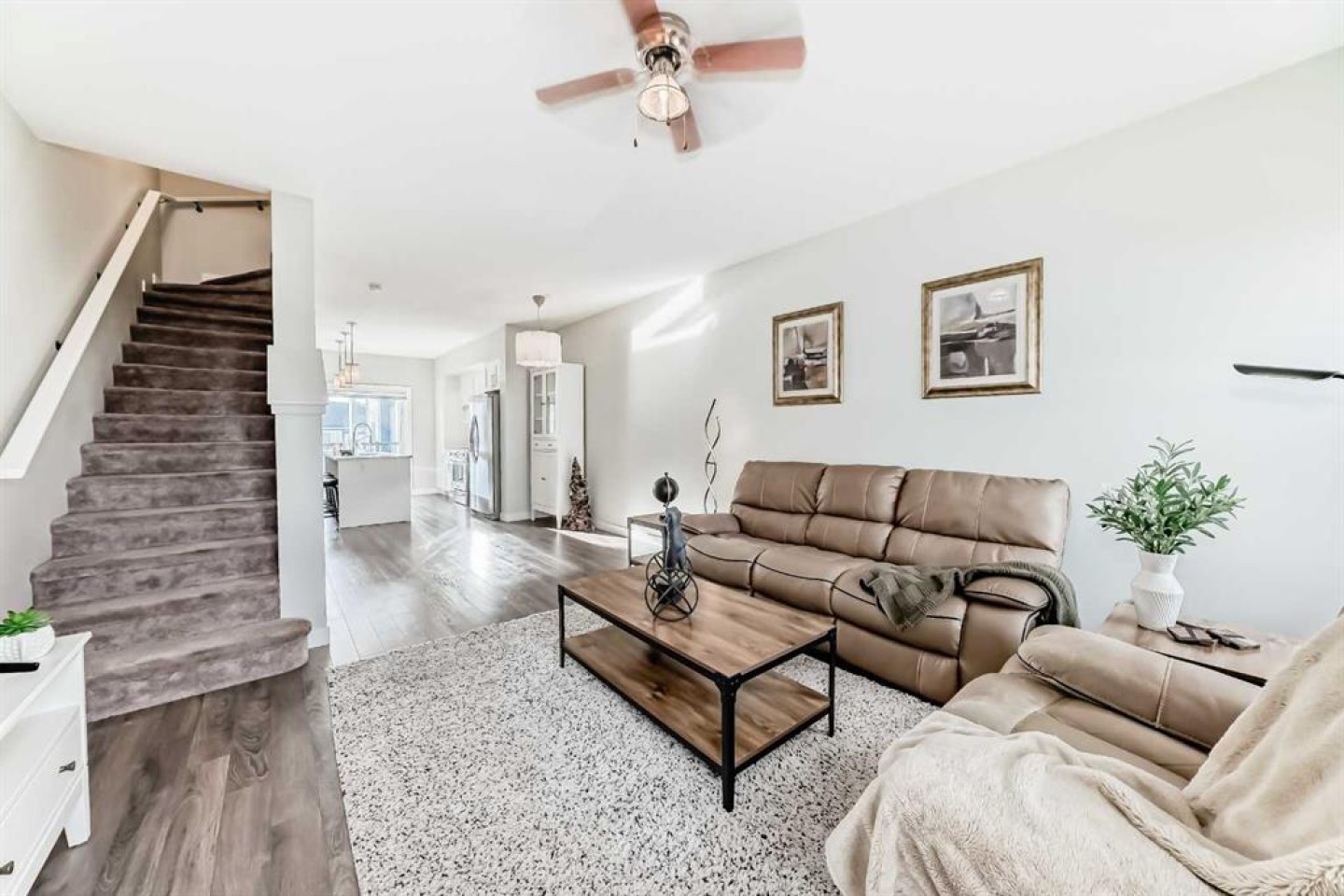 Welcome to this beautifully maintained townhouse located in beautiful Cochrane, Alberta, where small-town charm meets modern convenience. Offering 2 bedrooms and 1.5 bathrooms, this bright and spacious home features a functional layout perfect for families, professionals, or first-time buyers. Flex room with endless possibilities, use this space as an office, game room or extra space for guest. Perfect with the 2 piece powder room only steps away. The open-concept main floor is filled with natural light and showcases a well-appointed kitchen with modern appliances, ample cabinetry, while seamlessly flowing into the dining and living areas—ideal for entertaining or relaxing at home. Upstairs, you’ll find generously sized bedrooms and laundry. Enjoy your private balcony, driveway with attached garage and low-maintenance living in a quiet, well-managed community. Conveniently located close to Bow River pathways, parks, shopping, and downtown Cochrane, with easy access to Calgary and the Rocky Mountains. This move-in-ready townhouse offers exceptional value and an unbeatable Cochrane lifestyle—don’t miss your opportunity to call it home.