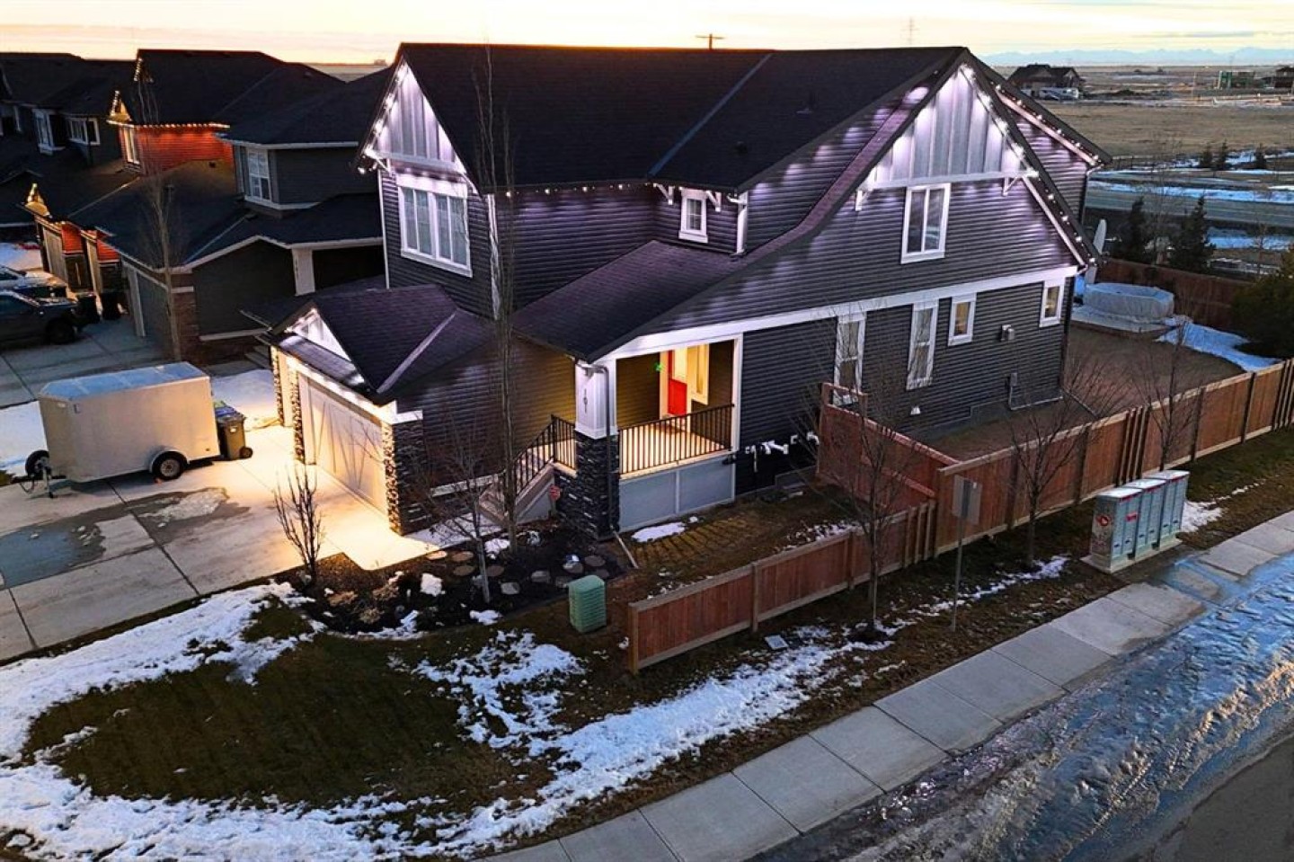 **Open House Sat Jan. 17 & Sun Jan 18 11am-1pm** Welcome to this former show home in Boulder Creek Estates of Langdon, offering an exceptional blend of luxury, space, and thoughtful upgrades in Langdon's premier golf course community. This beautifully maintained west-facing backyard home is loaded with features such as a HEATED TRIPLE GARAGE, AIR CONDITIONING, GEMSTONE LIGHTS, UNDERGROUND SPRINKLERS, and an ARCTIC SPA HOT TUB. The main floor features 9' ceilings & upgraded LVP, The chef-inspired kitchen showcases stainless steel appliances (including induction stove), granite countertops, a large island, walk-through pantry, and under-cabinet lighting. The bright dining room overlooks the west-facing backyard with access to the 14' x 10' deck complete with gas BBQ line & gate to the hot tub. The open-concept living room room is anchored by a custom oversized gas fireplace with mantel, creating a warm and inviting living space. The main level is complete with a flex room, 2-piece bathroom, and a laundry room. Upstairs, you'll find four generously sized bedrooms, a 5-piece main Bathroom with double sinks, and a large Bonus room featuring VAULTED CEILINGS, Vinyl Plank Flooring, and lots of pot lights. The primary suite includes a huge 5-PIECE EN-SUITE with separate soaker tub and shower, and a large walk-in closet. The developed basement adds incredible versatility with 9' ceilings, a large rec room, 2-piece bathroom, and a massive hobby room/workshop which includes a Tub Sink. There is a dedicated sauna plug (sauna not included), and also dedicated plugs for both the fridge & freezer (both included). Outside, enjoy your west-facing backyard oasis featuring an Arctic Spa hot tub with Spa Boy system for automatic chemical control, underground sprinkler system, Vegepod garden table, storage shed, and a wood patio thats perfect for your patio furniture. The home also includes Gemstone lighting on all four sides, providing stunning curb appeal and year-round lighting control. Additional upgrades include a water softener, multi-zone thermostats, upgraded railings, and more. Located just a short walk to the Boulder Creek Golf Course, and close to schools, shopping, parks, and green spaces, with easy access to the Trans-Canada Highway, his home offers the perfect balance of luxury living and commuter convenience. Book your showing today!