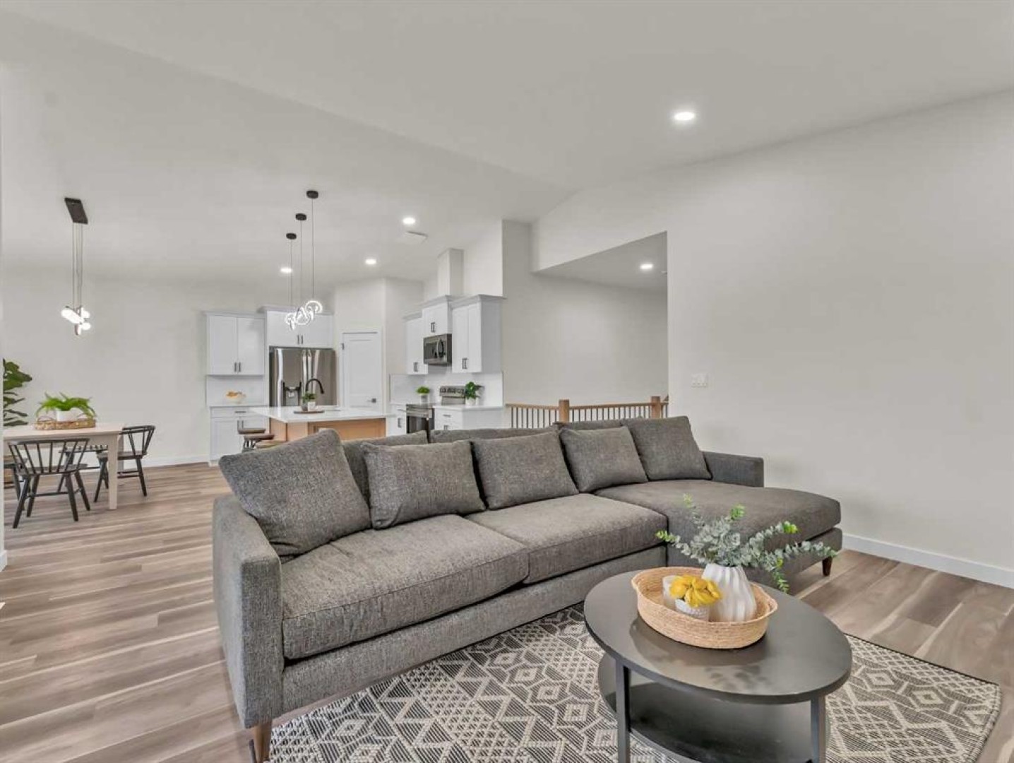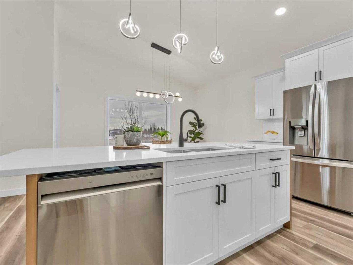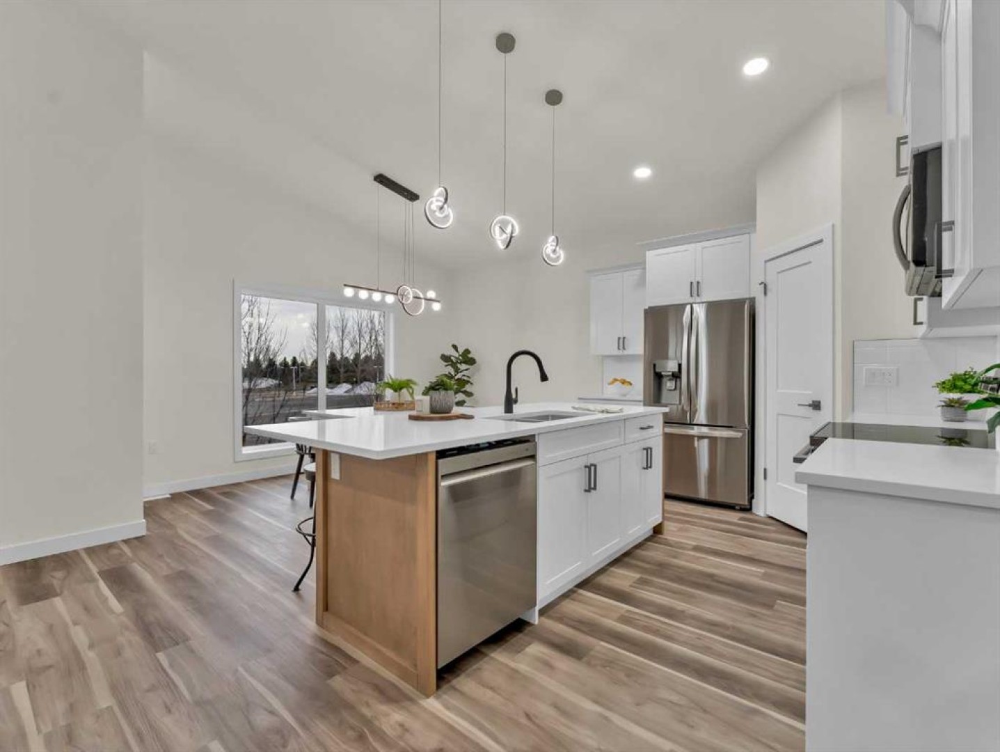 This stunning new construction home offers 1,441 sq. ft. of beautifully designed living space on the main floor, as well as a 1,337 sq. ft. fully finished walk-out basement! Perfectly positioned in a growing community, this home features a thoughtful, functional layout ideal for modern living. The main floor welcomes you with an open-concept design that seamlessly blends the kitchen, dining, and great room areas, creating the perfect space for everyday living and entertaining. The kitchen boasts a large central island and plenty of room for prep and storage, while the adjacent dining area leads to a 17x10 covered deck for effortless indoor-outdoor living. Two bedrooms are on the main floor, including a spacious primary suite complete with a walk-in closet and a luxurious 4-piece ensuite with dual sinks. The second bedroom can easily double as a home office or den. A full 4-piece bathroom and convenient main floor laundry add to the home's smart layout. Downstairs, the fully finished walk-out basement offers even more space with three generously sized bedrooms, another full bathroom, and a large family room complete with a wet bar and access to a covered patio and future yard—ideal for guests, teens, or extended family living. There are also laundry hook-ups in the basement for an additional laundry room! The 23x23 double attached garage provides plenty of room for vehicles, storage, and hobbies. Don’t miss your chance to enjoy the best of comfort, space, and style!