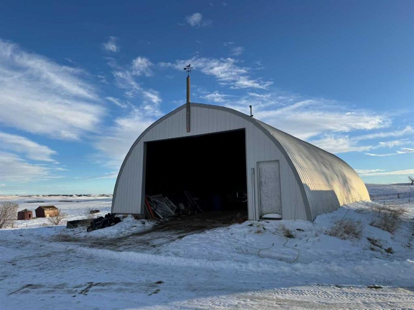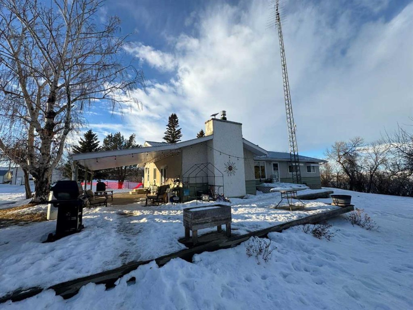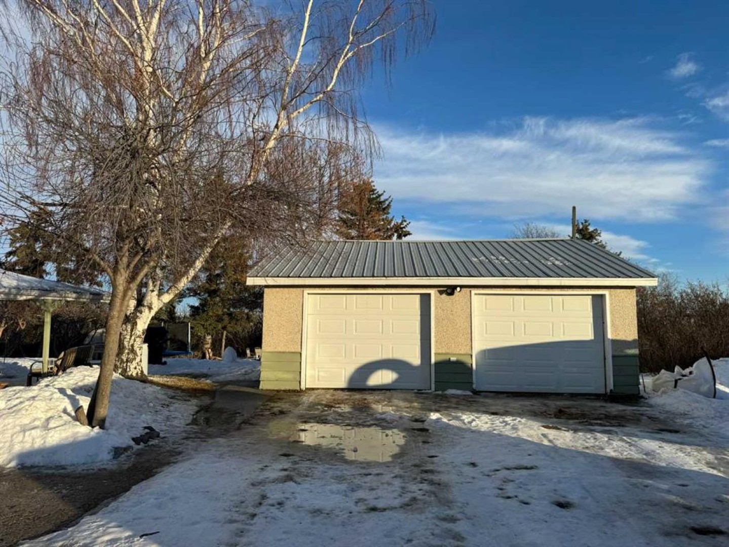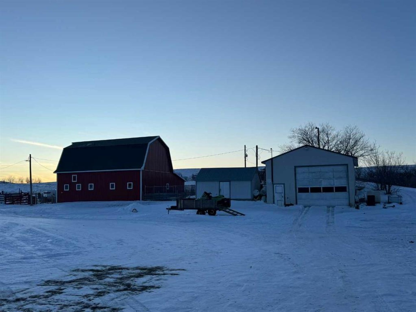 Country Living at Its Finest on a Quiet Dead-End Road! Welcome to this beautifully updated 1,830 sq. ft. farmhouse-style bungalow, originally built in 1967, with an addition built in 1981. Perfectly situated on a private 16.53 ± acre yard at the end of a quiet dead-end road. This exceptional property offers the ideal blend of comfort, functionality, and space—perfect for hobby farmers, acreage owners, or anyone seeking peaceful rural living. Step inside to find a bright, spacious interior featuring lots of updates including a large remodeled kitchen complete with an added island, ample cabinetry, and excellent workspace for cooking and entertaining with newer stainless-steel appliances. A massive entry/mudroom welcomes you home and conveniently connects to the main-floor laundry room, 1/2 bath making everyday living effortless. The cozy sunken living room is a true showpiece, highlighted by a new natural gas fireplace with a stunning custom stonework surround—perfect for relaxing evenings. A huge, wide-open dining room, separate from the kitchen, offers plenty of room for hosting family gatherings. Storage is abundant throughout the home! The main floor includes three generously sized bedrooms and a 4-piece bathroom with a jetted tub. Downstairs, you’ll find a large family room, an additional bedroom with storage closet, a dedicated office, and a primary bedroom retreat featuring a large walk-in closet and a custom 3-piece ensuite with a beautifully tiled shower. New boiler in 2017, and HWH in 2023. Outside, the property truly shines! The private, mature yard is surrounded by open space and includes an IMPRESSIVE lineup of outbuildings: 26’x24’ detached garage, 28’x40’ hip roof barn with lean-to set up with chicken coop ,and all new metal roof & siding. A 24’x36’ heated shop with 14’ ceilings, 50’x80’ steel Quonset, 32’x’48’ arch rib cold storage building. Also 2 stock waters, yard hydrants, wooden corals and pen setups. This turn key setup is perfect for any hobby farmer, livestock owner, or anyone needing space for equipment, storage, or projects—while still enjoying a comfortable, well-updated home.