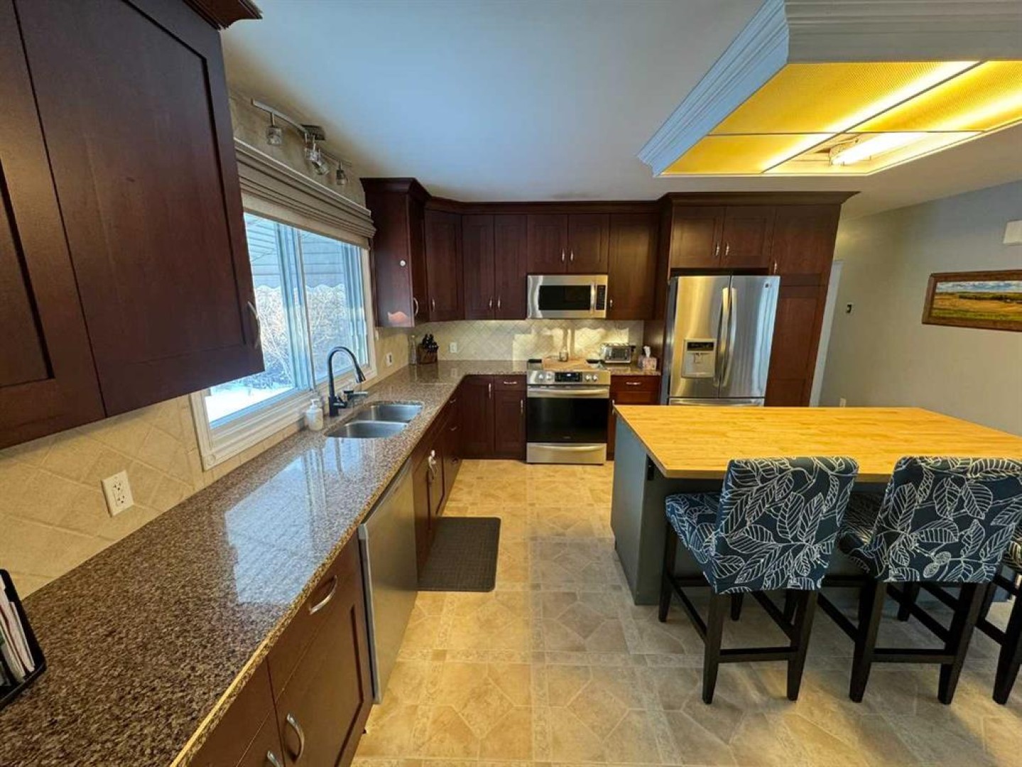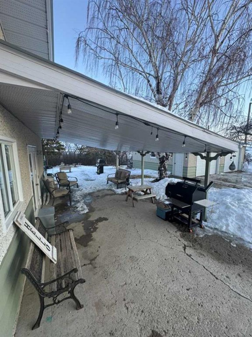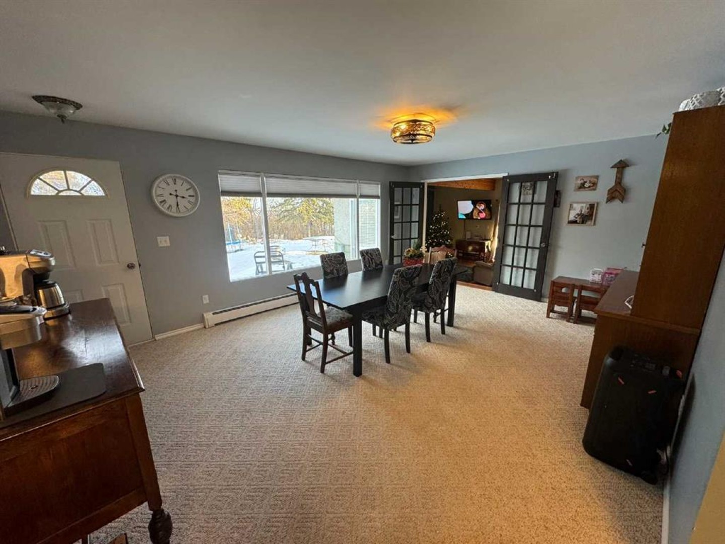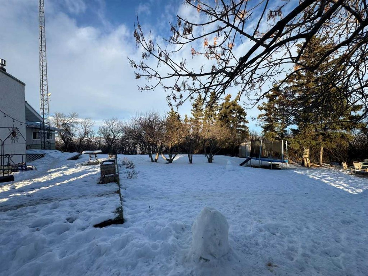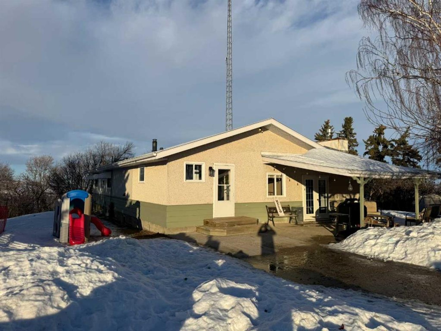 Country Living at Its Finest on a Quiet Dead-End Road! Welcome to this beautifully updated 1,830 sq. ft. farmhouse-style bungalow, originally built in 1967, with an addition built in 1981. Perfectly situated on a private 16.53 ± acre yard at the end of a quiet dead-end road. This exceptional property offers the ideal blend of comfort, functionality, and space—perfect for hobby farmers, acreage owners, or anyone seeking peaceful rural living. Step inside to find a bright, spacious interior featuring lots of updates including a large remodeled kitchen complete with an added island, ample cabinetry, and excellent workspace for cooking and entertaining with newer stainless-steel appliances. A massive entry/mudroom welcomes you home and conveniently connects to the main-floor laundry room, 1/2 bath making everyday living effortless. The cozy sunken living room is a true showpiece, highlighted by a new natural gas fireplace with a stunning custom stonework surround—perfect for relaxing evenings. A huge, wide-open dining room, separate from the kitchen, offers plenty of room for hosting family gatherings. Storage is abundant throughout the home! The main floor includes three generously sized bedrooms and a 4-piece bathroom with a jetted tub. Downstairs, you’ll find a large family room, an additional bedroom with storage closet, a dedicated office, and a primary bedroom retreat featuring a large walk-in closet and a custom 3-piece ensuite with a beautifully tiled shower. New boiler in 2017, and HWH in 2023. Outside, the property truly shines! The private, mature yard is surrounded by open space and includes an IMPRESSIVE lineup of outbuildings: 26’x24’ detached garage, 28’x40’ hip roof barn with lean-to set up with chicken coop ,and all new metal roof & siding. A 24’x36’ heated shop with 14’ ceilings, 50’x80’ steel Quonset, 32’x’48’ arch rib cold storage building. Also 2 stock waters, yard hydrants, wooden corals and pen setups. This turn key setup is perfect for any hobby farmer, livestock owner, or anyone needing space for equipment, storage, or projects—while still enjoying a comfortable, well-updated home.