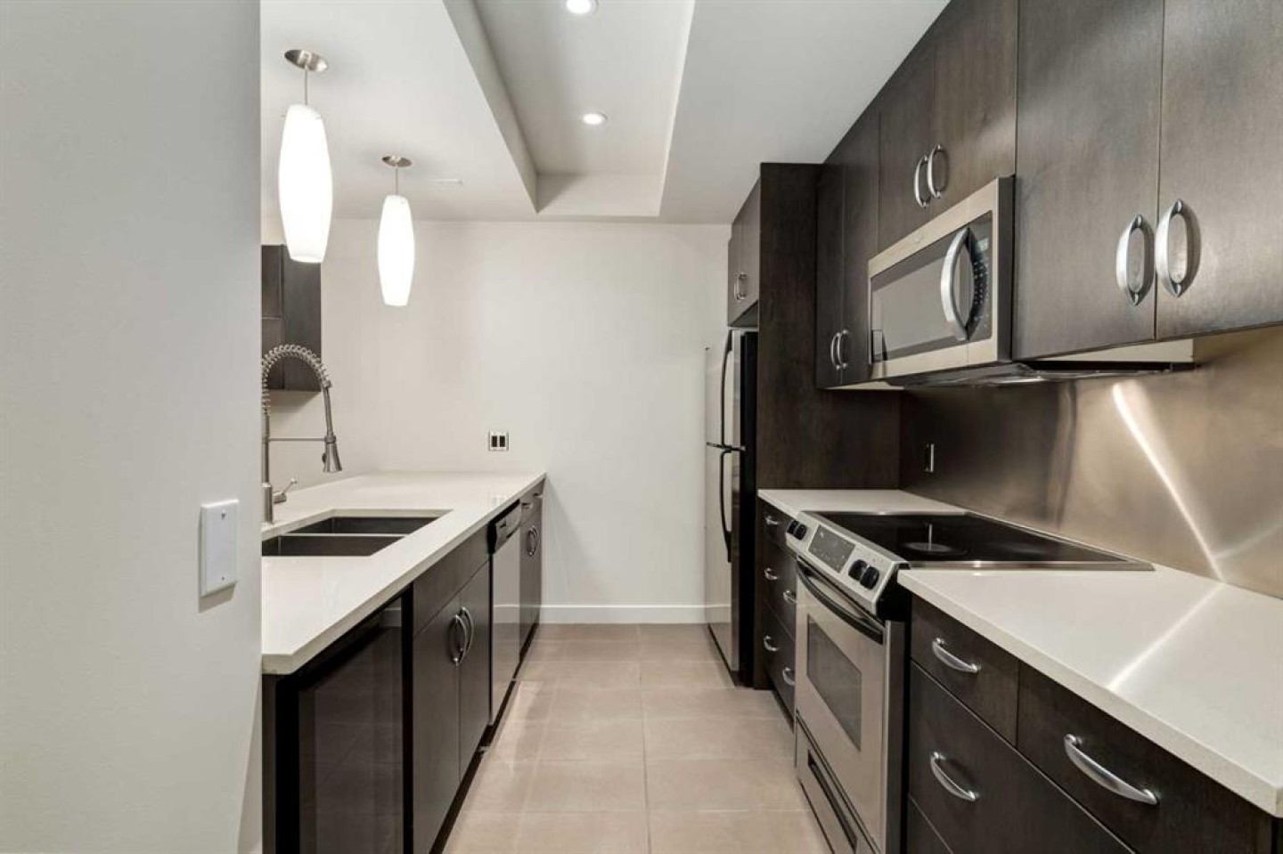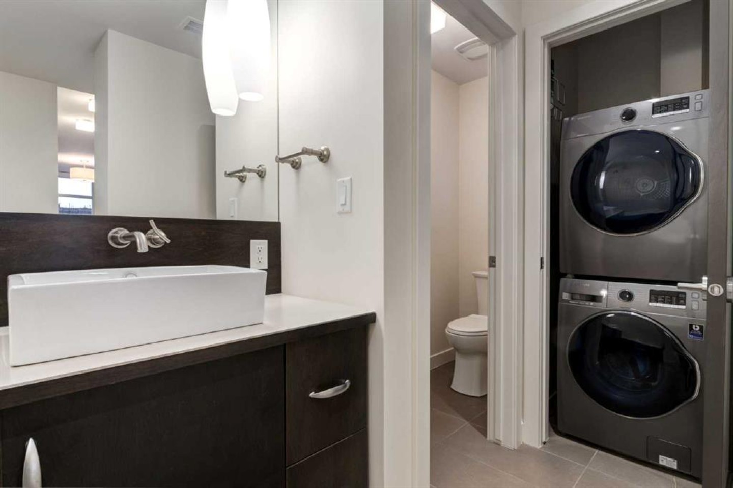 WELCOME to this MOVE IN READY 13th Floor AIR CONDITIONED UNIT, w/1 BEDROOM, 1 ½ BATHROOMS, in a 908 sq ft CONDO in the CONNAUGHT Area in the BELTLINE, w/1 TITLED Stall in the Underground HEATED Parkade + 1 TITLED Storage Unit + GORGEOUS MOUNTAIN VIEWS from the SOUTH-FACING Balcony. Entering this EXECUTIVE SUITE is a spacious foyer leading into the main living area, you’re greeted w/an EXPANSIVE open-concept floorplan w/9 ft Ceilings all framed w/FLOOR-TO-CEILING Windows, creating a BRIGHT, AIRY SPACE w/a seamless flow for EVERYDAY LIVING & ENTERTAINING. The MODERN Kitchen is designed to IMPRESS w/a STAINLESS STEEL WHIRLPOOL Appliance package, ELECTRIC STOVE, BUILT-IN DISHWASHER, MICROWAVE w/INTEGRATED HOOD FAN, FULL-SIZE FRIDGE + BEVERAGE FRIDGE. Enjoy the GENEROUS QUARTZ Countertops CEILING-HEIGHT Cabinetry w/Pull Out Drawers, a DOUBLE STAINLESS STEEL SINK + a COMMERCIAL-STYLE Pull-down Spray Faucet. The OPEN-CONCEPT Living & Dining Rooms provide a WELL-PROPORTIONED, INVITING space ideal for HOSTING Dinner Parties, RELAXING after a long day, or ENJOYING conversations w/ FRIENDS — all while feeling COMFORTABLE, FUNCTIONAL + EFFORTLESSLY STYLISH. Enhanced w/ DIMMER LIGHTING + WIRED-FOR-SOUND throughout, this space delivers BOTH AMBIENCE + ENTERTAINMENT at the touch of a button. Step outside to your SPACIOUS SOUTH-FACING BALCONY, w/a GAS LINE for BBQ's + perfectly positioned for ALL-DAY SUN + SWEEPING VIEWS w/rare 3-DIRECTION VIEW CORRIDOR (SE, S, SW). Enjoy SUNRISE TO SUNSET, MOUNTAIN VIEWS, direct sight lines to CENTRAL MEMORIAL PARK + a PREMIUM vantage point for STAMPEDE FIREWORKS—all WELL ABOVE STREET ACTIVITY for ultimate privacy and comfort. A GUEST 2 pc POWDER ROOM adds convenience for hosting. The LARGE PRIMARY SUITE offers more FLOOR TO CEILING Windows + a GENEROUS CLOSET. RETREAT to the SPA-INSPIRED ENSUITE, ft DUAL SINKS, a SEPARATE SOAKER TUB, a FULLY ENCLOSED GLASS SHOWER + a PRIVATE WATER CLOSET, complemented by a STACKED Washer + Dryer for added CONVENIENCE. The WELL-MANAGED CASTELLO BUILDING is BUILT w/CONCRETE, making this a QUIET, SOLID BUILDING. Enjoy a WELL-EQUIPPED ONSITE GYM, CAR WASH BAY IN THE PARKADE, SECURE UNDERGROUND PARKING + INDOOR VISITOR STALLS, w/FOB-CONTROLLED ACCESS to the building, elevators + amenities, all supported by VIDEO SURVEILLANCE + ON-SITE MANAGEMENT, adding PEACE OF MIND. The building is PET-FRIENDLY (Condo Board Approval Required). Located in the HEART OF CONNAUGHT, Castello places you STEPS FROM DOWNTOWN, 4th Street/Mission, 17th Avenue shopping + dining, Central Memorial Park, River Pathways, Cultural Venues, Transit, Protected Bike Lanes + Everyday Essentials. Enjoy TRUE WALKABLE URBAN LIVING w/all the energy of the city, WITHOUT THE CONGESTION + NOISE of other Beltline locations. Don't Miss Out!! Book your showing NOW!!