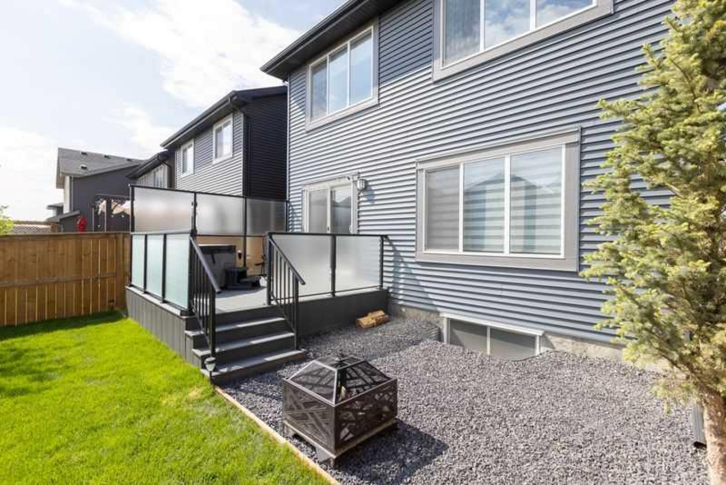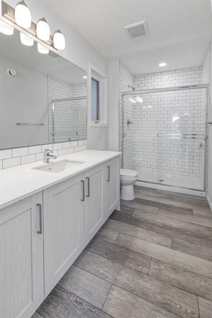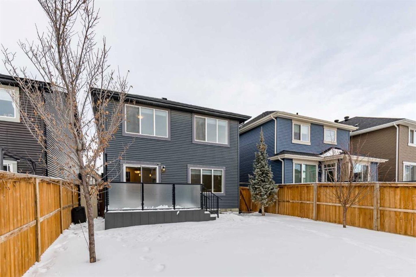 Welcome to this exceptional 2020-built two-storey home in the sought-after community of Sunset Ridge, Cochrane, where modern design meets everyday functionality. Immaculately maintained and thoughtfully upgraded, this home truly looks and feels brand new, offering a turnkey opportunity for today’s most meticulous buyer. From the moment you step inside, you’ll notice the abundance of natural light pouring through the oversized windows, creating a bright, airy, and welcoming atmosphere throughout the open-concept main floor. The layout is ideal for both daily living and entertaining, seamlessly connecting the living, dining, and kitchen spaces. The stylish kitchen is finished with quartz countertops throughout, modern cabinetry, and ample workspace, making it as practical as it is beautiful. With no carpet anywhere in the home, maintenance is effortless, while the new vinyl flooring on the second level adds durability, warmth, and a cohesive modern aesthetic. Upstairs, the home continues to impress with well-proportioned bedrooms and a functional layout designed for comfort and flexibility. Every detail has been carefully maintained, reinforcing the home’s near-new condition. Step outside to enjoy your private outdoor space, featuring a large, fully fenced backyard with mature trees that provide both privacy and a natural backdrop. The glassed-in deck with privacy glass allows for extended seasonal use, while composite deck boards ensure long-lasting, low-maintenance enjoyment. A BBQ gas line is already in place, making outdoor entertaining easy and convenient. Perfectly located close to schools, parks, playgrounds, and extensive pathway systems, this home is ideal for families, professionals, and anyone looking to enjoy the best of Cochrane living. Sunset Ridge is known for its strong community feel, scenic surroundings, and excellent access to amenities. A modern home without the wait of new construction, in a prime location — this is one you won’t want to miss.