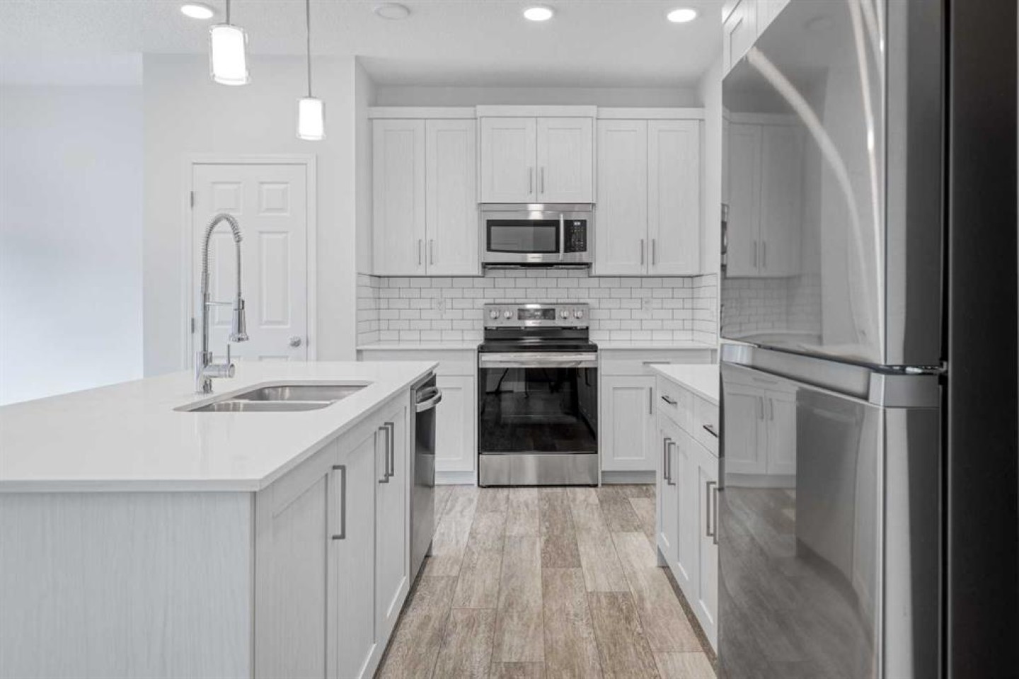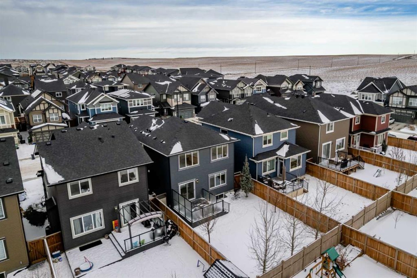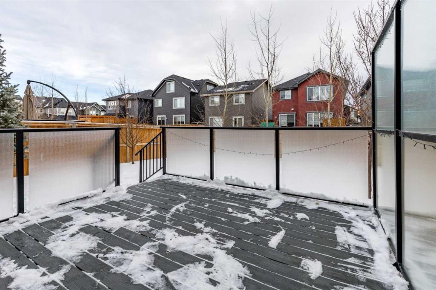 Welcome to this exceptional 2020-built two-storey home in the sought-after community of Sunset Ridge, Cochrane, where modern design meets everyday functionality. Immaculately maintained and thoughtfully upgraded, this home truly looks and feels brand new, offering a turnkey opportunity for today’s most meticulous buyer. From the moment you step inside, you’ll notice the abundance of natural light pouring through the oversized windows, creating a bright, airy, and welcoming atmosphere throughout the open-concept main floor. The layout is ideal for both daily living and entertaining, seamlessly connecting the living, dining, and kitchen spaces. The stylish kitchen is finished with quartz countertops throughout, modern cabinetry, and ample workspace, making it as practical as it is beautiful. With no carpet anywhere in the home, maintenance is effortless, while the new vinyl flooring on the second level adds durability, warmth, and a cohesive modern aesthetic. Upstairs, the home continues to impress with well-proportioned bedrooms and a functional layout designed for comfort and flexibility. Every detail has been carefully maintained, reinforcing the home’s near-new condition. Step outside to enjoy your private outdoor space, featuring a large, fully fenced backyard with mature trees that provide both privacy and a natural backdrop. The glassed-in deck with privacy glass allows for extended seasonal use, while composite deck boards ensure long-lasting, low-maintenance enjoyment. A BBQ gas line is already in place, making outdoor entertaining easy and convenient. Perfectly located close to schools, parks, playgrounds, and extensive pathway systems, this home is ideal for families, professionals, and anyone looking to enjoy the best of Cochrane living. Sunset Ridge is known for its strong community feel, scenic surroundings, and excellent access to amenities. A modern home without the wait of new construction, in a prime location — this is one you won’t want to miss.