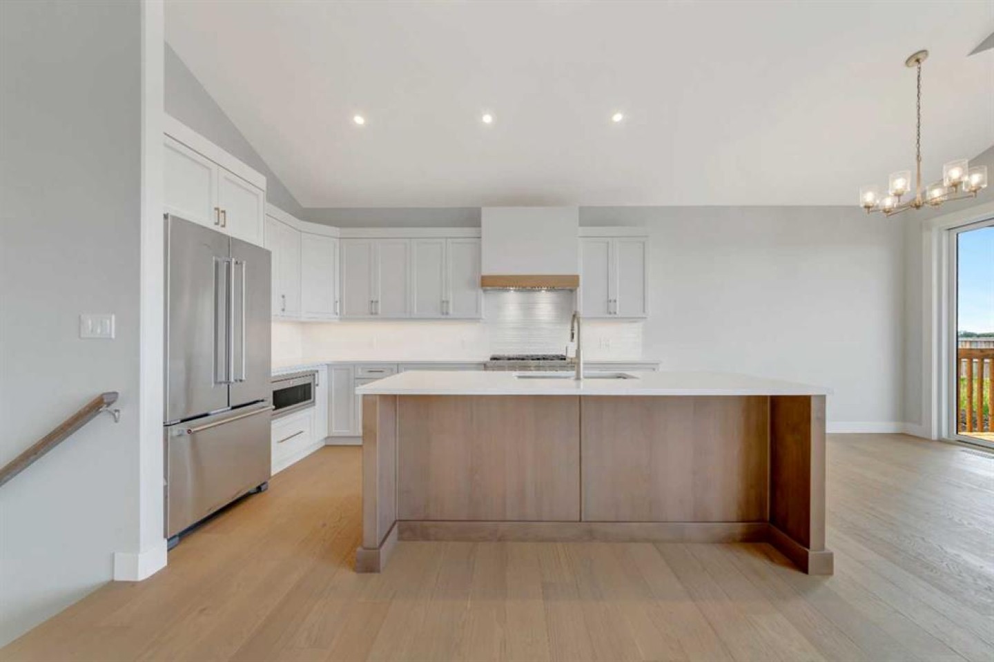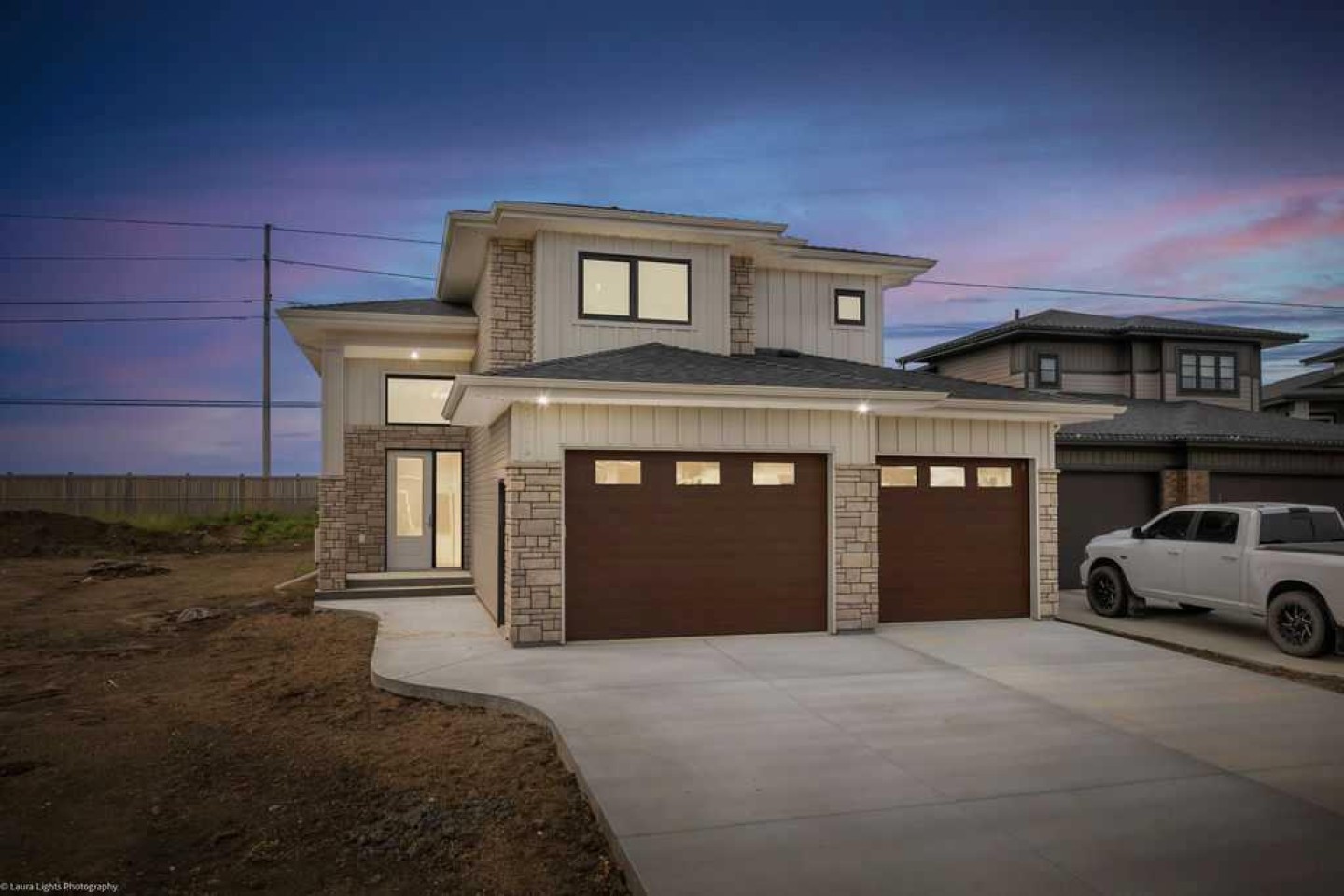 Step into a home where comfort meets style in this beautifully designed modified bi-level in the Lakeside neighborhood. Just steps from scenic walking and bike paths, top-tier amenities, and Bud Miller Park, this home offers the perfect balance of convenience and nature. As you enter, you're greeted by a bright and airy foyer, leading up to an open-concept main level with rich hardwood flooring throughout. The heart of the home—the kitchen—boasts sleek quartz countertops, a 36" gas range, and high-end appliances, making it a dream for home chefs. The adjacent dining area flows seamlessly onto a covered rear deck through 8” patio doors, perfect for morning coffees or summer barbecues. Cozy up by the electric fireplace where big windows flood the space with natural light. Central air conditioning ensures year-round comfort. Two spacious carpeted bedrooms and a stylish 4-piece bathroom with elegant tile complete the main floor. But the real retreat awaits upstairs, where the expansive primary suite offers the perfect escape. With a walk-in closet and a luxurious ensuite featuring dual sinks and a stunning tiled shower, this space is truly a sanctuary. Downstairs, the fully finished lower level offers endless possibilities. A spacious family room is ready for movie nights or game days, while two additional bedrooms provide space for guests or a growing family. A 3-piece bathroom and a well-designed laundry area add convenience to this already functional space. Completing this incredible home is a double attached garage, providing ample parking and storage. From its thoughtful layout to its unbeatable location, this home offers a lifestyle of comfort, elegance, and adventure. Whether you're enjoying a peaceful evening by the fireplace, entertaining on the deck, or exploring the nearby parks and trails, this is more than a house—it’s home.