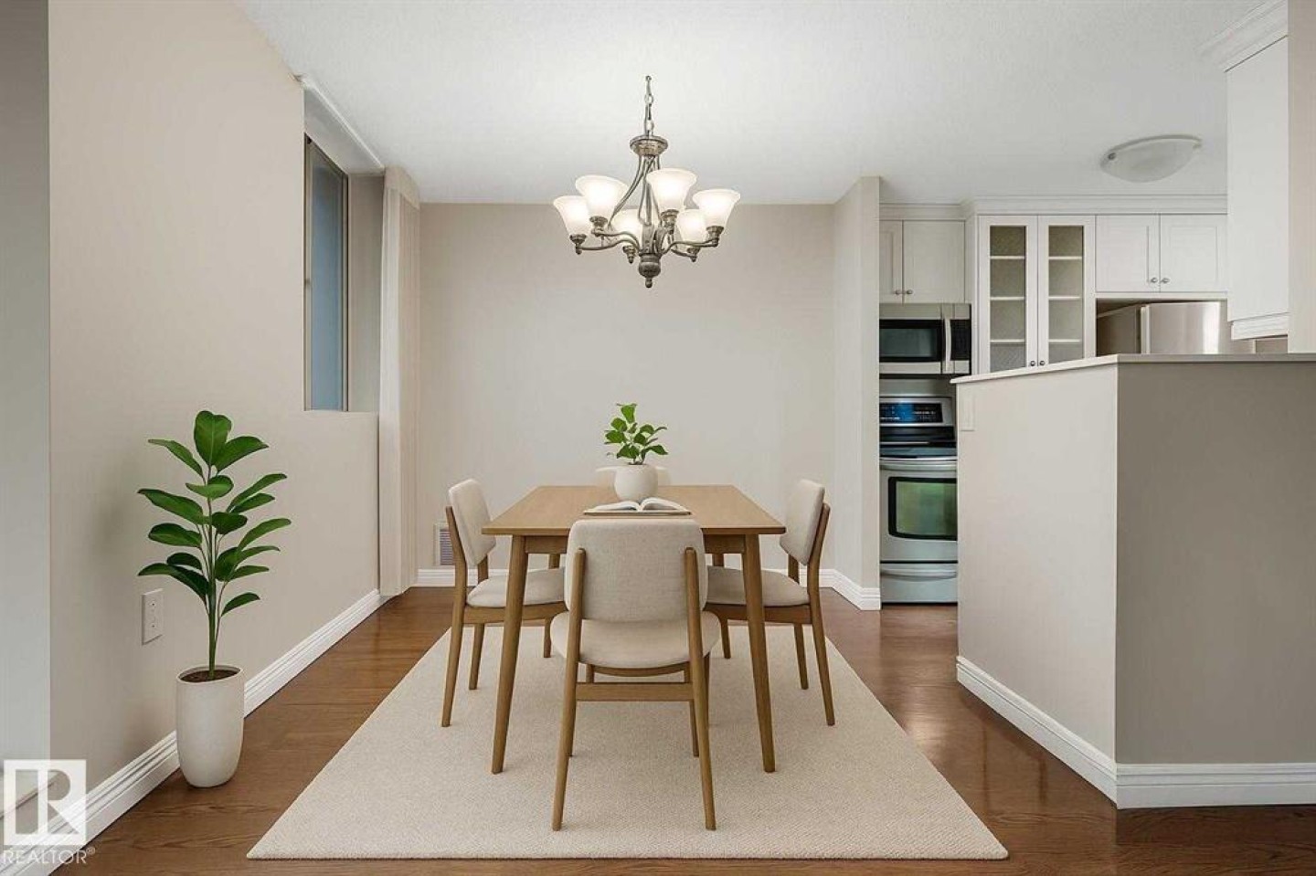 Urban Living at its Finest! Welcome to the Valhalla located in one of Edmonton's finest downtown districts. This 2 bed 1 bath is perfect for young professionals or those wanting to downsize from a home. Updated Kitchen Cabinetry, Newer Stainless appliances, Gleaming Hardwood Floors, In Suite Storage, a South East Balcony, Underground Parking ~ Painted in neutral colours offering you a blank slate to be creative with decorating your way. THE REAL SHOWSTOPPER? Resort-style amenities and unbeatable location ~ IN-COMPLEX amenities include Same floor Free Laundry, Salt Water Pool, Well Equipped Gym, Bike Storage & a Party/Social Room with Terrace Overlooking the incredible River valley Views. Close to walking Trails, Transit, and all the fantastic amenities nearby such as Shopping, Fine Restaurants, live Theatre & Music, Art Galleries & more. Located on a Beautiful Quiet Tree Lined Street ~The Valhalla is Professionally Managed on-site Daytime Staff, Fob equipped Entry, Pet & Child Friendly! (Virtually Staged)