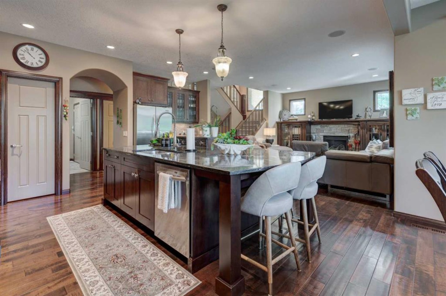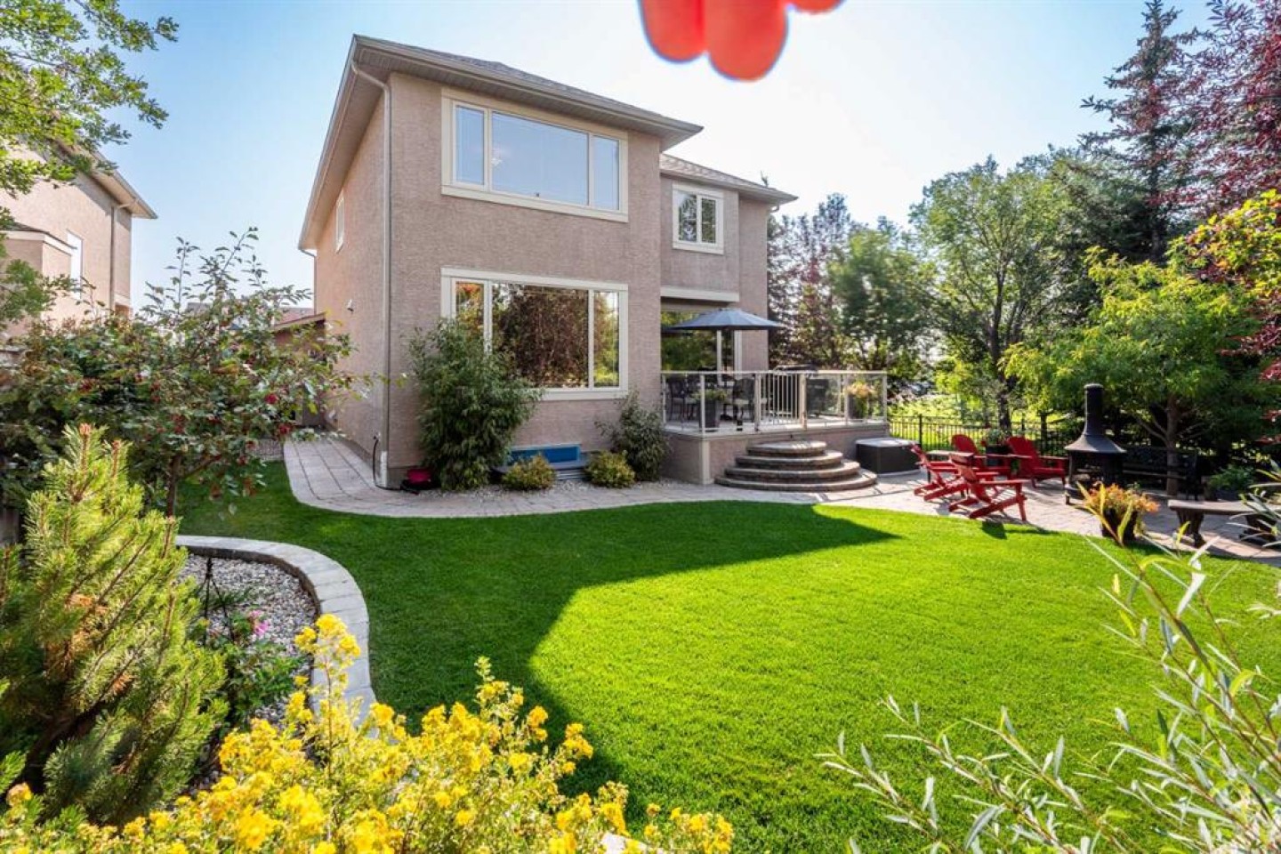 Welcome to 465 Marina Drive – A Custom-Built Lupi Luxury Home! Nestled beside a serene, treed greenbelt, this beautifully designed home offers a private backyard oasis and exceptional curb appeal with professional landscaping from front to back. Step inside to discover a thoughtfully designed floor plan featuring high-end finishes throughout: Triple Attached Garage: Includes a floor drain, painted and insulated walls, a garage heater, a passage door to the backyard, and a separate utility sink with taps and drain. Main Floor Highlights: Private den/home office Gourmet kitchen with granite countertops, high-end Thermador and KitchenAid stainless steel appliances Spacious walk-in pantry Great room with stunning stone fireplace and custom built-in cabinetry Upstairs Retreat: 2 oversized bedrooms Expansive bonus room with vaulted ceilings Elegant primary suite featuring a massive walk-in closet and a luxurious 5-piece ensuite Exterior & Finishing Touches: Professionally landscaped yard with decorative stone, retaining walls, trees, and shrubs Hand-scraped hardwood flooring and elegant ceramic tile throughout Exposed aggregate concrete driveway and walkways Additional Features: Custom door headers throughout Central air conditioning Two high-efficiency furnaces Basement design plans available Two humidifiers Water softener system This is more than a home – it’s a lifestyle. Immaculately maintained and loaded with upgrades, 465 Marina Drive is a must-see. Book your private viewing today and experience luxury living at its finest!