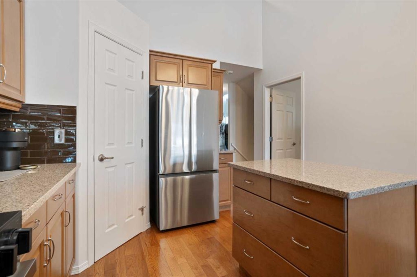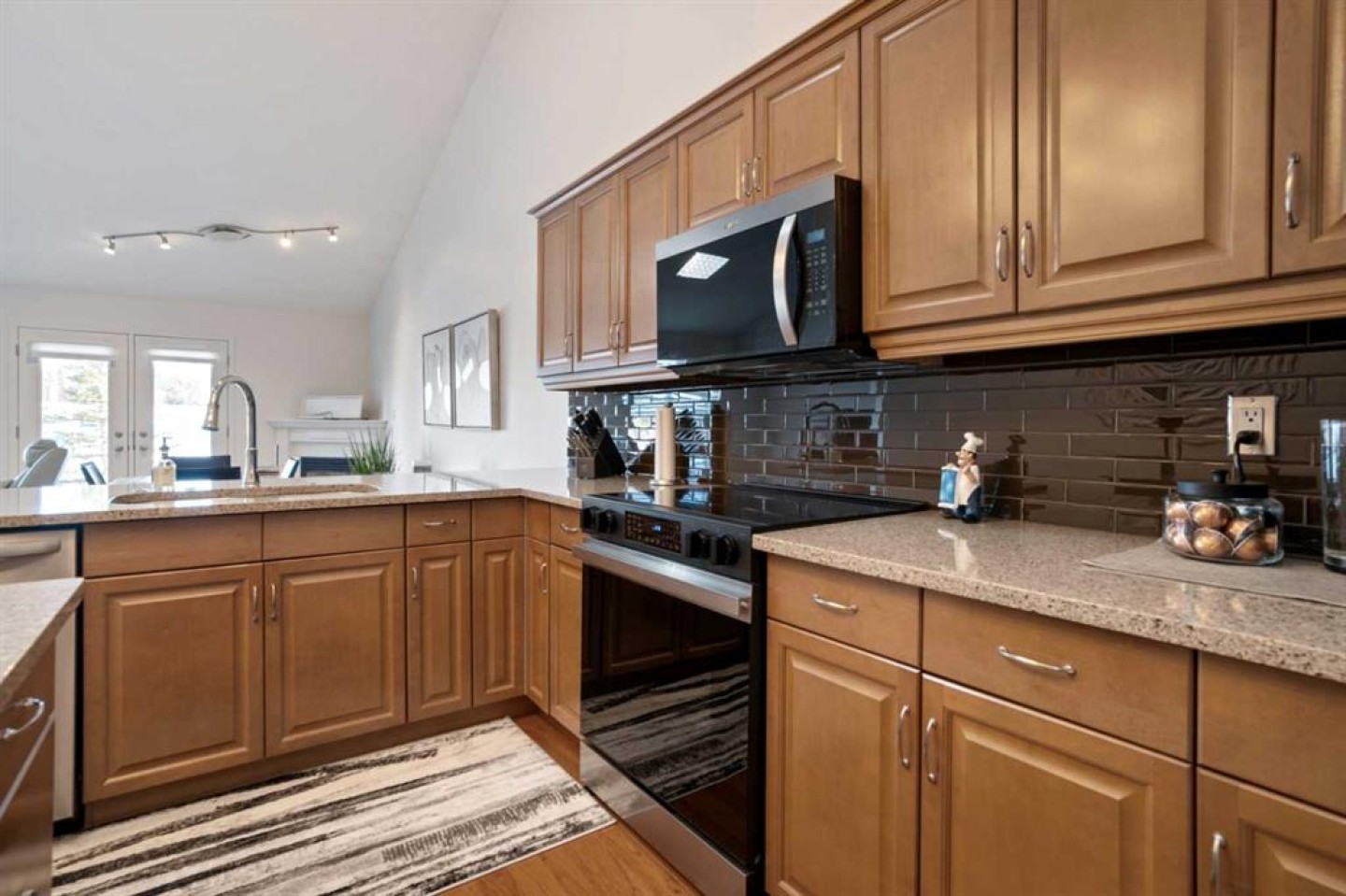 Welcome to this beautifully updated adult half duplex, offering refined, maintenance-free living in the Village at West Park. Freshly painted throughout and enhanced with new light fixtures, this home shines with a modern, move-in-ready feel. Brand new appliances, window coverings, and granite countertops elevate the open-concept kitchen, while vaulted ceilings, solar tube lighting, cozy gas fireplace, and central air conditioning create a bright and welcoming living space. The main level is thoughtfully designed for everyday comfort, featuring convenient laundry, a stylish 3-piece bath, and a spacious bedroom. A versatile office or den offers the flexibility of a guest bedroom if desired. Patio doors provide direct access to your private rear deck that is perfect for relaxing or entertaining. Upstairs, you’ll find a cozy flex area ideal for reading or unwinding, along with the primary retreat. This serene space includes a walk-in closet, a 4-piece en-suite, and access to a private balcony complete with an automated awning overlooking the pond. An elegant touch that truly sets this home apart. The fully developed basement adds even more living space with a large family room, an additional bedroom, a 3-piece bathroom, and ample storage. Completing the package is a conveniently attached, heated double garage. Located in a welcoming adult community with a clubhouse and maintenance-free lifestyle, this home is ideally situated near west end shopping , medical clinics and walking trails. -shingles (2023), hot water tank (2025), and freshly cleaned furnace and ductwork (2025). A perfect blend of comfort, style, and carefree living.This is one you won’t want to miss.