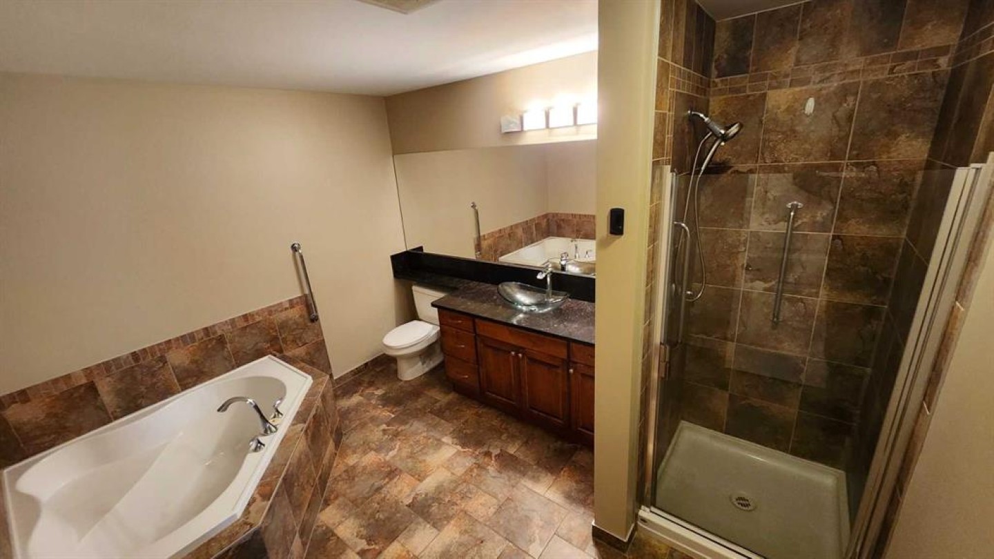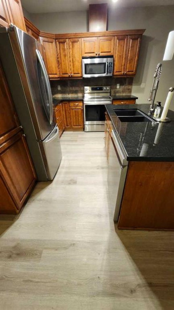 Welcome to this bright and stylish 2-bedroom, 2-bath condo ideally located just steps from downtown beautiful Sylvan Lake. This open-concept apartment offers the perfect blend of comfort and convenience with a spacious layout designed for modern living. The kitchen is a true highlight, featuring a large island with granite countertops, newer stainless steel appliances, built-in wine cooler, and plenty of space for cooking or entertaining. The open living and dining area is filled with natural light, creating a warm and inviting atmosphere complete with newer flooring and cozy gas fireplace. The primary suite offers a relaxing retreat with a walk-in closet and a large corner soaker tub in the large ensuite bathroom. A second bedroom and full bathroom make it perfect for guests or a home office. In-suite laundry adds everyday convenience. Enjoy the best of both worlds—easy access to shopping, restaurants, and the lake, all from the comfort of your bright and beautiful condo. Heated underground parking and storage unit. No pets and no short term rentals in this building.