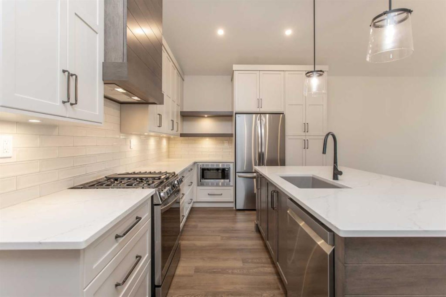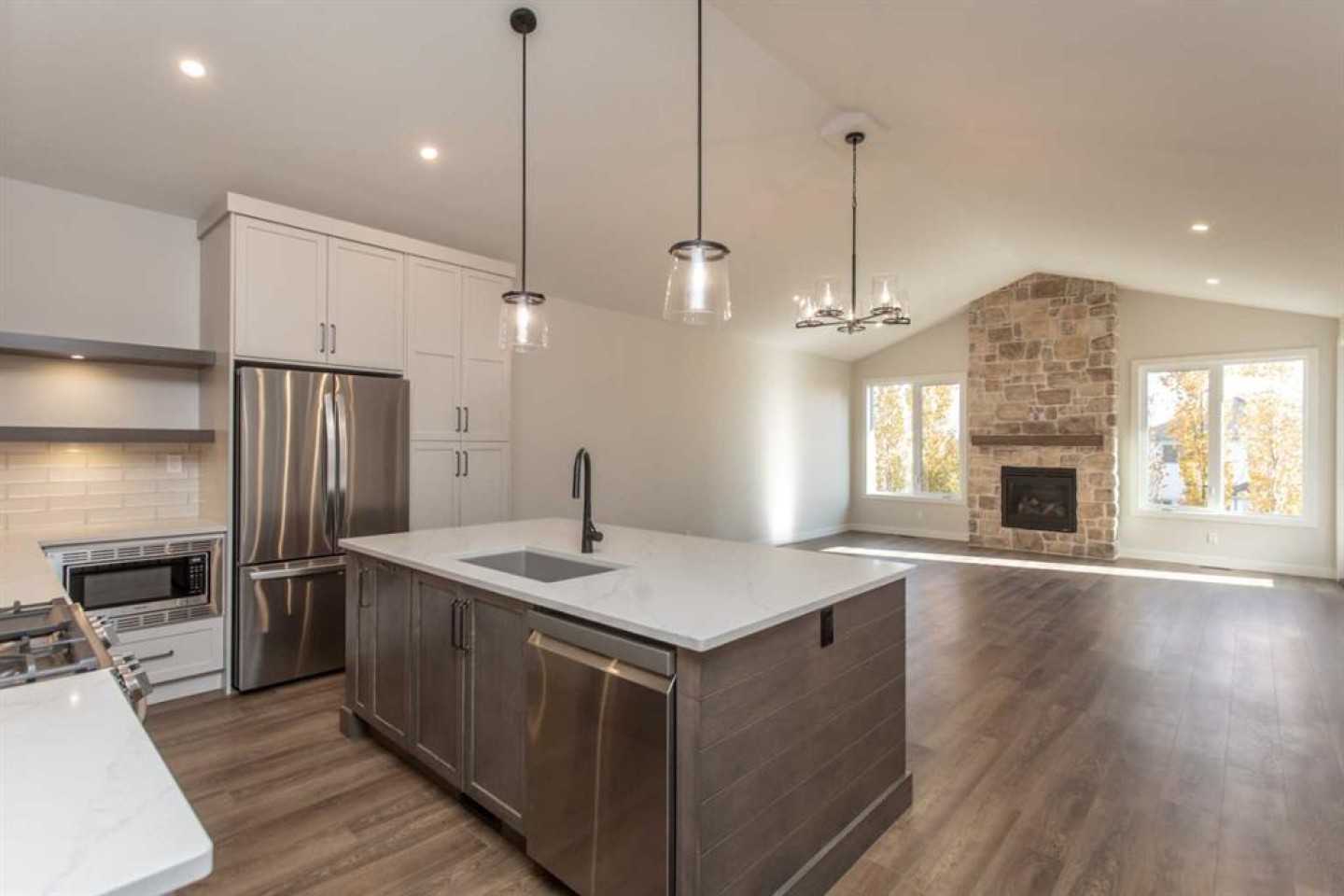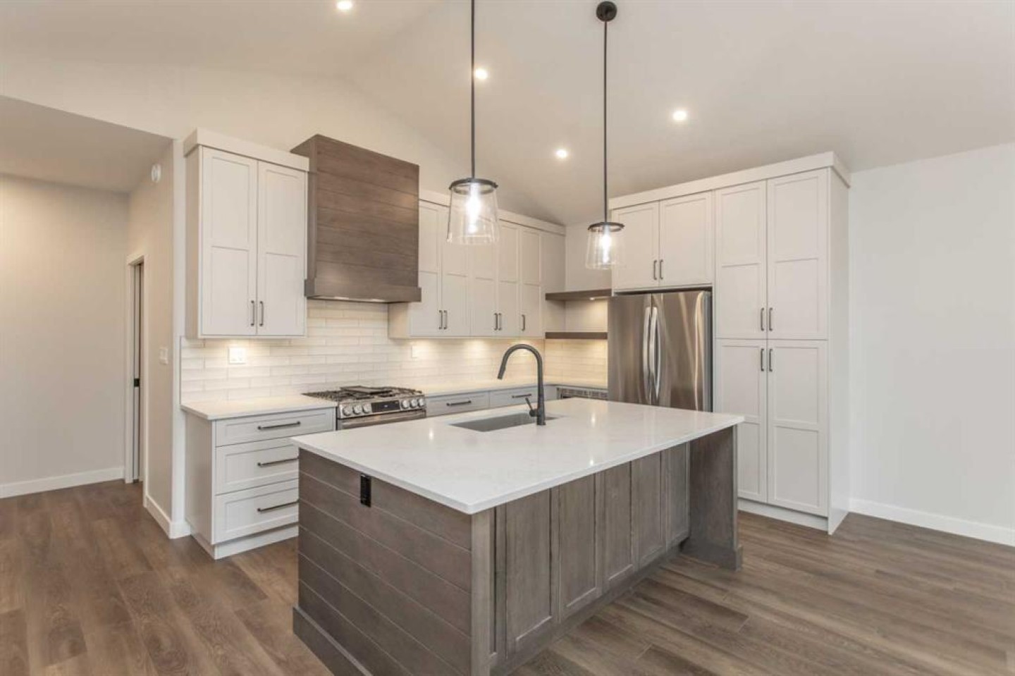 Welcome to your dream home! This Executive style duplex boasts a 1,421 sq foot open plan with luxury vinyl plank wood grain finishes, you'll be greeted by soaring vaulted ceilings with spacious living room, a stunning stone fireplace perfect for relaxation and entertaining. This Sorento show home features triple-pane windows, allowing natural light to flood the interiors while providing exceptional energy efficiency and noise reduction. The stunning kitchen showcasing beautiful quartz countertops, custom cabinetry, and top-of-the-line appliances. The spacious primary bedroom with an amazing 5 pc ensuite and large walk in closet. The fully finished basement features a large family room with 2 bedrooms , a 4 pc bathroom and walks out onto an amazing backyard.
