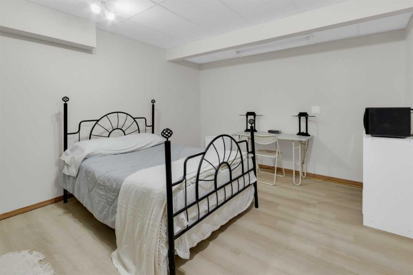 Over 2800 sq.ft. of developed living space in this exceptionally private, vaulted, walkout, villa style home in an amazing location! You will love the light airy feel of vaulted ceilings in the spacious main floor living, dining, kitchen, den/office, and bedroom areas. This surprisingly bright end unit walkout bungalow has sunlight spilling in all day from skylights plus large windows on 3 sides - south, west and east. Freshly painted in neutral designer colours throughout (Oct 2025) with vinyl plank flooring updates accenting hardwood floors in large functional living area with gas fireplace, dining and den areas. Enjoy sunrise coffees and cool evenings on the peaceful secluded and extended deck surrounded by birdsong in mature flowering trees. A big main level den or sitting room connected to a fresh white kitchen with a south facing box window which adds light to an already bright space. Generous walkout level family room with oversize windows and sliding doors to a private patio. Also features a large bedroom with adjacent full bath, plus 2 flex rooms and loads of storage. New HE furnace & HW tank, 2019. (NOTE: All the “Poly B” pipes have been replaced). Super convenient location - imagine walking literally just 1 block to Sunterra West Market Square, the L.R.T., coffee shops, pubs, and restaurants. Also close to natural ravine walking paths, dog parks & bike paths. Easy access to major commuting routes including Sarcee trail and the SW Ring Road. Click on 3D for interactive floorplans. NOTE This the end unit of a triplex. Just move in, relax, and enjoy your easy care, lock and leave lifestyle!
