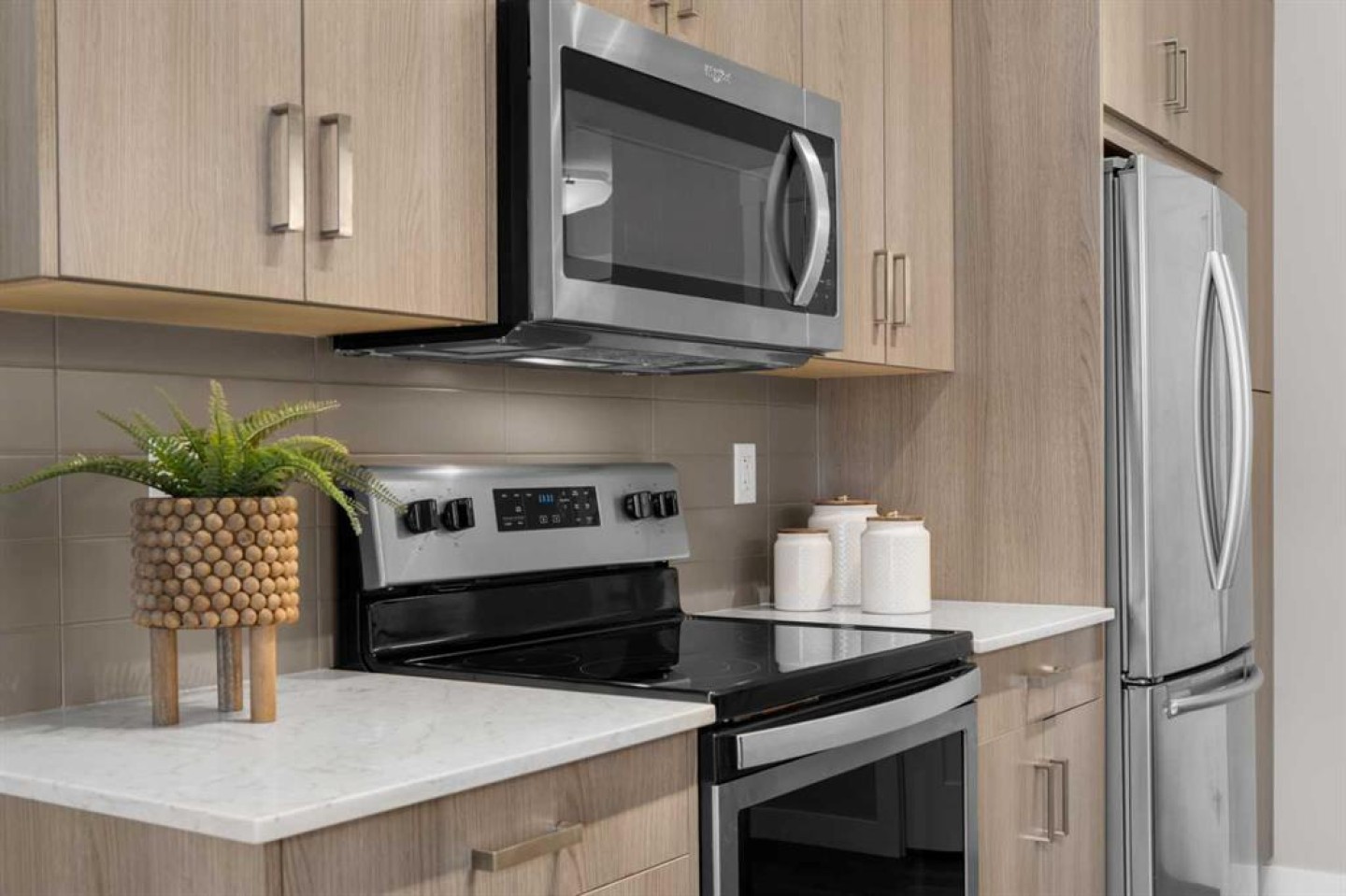 Welcome to lakeside living in the premiere community of Auburn Bay! This beautifully maintained 2-bedroom, 2-bathroom condo combines modern comfort with an unbeatable location just steps from the lake, parks, and vibrant amenities. Step inside and enjoy an open-concept layout designed for everyday living and entertaining. The kitchen features sleek cabinetry, stone countertops, stainless steel appliances, and a breakfast bar that flows seamlessly into the bright living area. Large windows fill the space with natural light, and the private balcony offers a perfect spot to relax or enjoy your morning coffee. The primary suite includes a large closet and a private ensuite with walk-in shower, while the second bedroom and full bath provide ideal space for guests, family, or a home office. In-suite laundry adds convenience, and the unit includes a titled underground heated parking stall with a secure storage cage — perfect for keeping your car and gear protected year-round. Living in Auburn Bay means access to a 43-acre freshwater lake, beach, skating rinks, parks, and walking trails, plus proximity to schools, shopping, restaurants, and the South Health Campus. With quick access to major routes like Deerfoot and Stoney Trail, this home truly offers the best of comfort, lifestyle, and location. Experience the perfect blend of modern living and resort-style amenities — welcome home to Auburn Bay!