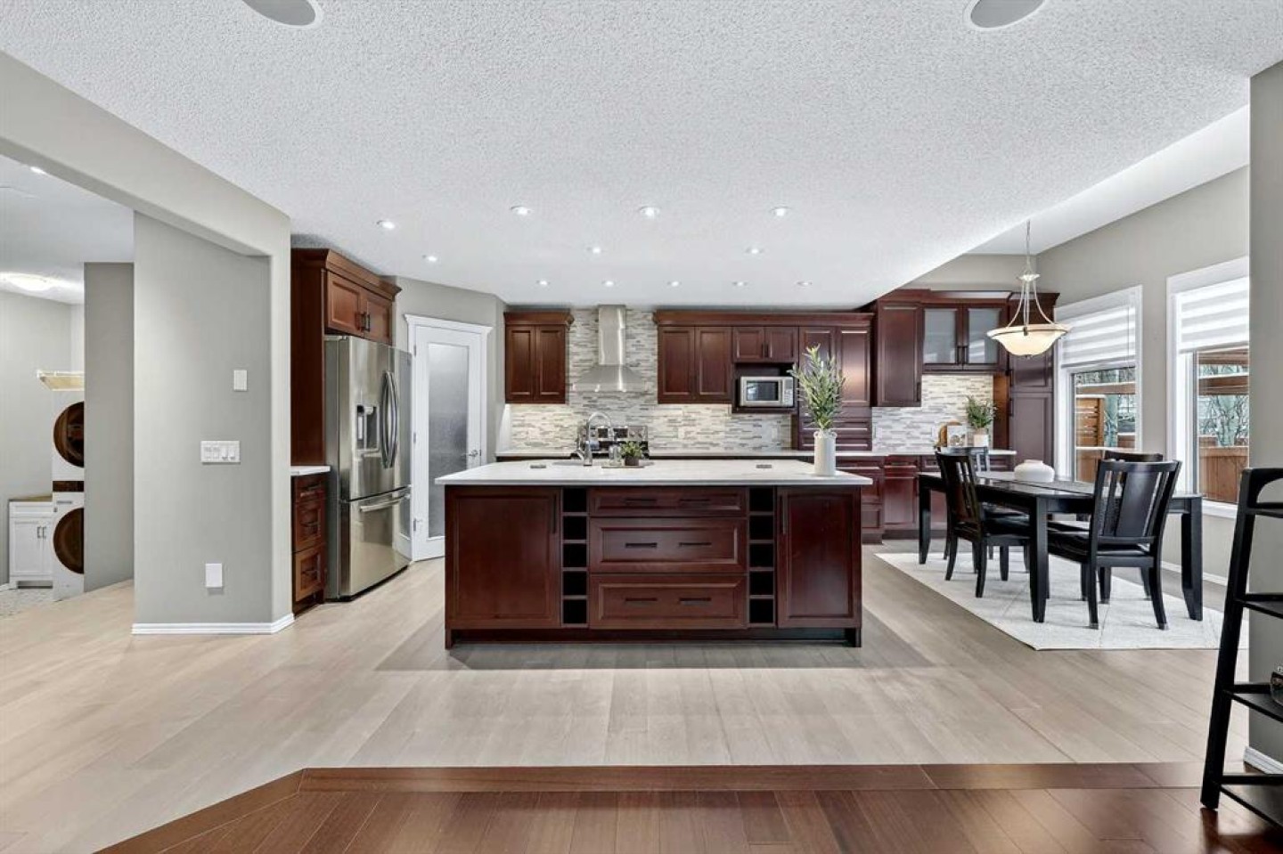 **OPEN HOUSE - Saturday, January 31 & Sunday, February 1 - 1PM-4PM*** Welcome to this well cared for and upgraded family home in Panorama Hills! Offering over 2,900 sq ft of developed living space designed for comfort, entertaining, and everyday living. The bright, open concept main floor features gleaming hardwood flooring throughout and is filled with natural light. A main floor office, updated 2-piece bathroom, and laundry area with sink add functionality for busy households. The heart of the home is the $50,000 fully renovated kitchen, complete with custom cherry wood cabinetry, crisp quartz countertops, tile backsplash, pantry, large center island with undermount sink, and upgraded stainless steel appliances: including a dual oven and water-dispensing refrigerator. The kitchen opens to the dining area with extended cabinetry, 10-foot ceilings and a garden door leading to a newly built $55,000 Hawaiian themed two-tiered composite deck with custom wood pergolas, creating an ideal outdoor entertaining space! The large living room is anchored by a floor-to-ceiling stone faced fireplace and features a large picture window overlooking the sunny SW backyard. Upstairs the huge, vaulted bonus room offers a flexible space for a kids play area, games room, or movie room! The spacious primary bedroom features a spa-inspired ensuite with tile flooring, soaker tub, seperate shower, and a walk-in closet with custom organizers. Two additional well-sized bedrooms and another full 4-piece bathroom complete the upper level. The fully finished basement expands the living space with a large recreation room with full wet bar, spacious fourth bedroom, and full bathroom, perfect for guests or entertaining! Additional highlights include central air conditioning for those hot summer days and an oversized 21.5' x 21.5’ double attached garage. Prime location on a quiet cul-de-sac adjacent to the ravine pathways and surrounded by parks, schools, shopping, and transit! Quick access in and out and to Stoney Trail ring road, making commuting a breeze. This move-in-ready home offers exceptional value in one of NW Calgary’s most established and sought after communities.
