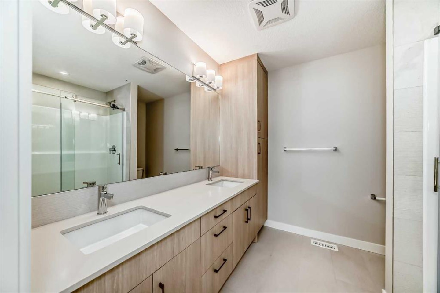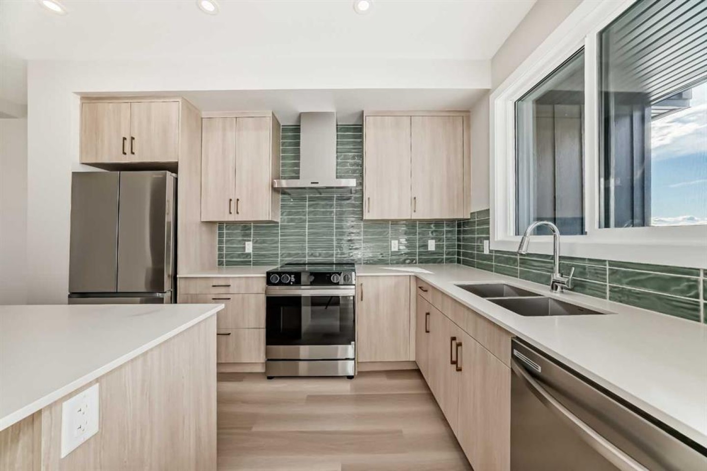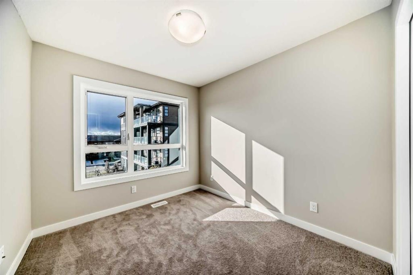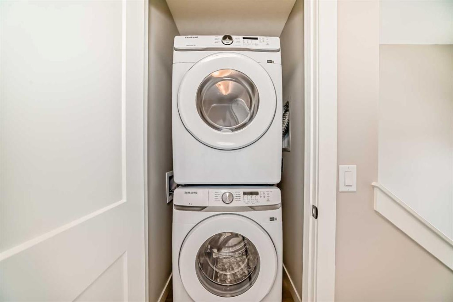 Only two townhomes remain in award-winning Logel Homes' Livingston Views development. This 1,481 sq. ft. residence (builder size) features upgraded cabinetry, quartz countertops, and premium Samsung stainless steel appliances. With 3 bedrooms and 2.5 bathrooms, the spacious primary suite includes a walk-in shower and dual sinks in the ensuite. Both second-floor bathrooms are finished with upgraded ceramic tile. The main floor is enhanced with pot lighting throughout, complementing the modern design. Additional features include a double underdrive garage for added convenience. Enjoy year-round comfort with central air conditioning and the assurance of a 5-year Alberta New Home Warranty. Ideally situated near shopping, parks, and an on-site lake, this home offers the perfect blend of luxury and practicality. Livingston Views is a short walk from “The Hub”, Livingston’s 35,000 square-foot Homeowners Association facility, and surrounded by 250 acres of open space, parks, and prairies. All set along the picturesque Livingston West Ponds.