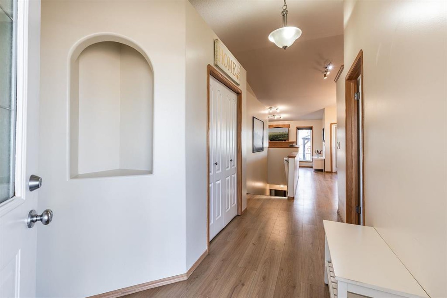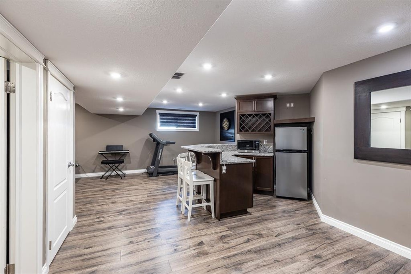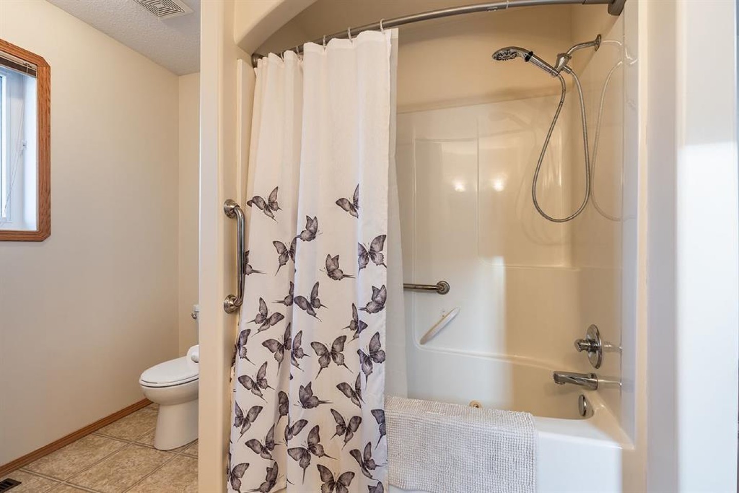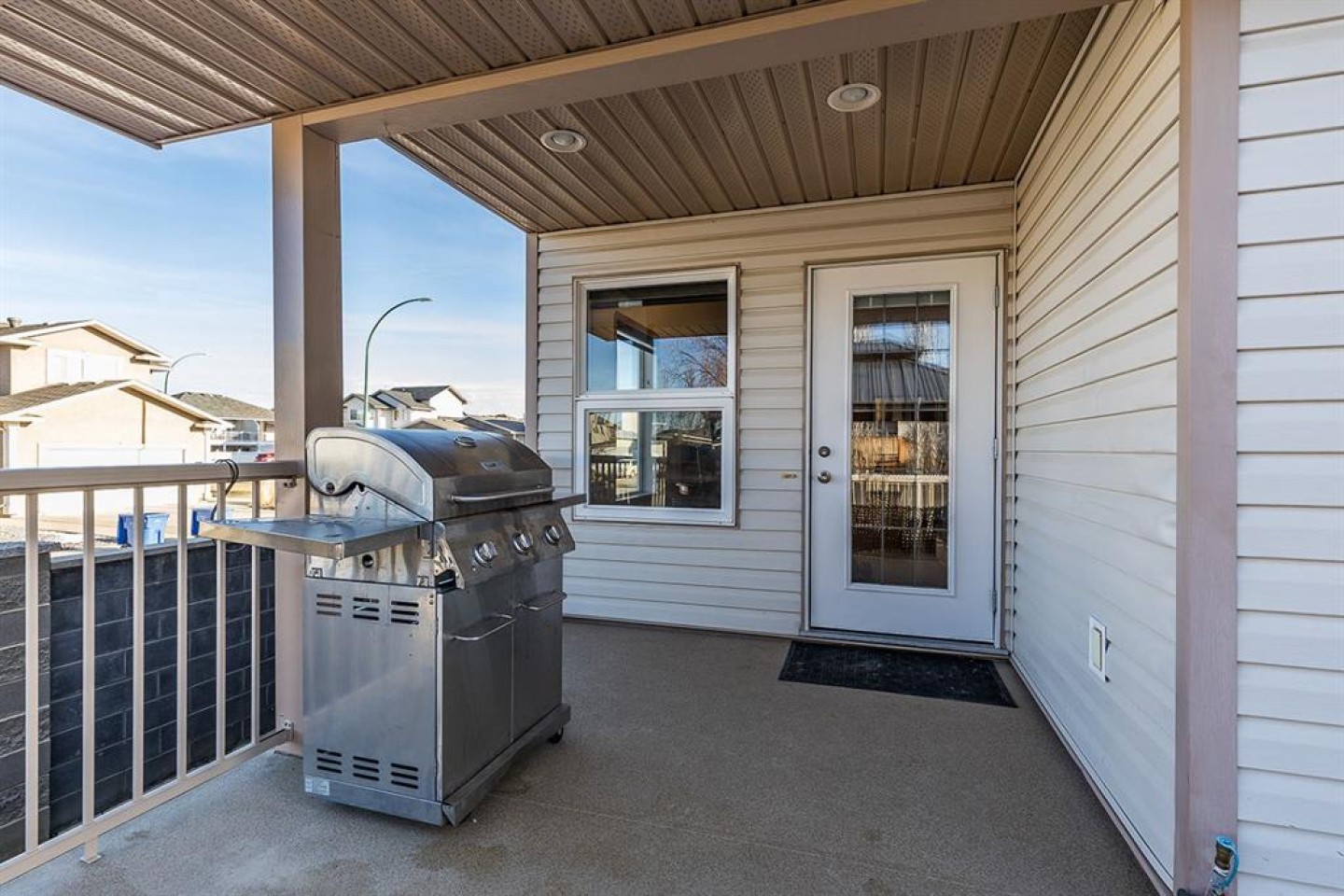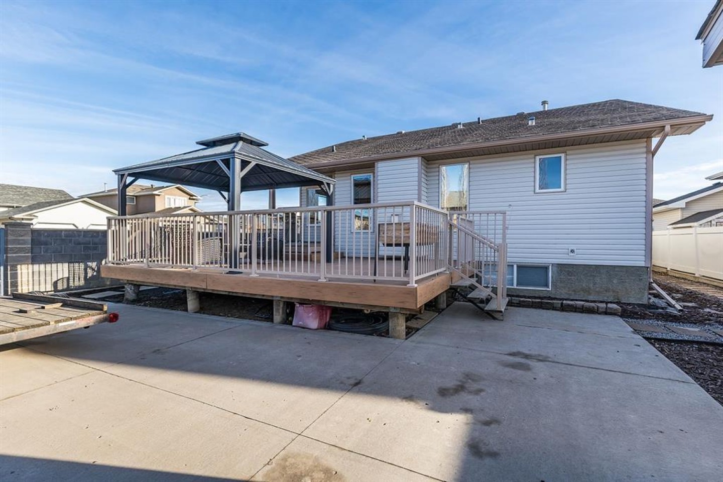 This beautifully designed 1,200+ sq ft bungalow is ideally positioned on a corner lot, showcasing a timeless brick front exterior, masonry fencing, and a thoughtfully planned low-maintenance yard complete with a storage shed. From the moment you enter, you’ll appreciate the bright, open layout enhanced by vaulted ceilings and vinyl plank flooring throughout the main level. The heart of the home is the spacious kitchen, featuring stainless steel appliances, a large island with seating, ample cabinetry, and seamless flow into the dining and living areas—perfect for both everyday living and entertaining. The inviting living room is anchored by a cozy gas fireplace, creating a warm and welcoming atmosphere year-round. Just off the main living space, step onto the oversized deck, ideal for summer barbecues, outdoor dining, or relaxing evenings. The main floor offers two generous bedrooms, including a primary suite with its own ensuite, along with a dedicated office—perfect for remote work or a quiet study space. Main floor laundry adds everyday convenience and completes the highly functional layout. Downstairs, the fully finished basement expands your living space with two additional bedrooms, a modern 3-piece bathroom with walk-in shower, and a well-appointed bar and entertainment area, making it an ideal space for hosting guests, movie nights, or accommodating family and visitors. Additional highlights include a double attached garage, ample storage options, and a layout that offers comfort, style, and practicality. This move-in-ready bungalow combines quality finishes, versatile living spaces, and an excellent location—perfect for families, professionals, or those seeking single-level living with room to grow.