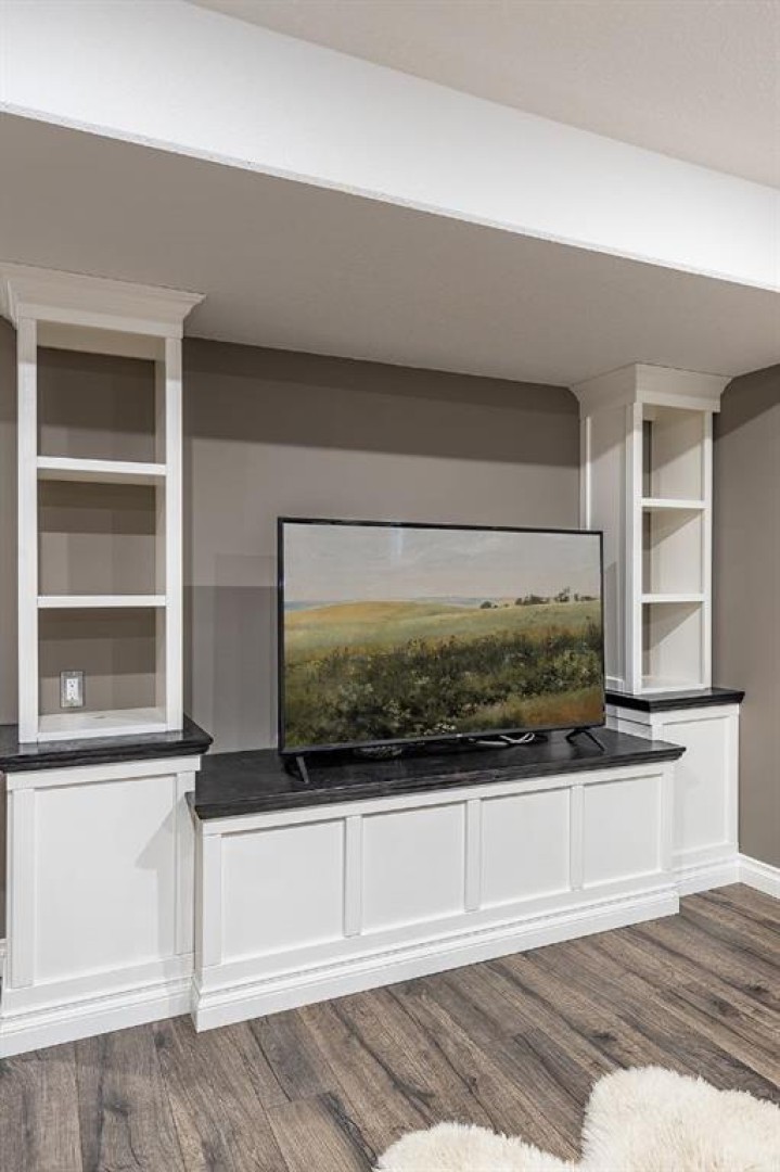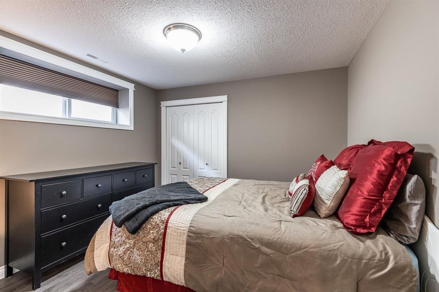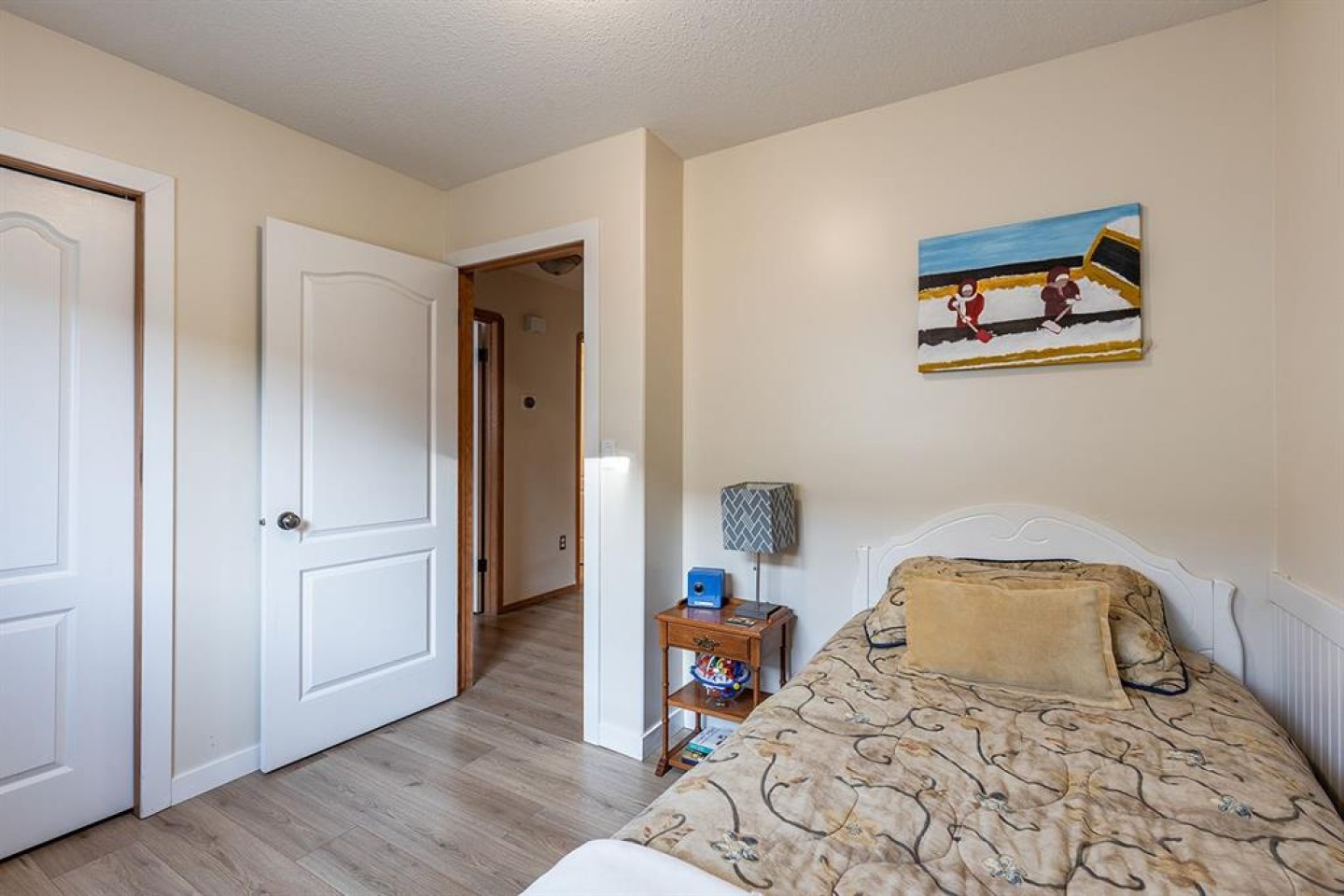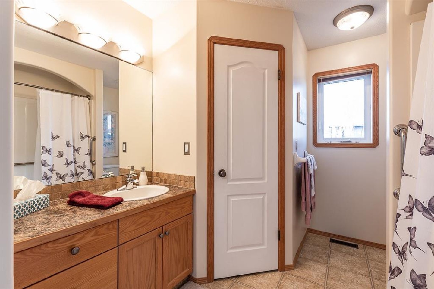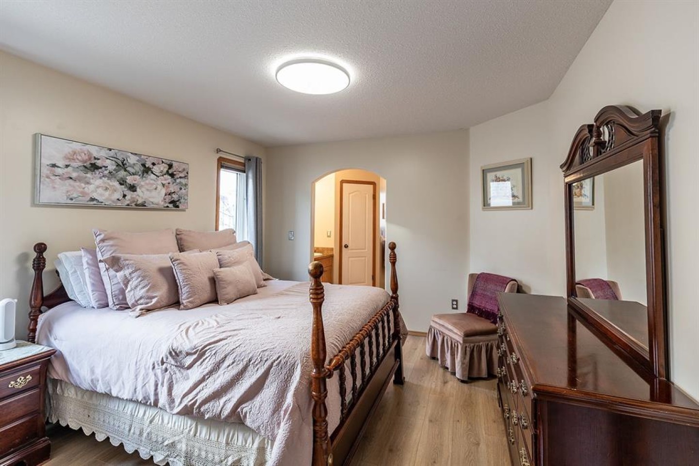 This beautifully designed 1,200+ sq ft bungalow is ideally positioned on a corner lot, showcasing a timeless brick front exterior, masonry fencing, and a thoughtfully planned low-maintenance yard complete with a storage shed. From the moment you enter, you’ll appreciate the bright, open layout enhanced by vaulted ceilings and vinyl plank flooring throughout the main level. The heart of the home is the spacious kitchen, featuring stainless steel appliances, a large island with seating, ample cabinetry, and seamless flow into the dining and living areas—perfect for both everyday living and entertaining. The inviting living room is anchored by a cozy gas fireplace, creating a warm and welcoming atmosphere year-round. Just off the main living space, step onto the oversized deck, ideal for summer barbecues, outdoor dining, or relaxing evenings. The main floor offers two generous bedrooms, including a primary suite with its own ensuite, along with a dedicated office—perfect for remote work or a quiet study space. Main floor laundry adds everyday convenience and completes the highly functional layout. Downstairs, the fully finished basement expands your living space with two additional bedrooms, a modern 3-piece bathroom with walk-in shower, and a well-appointed bar and entertainment area, making it an ideal space for hosting guests, movie nights, or accommodating family and visitors. Additional highlights include a double attached garage, ample storage options, and a layout that offers comfort, style, and practicality. This move-in-ready bungalow combines quality finishes, versatile living spaces, and an excellent location—perfect for families, professionals, or those seeking single-level living with room to grow.