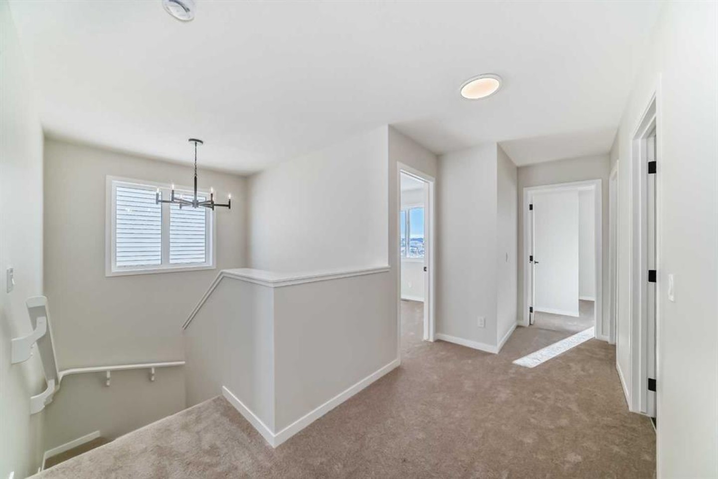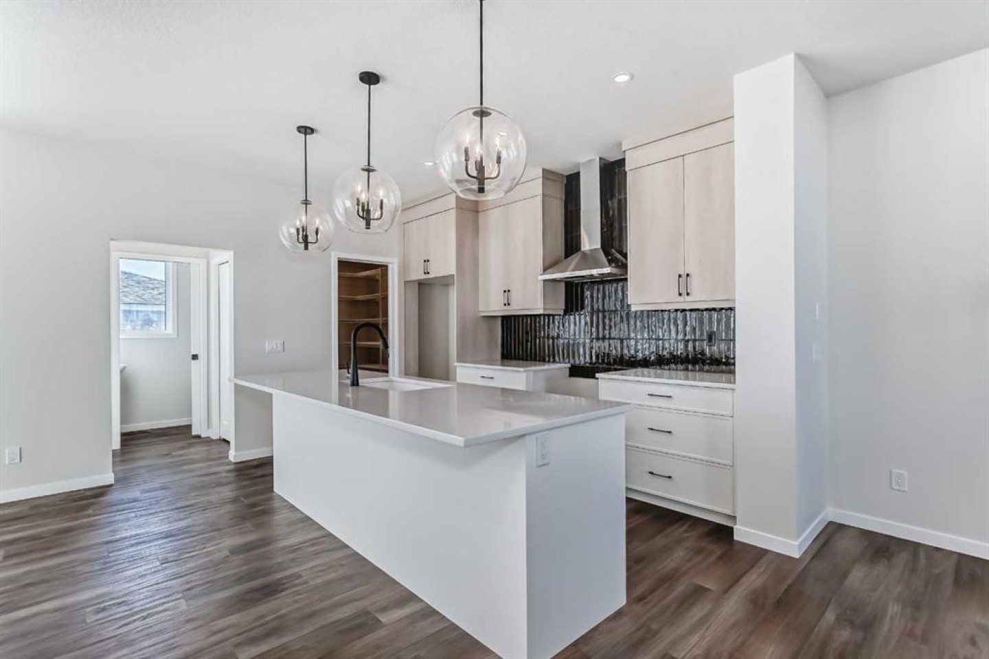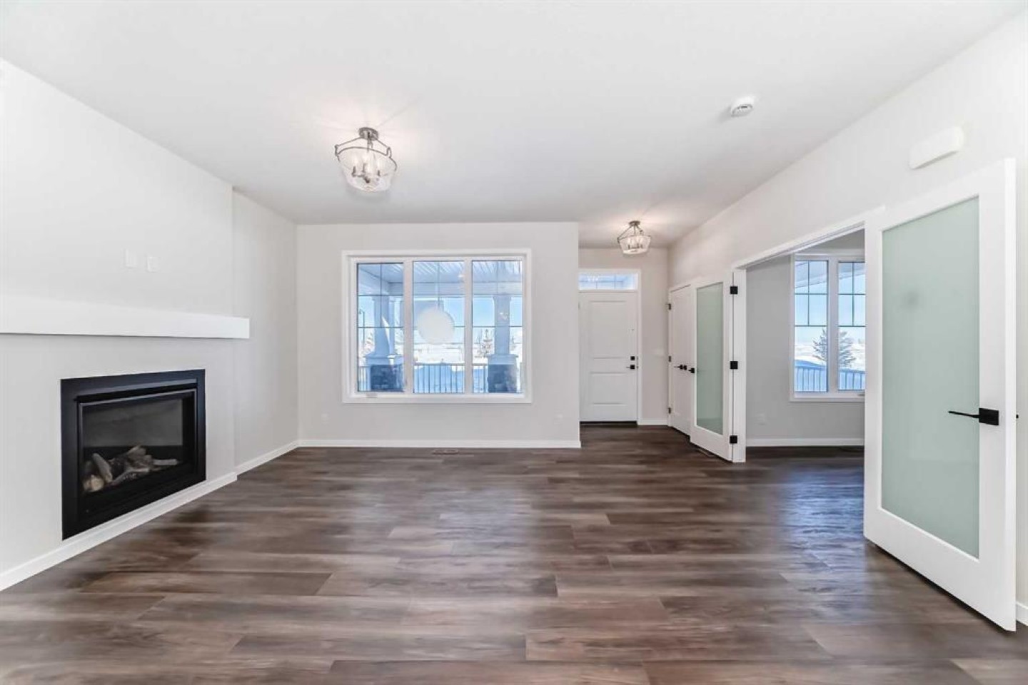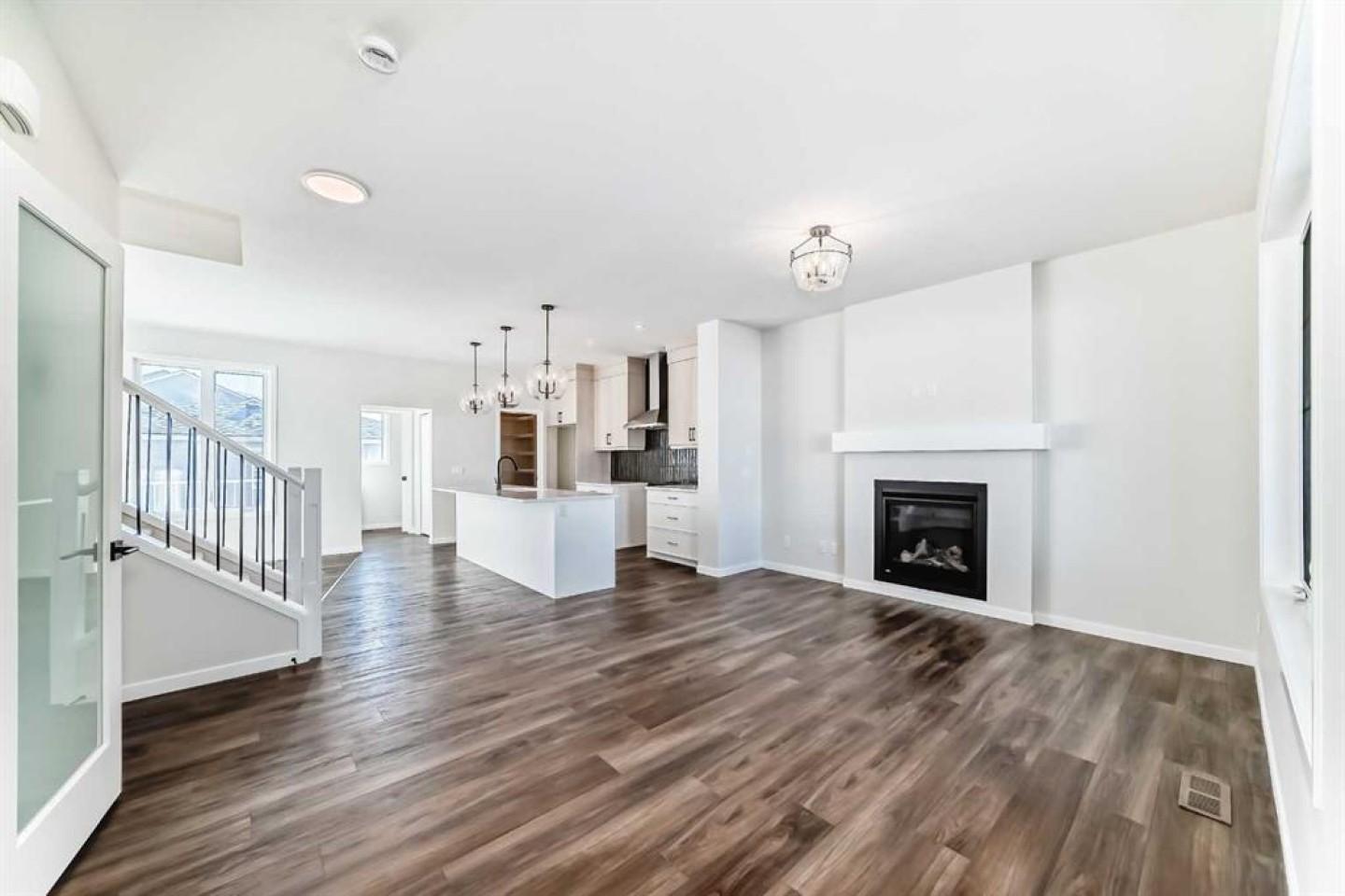 Welcome to the Forrester—a rare, family-friendly porchfront home fronting directly onto the park, paired with a triple detached garage and a driveway/parking setup that can accommodate up to six vehicles. This is the kind of combination that’s almost impossible to find, and it delivers a lifestyle that feels special from the moment you arrive. Start your mornings on the spacious 225 sq ft front porch, coffee in hand, watching the park come to life—perfect for playdates, dog walks, or simply enjoying an open view right outside your front door. Inside, the home is bright and welcoming thanks to large windows at both the front and back, carrying natural light deep throughout the day and every season. The main floor is designed for real life: a generous front living room and a flexible main-floor flex room (office, playroom, craft room—your call) lead into an open-concept layout anchored by a modern galley-style kitchen. You’ll love the elevated finish package here, including two-tone cabinetry, full-height upper cabinets, soft-close doors, quartz countertops, striking black hardware, and an upgraded chimney hood fan with built-in microwave. A large central island makes everyday meals and entertaining easy, while the oversized walk-in “Costco-ready” pantry keeps everything organized. Luxury vinyl plank flooring flows throughout the main level, tying it all together with a clean, contemporary feel. Off the rear entry, the mudroom adds practical function—complete with a private powder room that’s ideal for busy family routines. Cozy evenings are effortless in the open living space with a contemporary gas fireplace (cantilever-style feature), and the home is already set up for outdoor hosting with a gas line for the BBQ. For home chefs, you’ll also appreciate the gas line to the kitchen range—ready for your preferred cooking setup. Upstairs, you’ll find three bedrooms arranged for comfort and privacy, including winged secondary bedrooms that help keep everyone’s space their own, plus a convenient upper laundry room. The owner’s suite is a true retreat with no directly shared walls, a dramatic vaulted ceiling, large bright windows overlooking the park-facing front yard, a spacious walk-in closet, and a spa-inspired 5-piece ensuite with a soaker tub and dual vanities. Finishing touches like metal stair railings add to the home’s modern, upscale feel. Outside, the standout continues: a large triple detached garage, plus an exceptional amount of additional parking—whether it’s guests, toys, or a growing household, this is a game-changer. A park-front location, a triple garage, parking for up to six, and a well-curated interior finish package—this Forrester checks boxes that rarely come together in one home. Living in Vista Crossing means enjoying the best of both worlds: the convenience of city living just a short drive from Calgary, paired with the charm and slower pace of small-town life in Crossfield. This thoughtfully planned community fosters a strong sense of belonging.