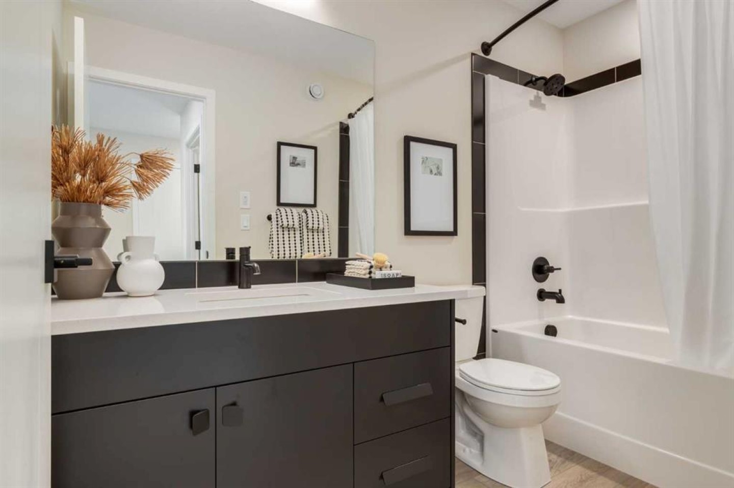 Blending functionality and charm, the Sutton is a welcoming home designed for real life—equally perfect for entertaining friends or settling in for a cozy night at home. The open-concept main floor feels bright and spacious, featuring luxury vinyl plank flooring throughout, quartz countertops, and a warm electric fireplace that anchors the living space. The classic L-shaped kitchen is as practical as it is polished, with a central island for prep and gatherings, plus a kitchen window overlooking the backyard—ideal for keeping an eye on kids, pets, or the BBQ while you cook. A walk-in butler’s pantry adds the “everything-but-the-butler” convenience: well-lit, organized storage just steps from where you’ll need it most. Daily routines are made easier with a rear mudroom complete with additional storage and built-in lockers—perfect for shoes, backpacks, coats, and all the little essentials that tend to pile up. A modern wood railing and statement slat-wall detail add bold style in all the right places, creating an eye-catching focal point while still keeping safety and function front of mind. Upstairs, the thoughtful layout continues with a central bonus room that creates a comfortable buffer between the primary suite and the secondary bedrooms—giving everyone space to spread out, connect, or unwind. The winged bedroom configuration enhances privacy, while second-floor laundry keeps day-to-day living efficient. The primary bedroom feels like a true retreat with a vestibule-style entrance and a spacious ensuite offering a dual vanity and a wet room option—bringing spa-worthy comfort to your everyday. A 9’ foundation adds valuable lower-level height and flexibility, and the home is solar ready with 200-amp service, a 64-panel breaker, and conduit roughed-in to the roof—built with the future in mind. Enjoy outdoor living with a deck already in place, ready for summer dinners and relaxed evenings. Set in Calgary’s “new west,” Alpine Park is designed around New Urbanist principles—meaning walkability, people-first streetscapes, and a community layout built to encourage connection. At the heart of it all is the planned Village Centre, envisioned as an amenity core with everyday conveniences (think grocery/pharmacy and more) plus places to linger like restaurants and coffee spots—intentionally planned so many daily needs are within an easy walk. The community also highlights design touches like couplet roads that help diffuse traffic and support a more comfortable, walkable feel, along with parks and green connections such as Midway Park that link the Village Centre through the neighbourhood. And when you do want to get out and explore, Alpine Park’s location pairs quick access to Calgary via Stoney Trail with easy escapes toward nature—plus Fish Creek Provincial Park is close by for walks, rides, and weekend resets. **Photos are from the show home/previous builds to demonstrate quality of construction & finishes and may not be an exact representation of this home**