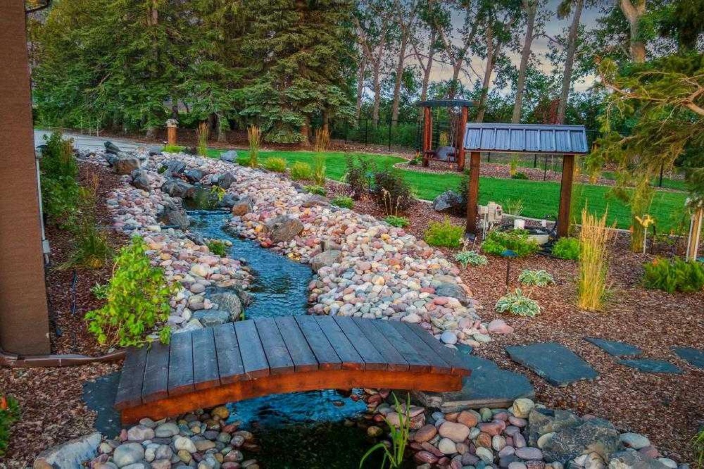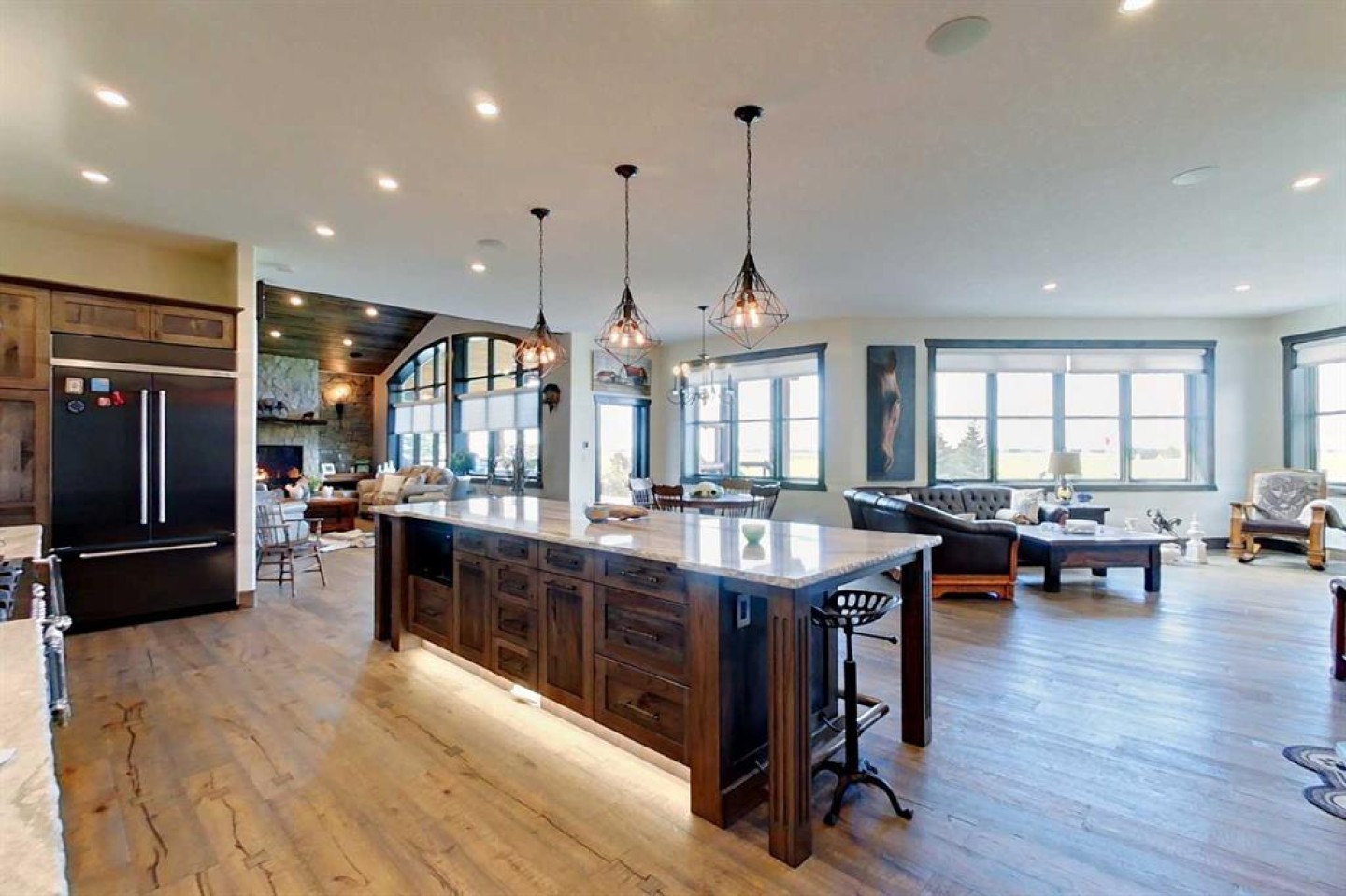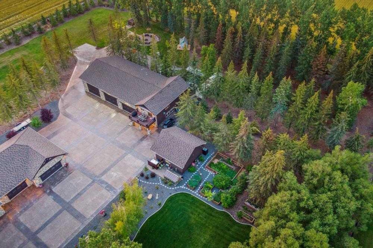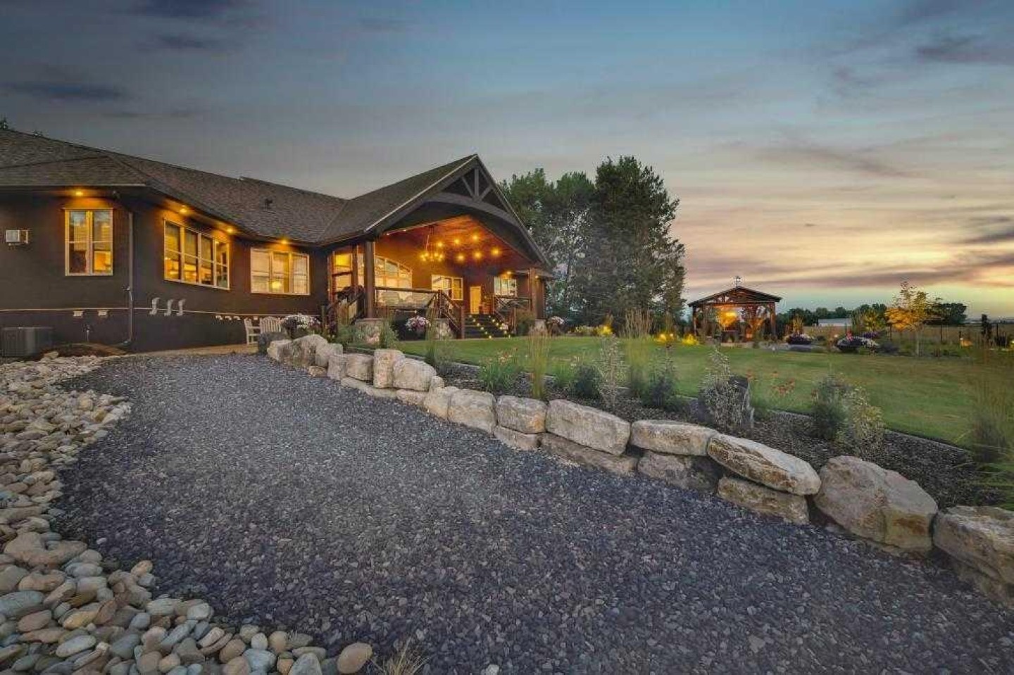 EXECUTIVE ACREAGE WITH STUNNING MOUNTAIN VIEWS AND A PARKLIKE SETTING! First time offered for sale and extremely rare opportunity to purchase this pristine 5.21 +/- Acres Located Just mins South of Olds on pavement. This is the perfect central Alberta location with Less than a 1hr drive to the Calgary airport and just 40 mins to Red Deer. The entire property sends a majestic mountain lodge feel where nature, towering trees, mature landscaping, gardens, family fire pit area, wide open spaces with waterfalls & streams soothe the soul. Executive touches greet you at the impressive main entrance with beautiful timbers, stonework, wrought iron fencing and over 46000 sqft (over 1 acre) of concrete driveway and stamped concrete edging inlays. The sprawling 3690sqft bungalow is loaded with features and class. Built with ICF Block foundation and a top of line list of mechanical features and sound system throughout. Rough edge quartz counter tops highlight a huge island kitchen with two dishwashers, a gas stove imported from overseas , under counter lighting, custom detailed wood artwork and more! The wide open concept and massive west facing windows allow for natural sunlight to stream throughout the entire main floor. Two Large fireplaces on the main floor & main floor laundry. The Primary bedroom is fit for a queen offering the most luxury built-in closet organizers and a massive ensuite with heated floors, two sinks and huge quartz shower. Two more large bedrooms, a 4pc and 2pc bath on the main floor. The basement features a large rec room, bar rough in and future room for even more development. The custom details don't stop in the 62' x 48' attached and heated garage with epoxy floors, 2pc bath, in-floor heart and a hot-water make up heater for quick recovery of heat. The concrete apron just outside the garage doors is also heated. Outbuildings include a fully finished 28' x 28 'detached garage and a massive fully finished 50' x 100' shop with bright LED lighting, in-floor heat, an RV sani-dump station and separate 1542 sqft legal suite. The legal suite includes two full 4pc baths, two bedrooms, large bonus room with custom fireplace mantel, custom kitchen and more! A true 10/10 showing is guranteed! Your best move starts here!