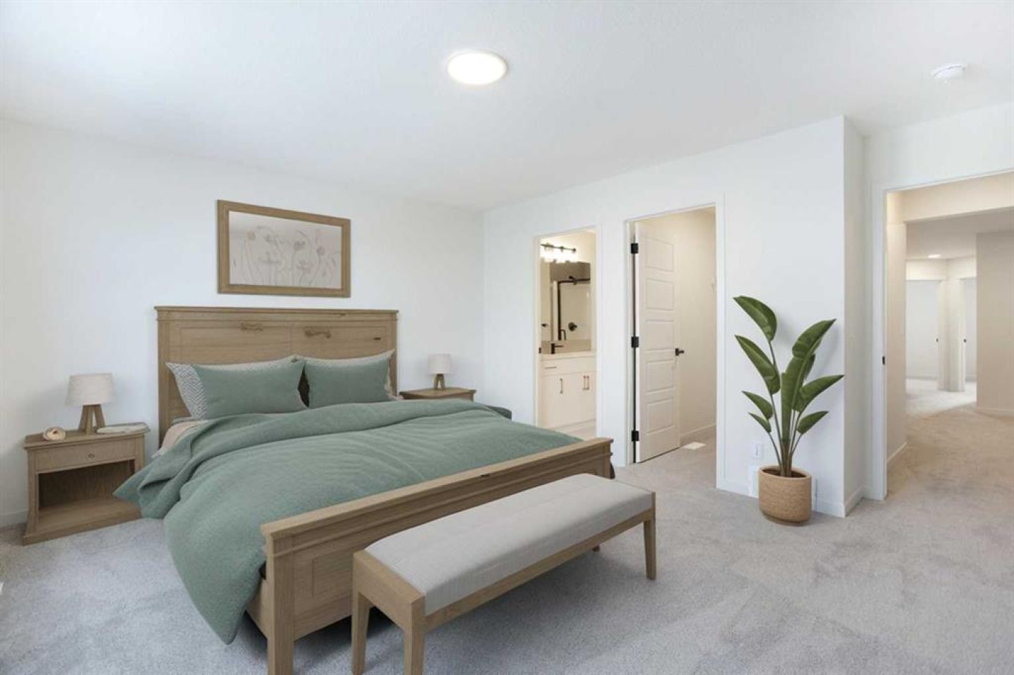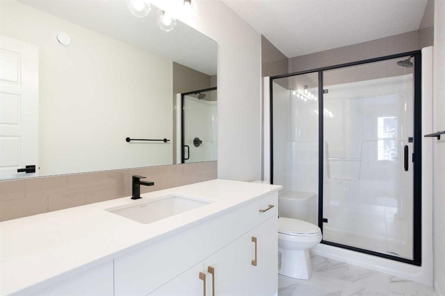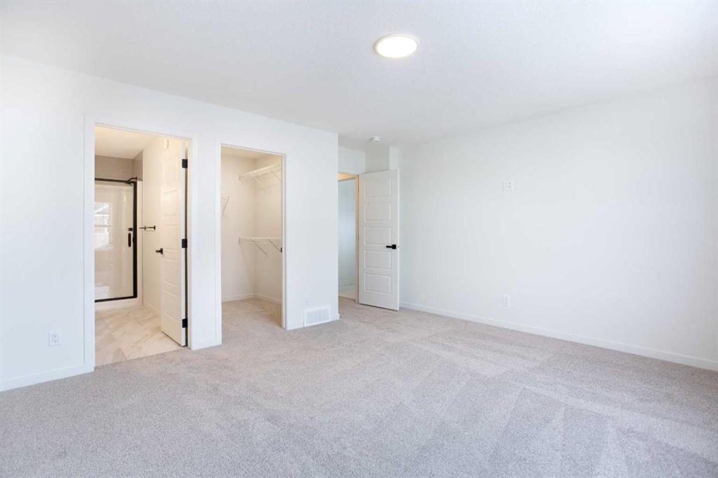 Welcome to this beautifully designed Morrison Homes Shetland I model, a modern and thoughtfully laid-out two-storey semi-attached home located in the highly sought-after community of Sirocco at Pine Creek. Offering over 1,800 sq. ft. of developed living space above grade, this home perfectly combines contemporary style, functional design, and exceptional attention to detail, complete with a front-attached double garage and a smartly planned layout that effortlessly accommodates modern family life while providing ample space for entertaining, daily routines, and long-term living. The main floor showcases a bright, open-concept design anchored by light wood–finish luxury vinyl plank flooring, creating a warm and inviting atmosphere that flows seamlessly from room to room. The kitchen is a true centerpiece, featuring quartz countertops throughout, modern cabinetry, and a full suite of stainless steel appliances, offering both style and practicality for the modern home chef. The generous layout provides plenty of prep space, while the open dining and living areas are anchored by a feature TV wall with an electric fireplace, establishing a striking focal point that blends comfort, function, and modern elegance. A well-designed mudroom with built-in cabinetry and tiled flooring provides a convenient and organized transition from the garage, keeping daily essentials neatly stored and accessible. A stylish powder room on the main floor adds convenience for both family life and entertaining guests. Upstairs, the home continues to impress with three spacious bedrooms, including a private primary suite that offers a walk-in closet and a beautifully appointed ensuite bathroom with tiled flooring and a sleek stand-up glass shower, providing a spa-inspired retreat within the comfort of your home. A centrally located bonus room provides additional versatile living space in the heart of the upper floor, perfect for a family media area, study, or playroom. Two additional bedrooms share a full bathroom, also finished with tiled floors for a cohesive and high-end feel throughout. The top-floor laundry enhances convenience, while soft carpeting throughout the upper level adds warmth and comfort to all bedrooms and living spaces. The unfinished basement is ready for future development, presenting a versatile blank canvas to create additional living space, recreation rooms, extra bedrooms, or a home office, allowing buyers to customize the home to perfectly suit their family’s evolving lifestyle and needs. Situated in a vibrant southwest community with access to parks, walking and cycling pathways, schools, and future amenities, this home blends thoughtful design, high-quality finishes, and long-term flexibility. The Shetland I model at 65 Creekside Passage offers discerning buyers a contemporary, functional, and stylish home that combines immediate comfort with exceptional potential for expansion and personalization, making it an outstanding choice for families seeking quality.