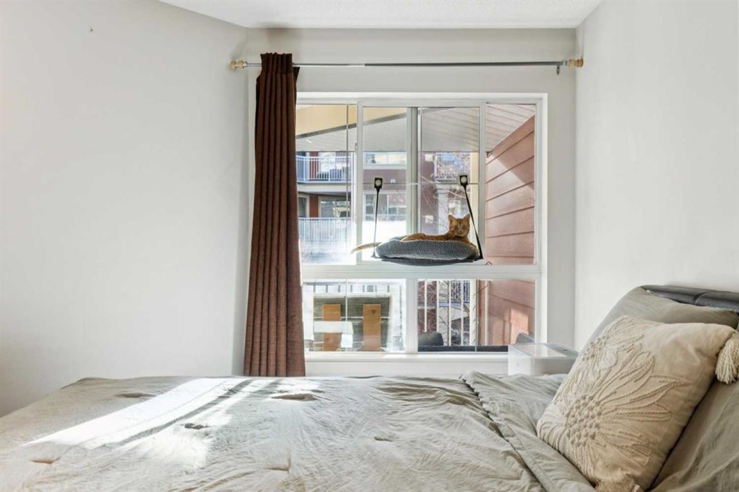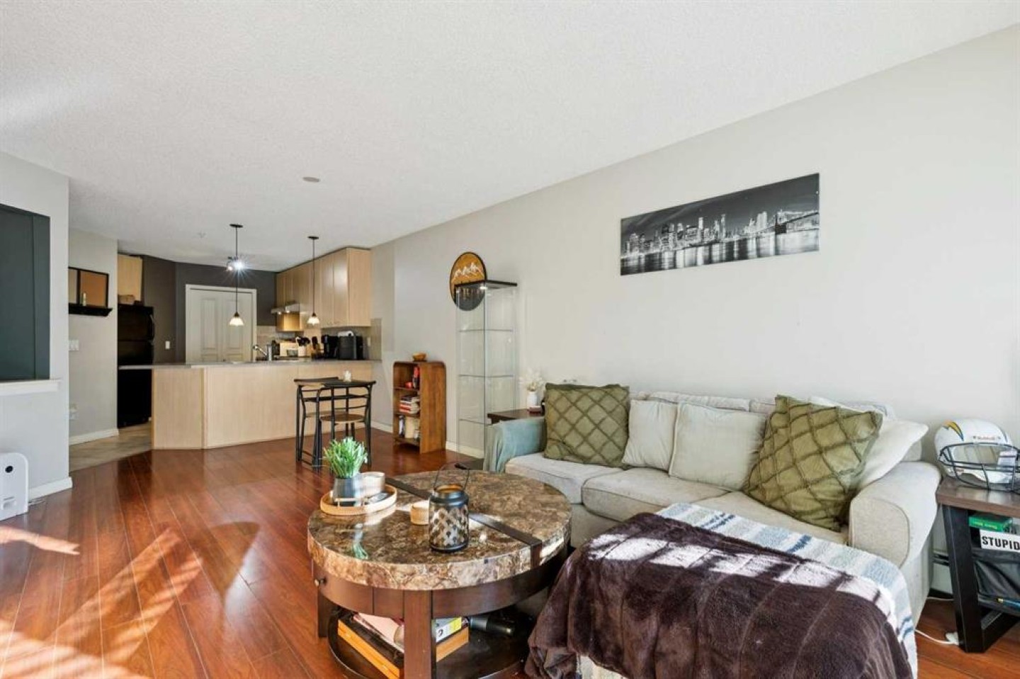 Welcome to this charming 1-bedroom + den condo overlooking a lovely courtyard. Thoughtfully designed, this home features a bright open-concept layout that maximizes functionality. The kitchen flows into the living and dining area, creating an inviting space for everyday living and entertaining. A cozy mantled fireplace anchors the living room, while in-suite laundry adds everyday convenience. The bedroom is generously sized and includes a walk-in closet. The den features a built-in desk, making it ideal for a home office. Step outside onto your balcony, complete with a gas line for a BBQ - perfect for enjoying warm summer evenings. This unit includes a titled, secured underground parking stall and access to excellent building amenities, including a fitness facility, party room, car wash bay, and underground visitor parking. The building offers low-maintenance condo living and is pet-friendly. Located steps from Mount Royal University, this home is a smart choice for students, investors, empty nesters, or first-time buyers. Lincoln Park remains a highly sought-after community thanks to its proximity to transit, parks, playgrounds, and quick access to Glenmore Trail, downtown Calgary, and the area’s shops, pubs, and restaurants. Whether you’re starting out, investing, or looking for a comfortable home where you can relax and live well, this bright and welcoming condo is ready to be called home.