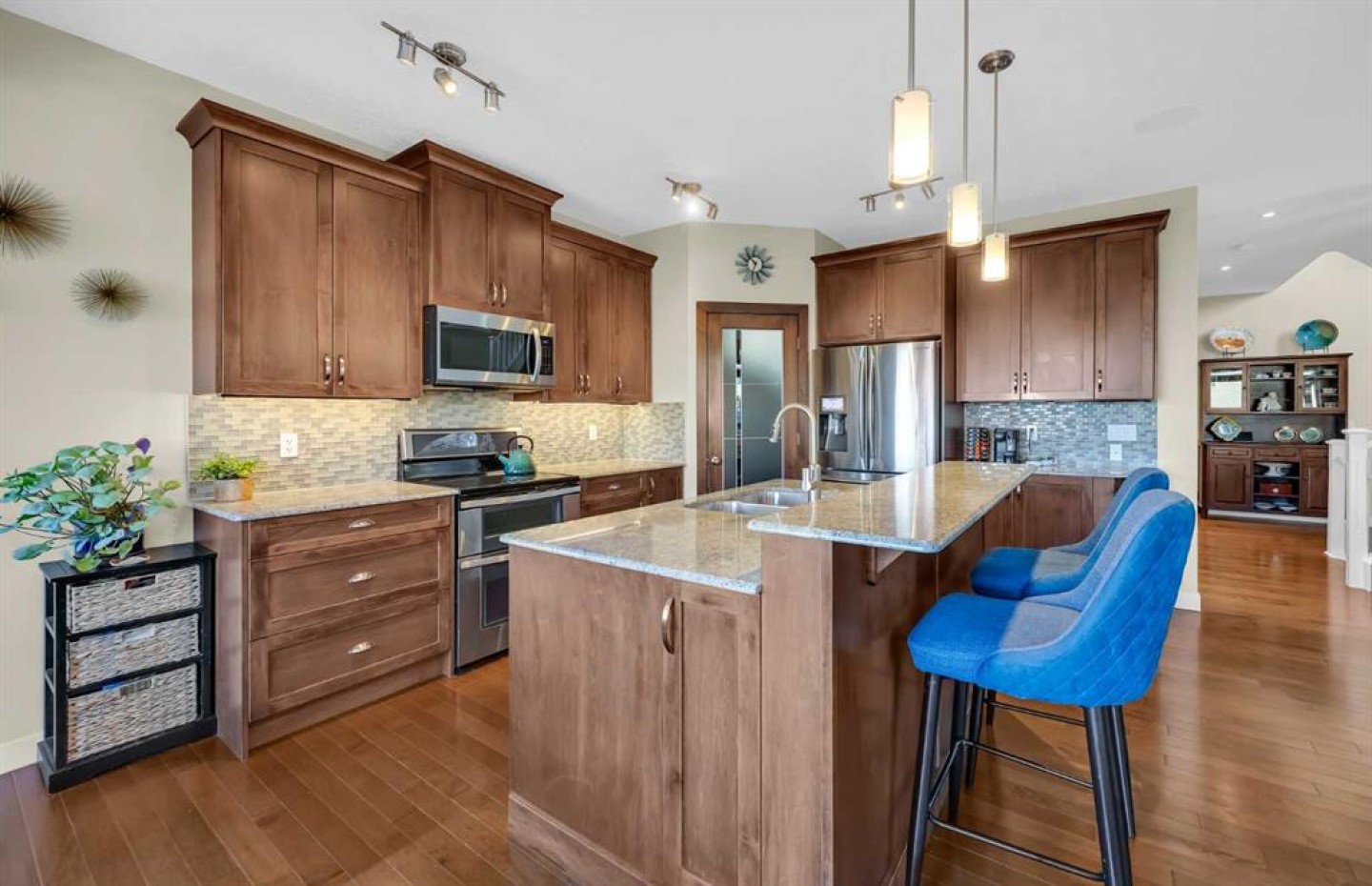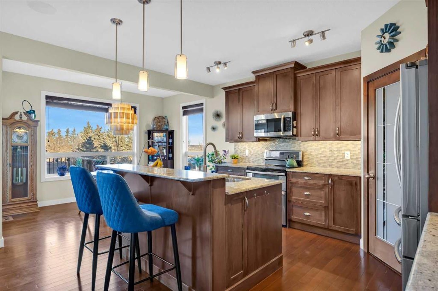 ***OPEN HOUSE THIS SUNDAY, JANUARY 18TH - 12-3PM*** This stunning family home is tucked away on a quiet cul-de-sac in SW Calgary, just steps from the slopes and trails of Winsport (C.O.P.). With a bright northwest exposure, the home enjoys beautiful views of the Bow River Valley and surrounding prairies. Situated on a 6,200 sq. ft. pie-shaped lot, the property offers a spacious and private backyard complete with a greenhouse featuring raised garden beds, as well as a hot tub perfectly positioned to take in the scenic views. Offering a total living area of 3,396 sq. ft., the main floor showcases a bright, open-concept layout with 9’ ceilings, maple hardwood flooring, granite countertops in the kitchen and bathrooms, a cozy fireplace feature, central air conditioning, and built-in speakers. The kitchen is designed for both everyday living and entertaining, featuring a large centre island with breakfast bar, stainless steel appliances, and a convenient walk-through pantry. Upstairs, you’ll find three generously sized bedrooms, each with a walk-in closet, along with a versatile bonus room. The primary retreat offers northwest exposure and tranquil views overlooking the gardens and open prairies. The professionally finished lower level expands the living space with a large recreation room, fitness area, fourth bedroom, and full bathroom-ideal for guests or growing families. Additional highlights include a heated garage and solar panels (6.48 kWp) installed in September 2024, providing energy efficiency and reduced utility costs. This exceptional home seamlessly blends comfort, luxury, and thoughtful upgrades, with a strong connection to the outdoors.