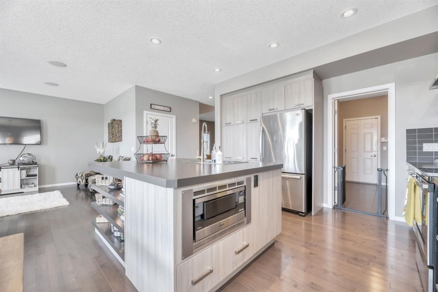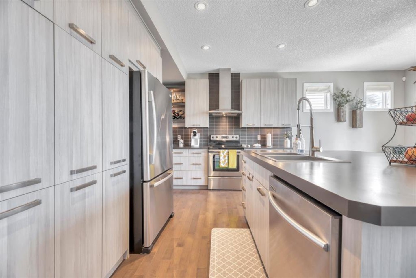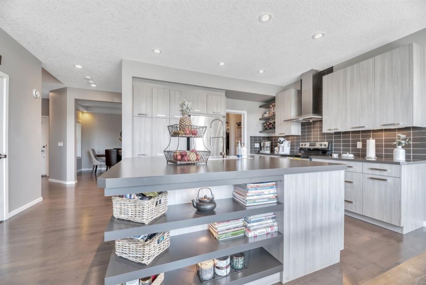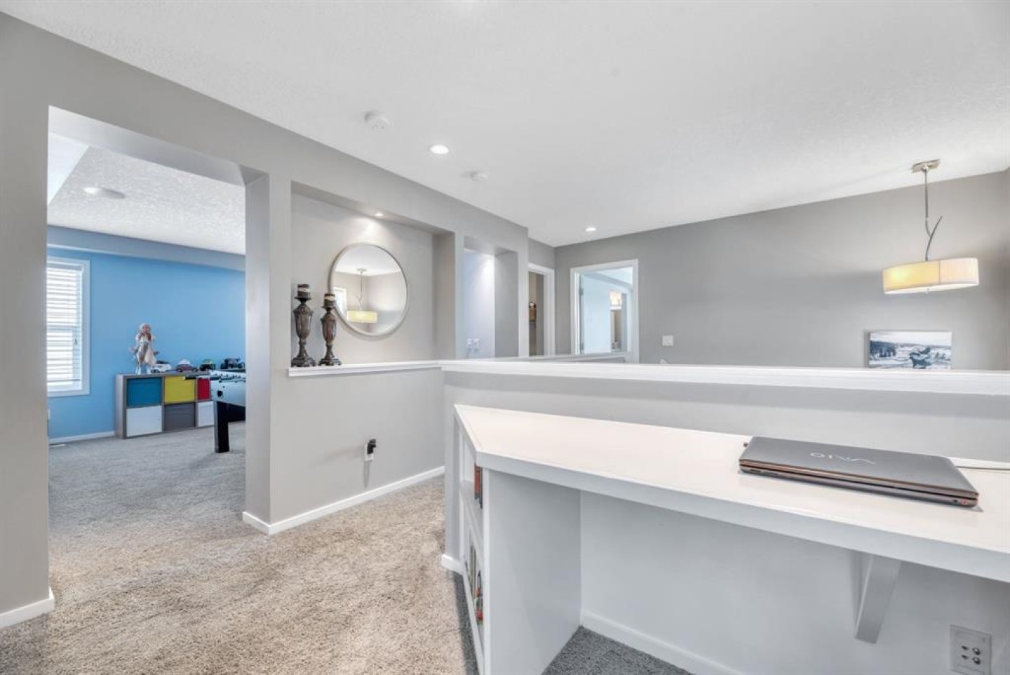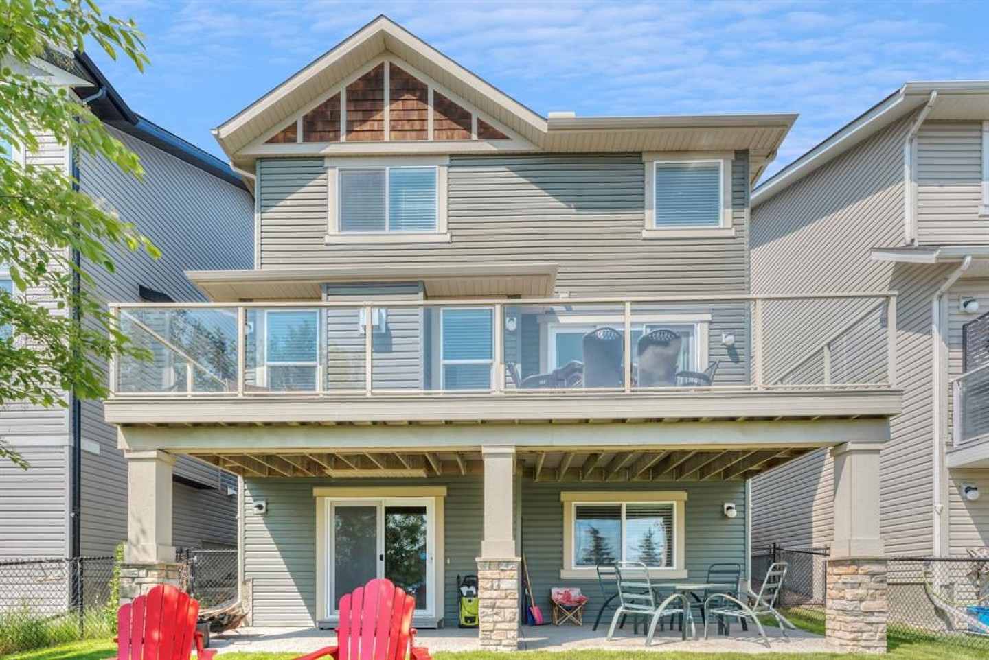 Welcome to a stunning WALKOUT and FORMER SHOWHOME BACKING ONTO the Blue Devil Golf Course that can be enjoyed from the FULL DECK spanning the entire width of the home along with the eating area, great room, the walkout level with CONCRETE PATIO, and the peaceful primary bedroom. The home is over 2200 sq. ft. and features a front flex room, large enough to have a dining table or make a great office with elegant COFFERED ceilings. Gleaming maple HARDWOOD floors, POTLIGHTS galore, and a big, bright MODERN KITCHEN featuring an island for prep with lighted accent shelving and a pantry wall - loads of cabinetry! The spacious primary features a tray ceiling, comfort height vanity with dual sinks, a corner soaker tub and separate shower. The generous walk in closet is conveniently attached to the UPSTAIRS LAUNDRY room. Separating the primary from the two additional bedrooms and secondary full bath is a CENTRAL BONUS ROOM with 2 openings and a niche wall in the hallway. Very cool for a media or play room! Additionally, there is a BUILT IN TECH CENTRE/DESK - so many places for activities! This home comes complete with stainless steel kitchen appliances and front load washer and dryer, BUILT IN SPEAKERS with locations throughout the home, knockdown ceiling texture plus a gorgeous full height tiled FIREPLACE with floating hearth as well as CENTRAL AIR Conditioning and CENTRAL VAC SYSTEM. Appreciate the BRAND NEW WALKOUT basement with 4 pc bath, rec room and sizable bedroom to finish this awesome home! Check out this LOCATION - With Fish Creek Park’s trails and pathways, Lake Sikome, schools, and shopping nearby, this is an unbeatable lifestyle in one of Calgary’s most sought-after communities. This gorgeous, well kept home must be seen!