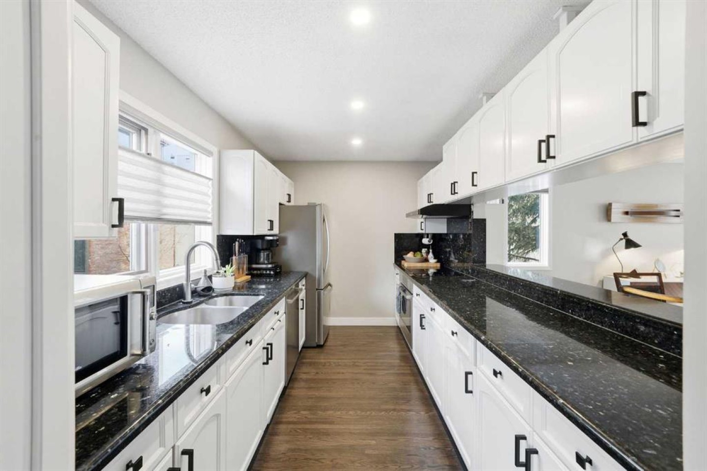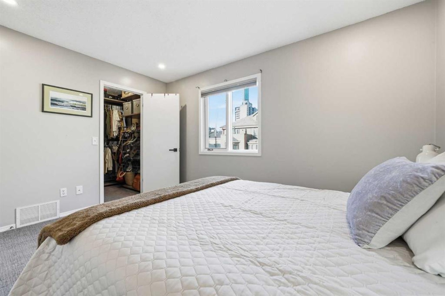 RARE INNER-CITY VALUE, CHARACTER AND AFFORDABILITY. This bright and spacious END UNIT TOWNHOME offers a quiet and comfortable inner-city setting in the heart of the BELTLINE. Thoughtfully laid out and exceptionally WELL CARED FOR, the home blends warmth, functionality, and livability throughout. The main level features natural HARDWOOD FLOORS and a WOOD-BURNING FIREPLACE and plenty of windows allowing natural light to shine into the main living space. Passing through, you’ll enter your dining area ideal for hosting groups of all sizes. The kitchen is both stylish and practical, complete with MATCHING STAINLESS STEEL APPLIANCES, GRANITE COUNTERTOPS, and ample cabinetry. A POWDER ROOM adds to everyday convenience while maintaining a clean, cohesive flow. Upstairs, two generously sized bedrooms are complemented by a RECENTLY RENOVATED ENSUITE BATHROOM blending style, space, and elegance. The upstairs closet has been transformed into an impressive and highly functional LAUNDRY ROOM, right next to the two main bedrooms. HIGH-END GRABER BLINDS ARE IN PLACE THROUGHOUT the home providing enhanced comfort, privacy, and visual appeal. The lower level offers a flexible bonus space ideal for a HOME OFFICE, GYM, OR 3RD BEDROOM. You will love your OVERSIZED SINGLE ATTACHED GARAGE, complete with a built-in storage system and lounge area. This home also features central AIR CONDITIONING for year-round enjoyment. It truly has it all. Owned by the same owners since 2004, this home has been EXCEPTIONALLY WELL-MAINTAINED AND CONSISTENTLY UPDATED TO MODERN STANDARDS, all while preserving the CHARACTER AND CHARM of the home. Enjoy a PRIVATE FRONT PATIO, beautifully landscaped courtyards, and a walkable lifestyle just steps from parks, off-leash areas, transit, and the shops and restaurants of 17TH AVENUE, with downtown only minutes away. This gorgeous INNER-CITY TOWNHOME offers a strong sense of community and LONG-TERM VALUE. Located within BARCLAY ESTATES, this is a highly sought-after complex. Well-managed and with a fresh reserve fund study (2025) and several large exterior renovations recently completed. With just 28 UNITS, homes rarely become available (1–2 per year) and tend to SELL QUICKLY (often in less than two weeks). OPEN HOUSE this Saturday, or BOOK your private showing ASAP.