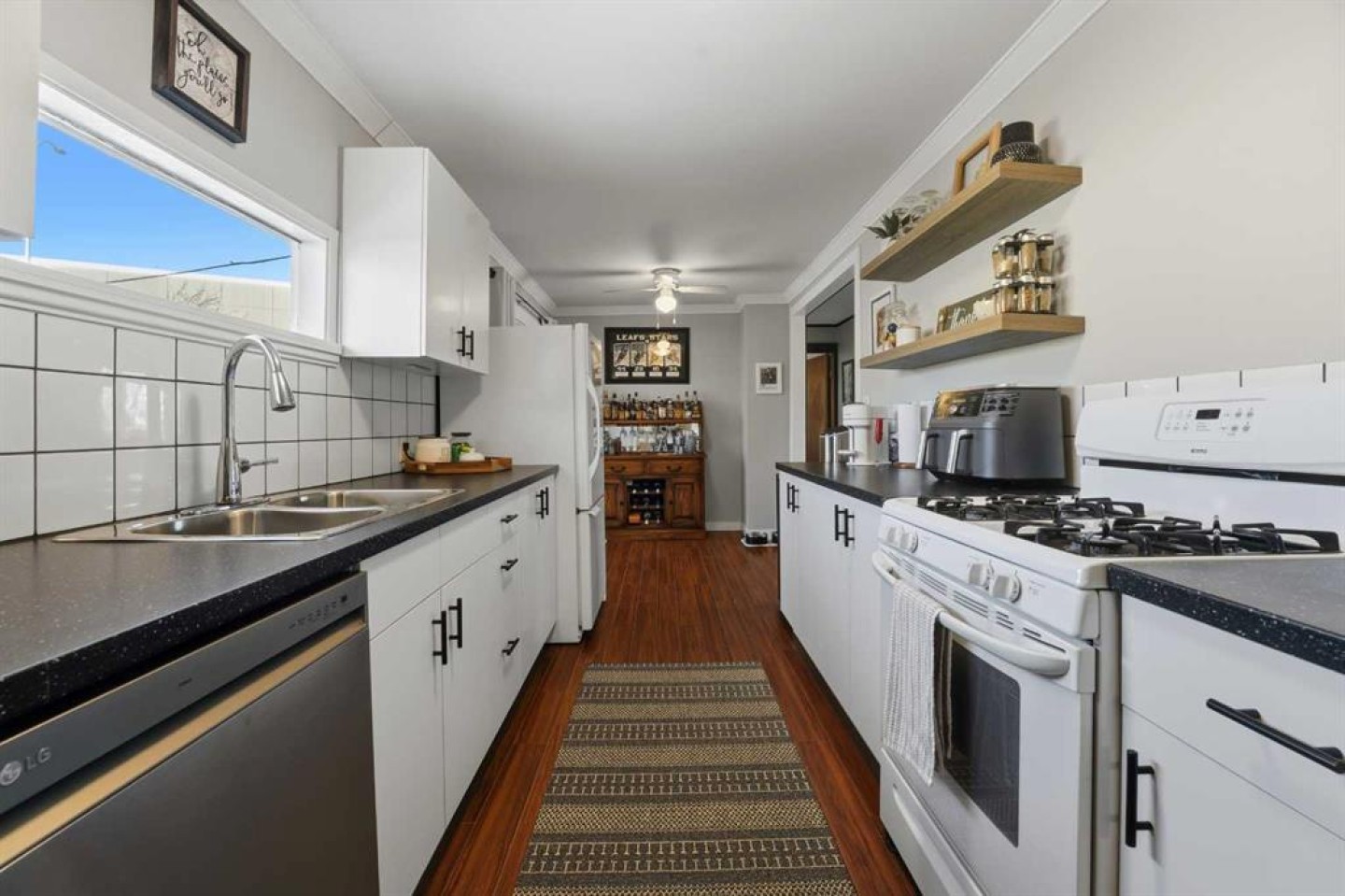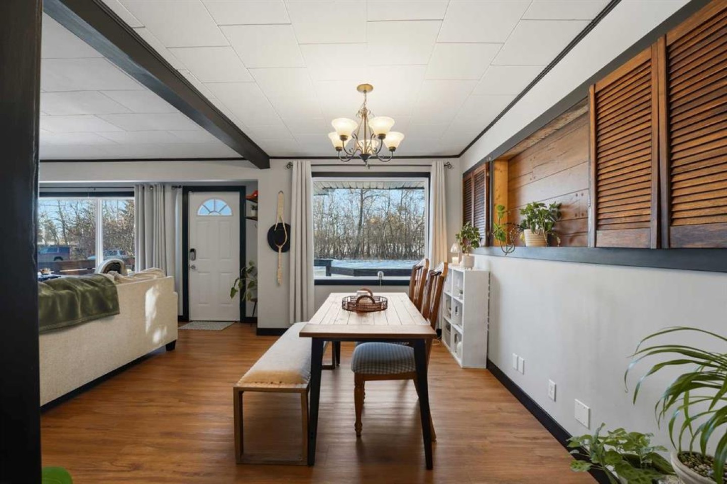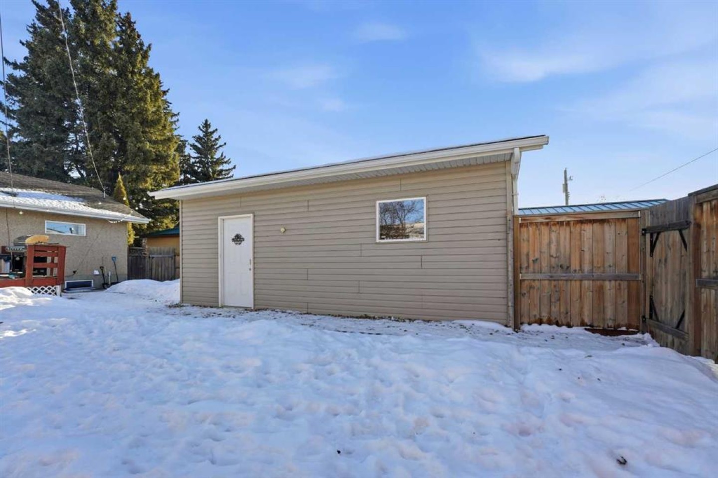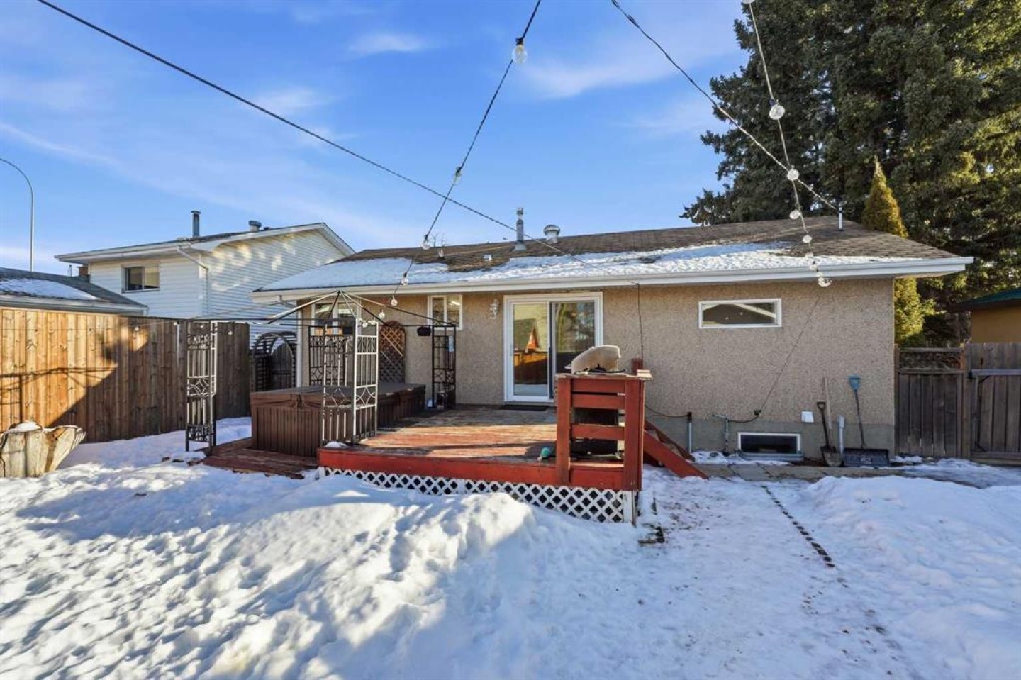 WELCOME TO 5120 WESTWOOD DRIVE! A CHARMING BLACKFALDS BUNGALOW ON A DOUBLE LOT, WITH A HEATED GARAGE & HOT TUB INCLUDED! Whether you’re stepping into homeownership for the first time, simplifying your lifestyle, or adding a solid property to your investment portfolio, this one checks all the boxes. The bright front entry opens into a sunny open-concept living and dining space, where large southeast-facing windows flood the home with natural light. Stylish vinyl plank flooring runs throughout, making everyday living (and cleaning!) a breeze. The galley kitchen offers plenty of cabinet and counter space, a modern tile backsplash, a window over the sink, and sliding patio doors that lead straight to the backyard, perfect for summer BBQs or evening hot-tub soaks. Upstairs, you’ll find two bedrooms and a full 4-piece bathroom, including a spacious primary bedroom with dual closets. A convenient side entrance off the kitchen leads to the fully developed basement, offering great space for a cozy family room, home office, or teenage hangout, plus laundry and utility area. Outside is where this home really shines. Enjoy your morning coffee on the front deck with built-in seating, or unwind in the private, fully fenced backyard complete with a hot tub and outdoor speakers — your own little oasis. Parking is a dream here with a 16’ x 24’ heated garage (220V power), plus RV parking and back-alley access. All of this sits on a fully landscaped lot in a convenient location close to the arena, library, parks, and schools — making it as practical as it is appealing. Recent updates include: • High-efficiency hot water tank (2022) • Furnace (2020) • Vinyl windows in living & dining room (2022) • Primary bedroom window & patio door (2019) ?? A move-in-ready home with lifestyle perks, strong value, and investment potential — this one is easy to love.