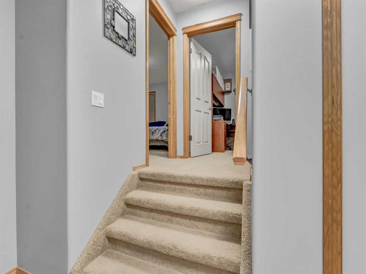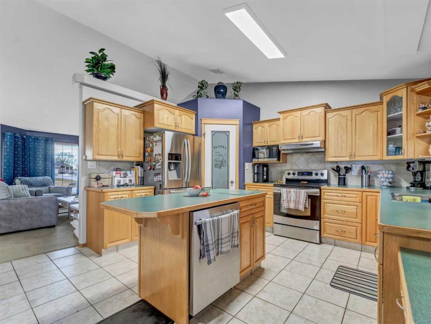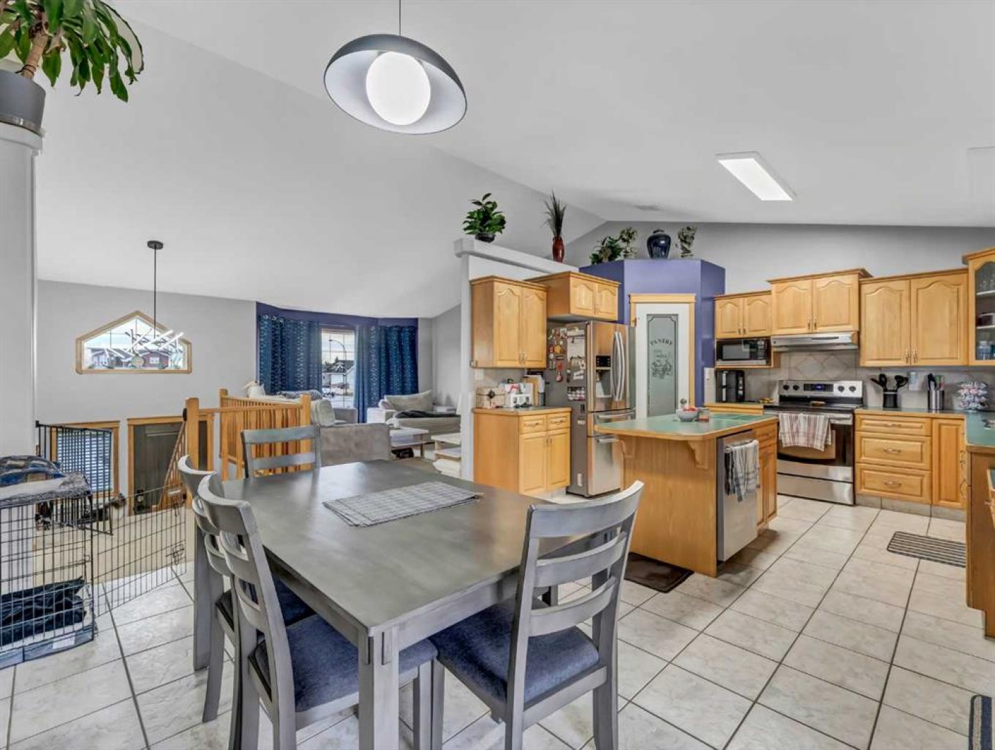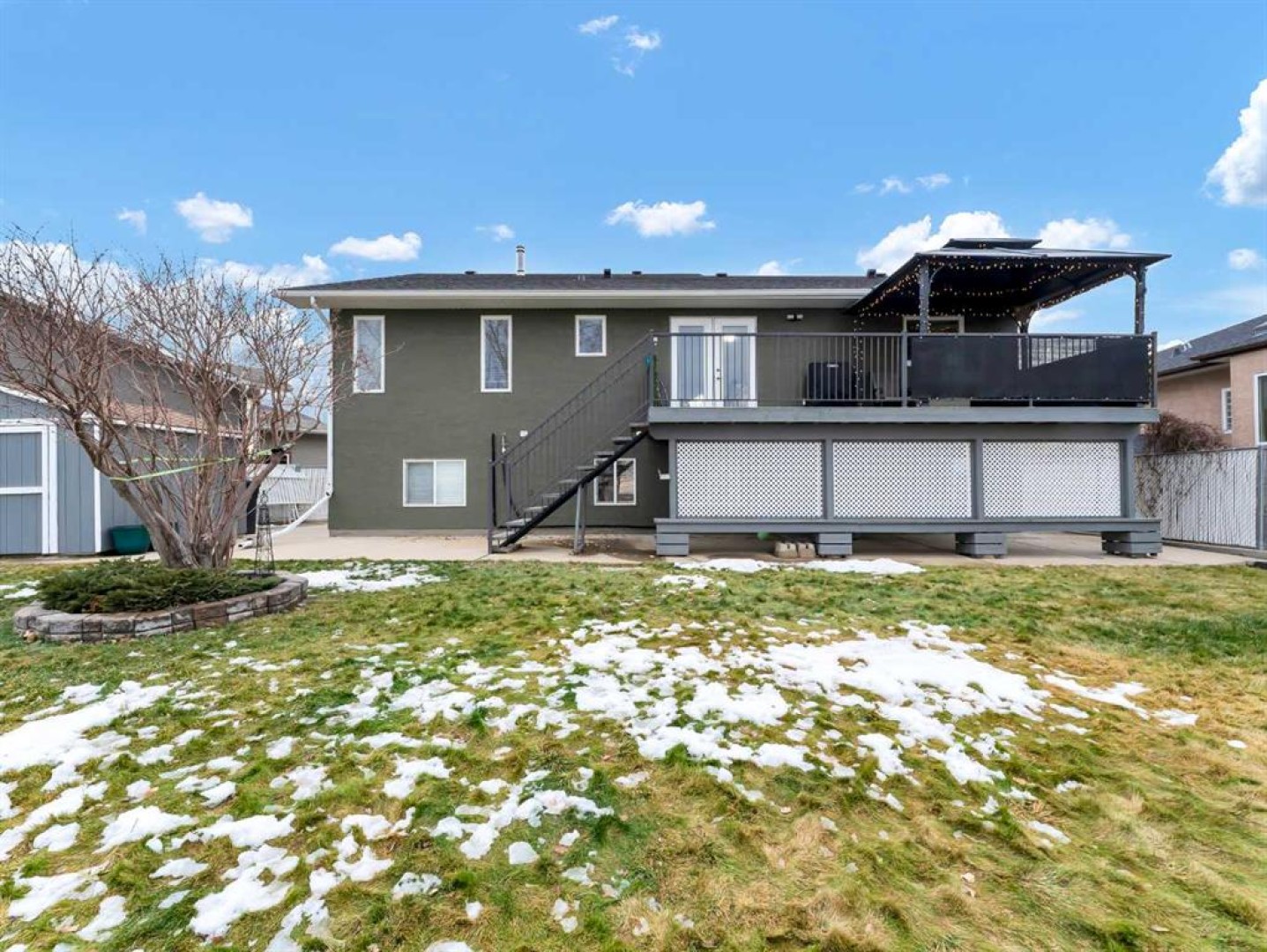 Welcome to the best neighbourhood in Redcliff! This fully developed 1,436 sq ft bi-level home is perfectly positioned on an oversized pie-shaped lot, with a beautiful green space out front and the golf course stretching out behind you. It truly feels like your own quiet oasis, with no busy streets in sight and nature surrounding you on both sides. Step inside to a bright, spacious kitchen that overlooks the backyard and golf course, so you can enjoy the view while you cook or entertain. The kitchen features a walk-in pantry, a central island, and a full package of newer stainless steel appliances. The large dining room flows seamlessly out to the deck and concrete patio, creating an ideal indoor-outdoor space for gatherings, barbecues, or simply relaxing and taking in the view. You will love the generous main floor laundry room, which offers plenty of extra storage and keeps everything organized and out of sight. The primary bedroom is a true retreat, with a great walk-in closet and private ensuite. It is set a few steps away from the additional two main floor bedrooms, giving you a little extra separation and privacy. The lower level is flooded with natural light from the huge windows and offers a welcoming family and games room complete with a cozy fireplace. There is also a dedicated office with glass doors, a fourth bedroom, and direct access to the attached garage. The finished double attached garage, along with an extended driveway, provides ample parking for guests or room for a recreational vehicle. Outside, the newly updated, low-maintenance exterior means you can spend more time enjoying your surroundings and less time on upkeep. Additional features include a large shed, a newer high-efficiency furnace, underground sprinklers, newer shingles, and a well cared for interior.