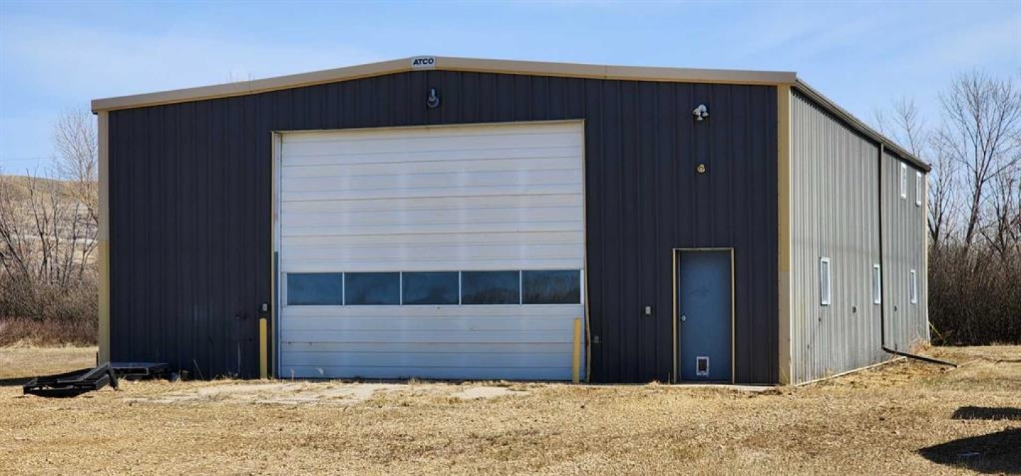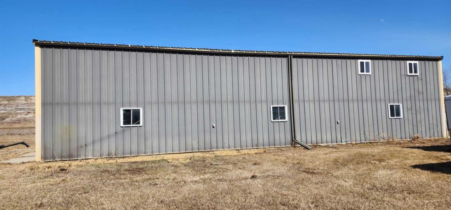Industrial Warehouse on Drumheller's prime land backing onto the famous hoodoos and Red Deer River. Building is 40 x 70 ft = 2800 sq ft. Lot Size: 8.790 Acres, Zoned Countryside District (CSD) allowing low density residential development and commercial uses in rural areas (See Drumheller Land Use Bylaws 3.8 for more information).