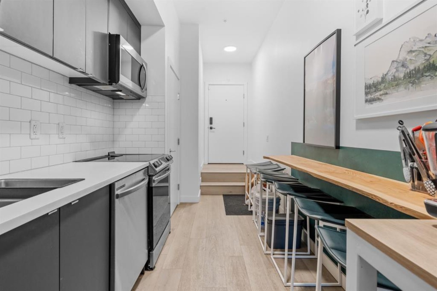 Take advantage of this 999 sq. ft. main-floor retail space in Montgomery Square, a vibrant mixed-use development located at Bowness Road NW and 16 Avenue NW. Designed by Amanda Hamilton, this unit is fully built-out and offers a turnkey retail opportunity. Existing retail fixtures valued at over $100,000 provide a rare chance to step in and begin operations immediately—without the added cost of a full build-out. The space features a welcoming front entrance, excellent storefront visibility with backlit channel signage, one bathroom, a closet, a fully enclosed room, and a kitchen equipped with a microwave, stove, and dishwasher. A washer and dryer are also included. Parking options include ample street parking, as well as one underground stall available under a separate lease for $100 per month. The neighbouring unit is also available for lease (1,200 sq. ft.), and the common wall can be removed to combine both spaces for a total of 2,199 sq. ft. Montgomery Square is part of a growing, pedestrian-friendly community envisioned under the Montgomery Area Redevelopment Plan. The location offers excellent visibility, easy access, and a lively streetscape that attracts both residents and visitors—making it an ideal location to grow your business.