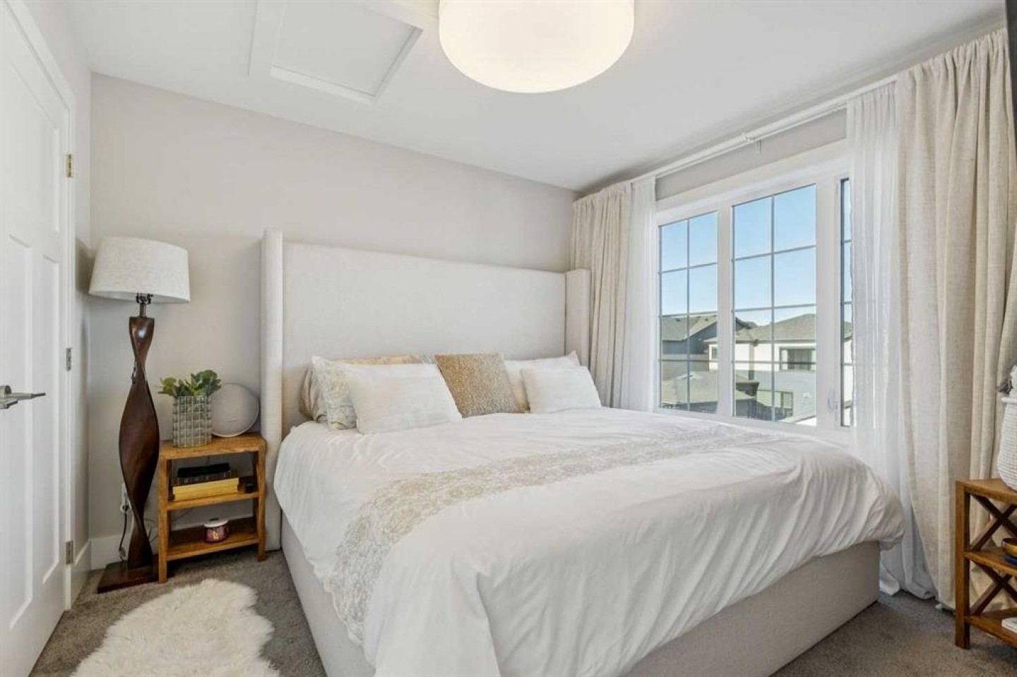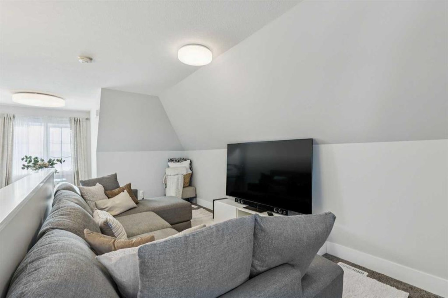 Welcome to this beautifully designed former showhome by Dream in the sought after new community of Alpine Park. This detached two storey home with a third level loft features a smart, functional layout that prioritizes purposeful spaces over wide open floor plans, reflecting one of the leading design trends for 2026. The main floor features distinct yet connected living and dining areas that integrate seamlessly with outdoor spaces. Windows at both the front and back of the home allow natural light to flow throughout the day. The living and dining rooms sit on the west side of the home, anchored by a cozy gas fireplace. Sliding patio doors on both sides of the space create easy indoor and outdoor living and allow for flexible furniture arrangements. The kitchen is spacious and well designed, perfect for the home chef. A moody blue colour palette paired with crisp white cabinetry creates striking contrast against the rich hardwood floors. Features include upgraded stainless steel appliances, open shelving, a large island, and a corner walk through pantry. Just off the kitchen is a bright front flex room, ideal for a home office or playroom. A large south facing bay window fills the space with natural light and offers views of the private park across the street. A discreet powder room and rear mudroom lead to the full width back deck, yard, and oversized garage. The second level offers three generous bedrooms, including a primary retreat that impresses with a vaulted ceiling and sun filled atmosphere. The large walk in closet leads to a spa inspired ensuite featuring dual sinks, a standalone tub, and a full walk in shower. Two additional bedrooms, a four piece bathroom, and a conveniently located laundry room complete this level. The third level loft is a valuable upgrade from the standard plan and adds exceptional flexibility and square footage. This space is ideal for a media room, play area, study space, or teen retreat, with views to the north toward downtown and to the south toward the mountains. This home is ideal for buyers seeking flexible living spaces, a low maintenance exterior with no shovelling, seamless indoor and outdoor flow, and elevated finishes throughout. Alpine Park offers the perfect balance of city and nature, located approximately 15 minutes from downtown Calgary and 30 minutes from the Rocky Mountains. Designed to bring people together, the community features parks, pathways, and convenient access to everyday amenities just minutes away. The small monthly condo fee of $102 includes the HOA fee for Alpine Park as well a snow removal and upkeep of greenspace's' /common areas.