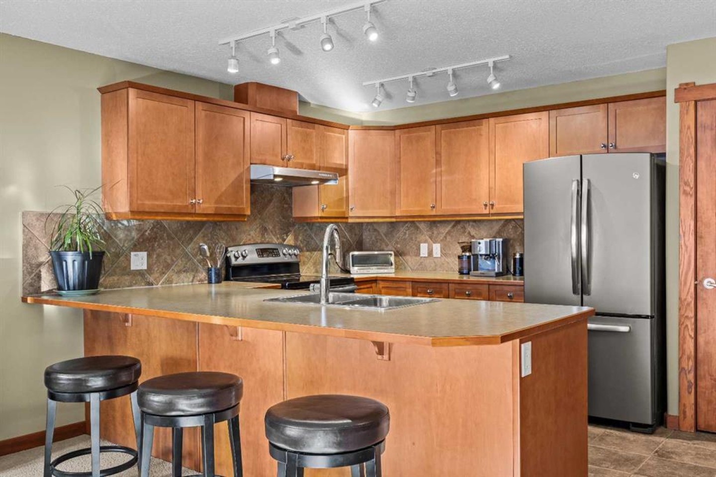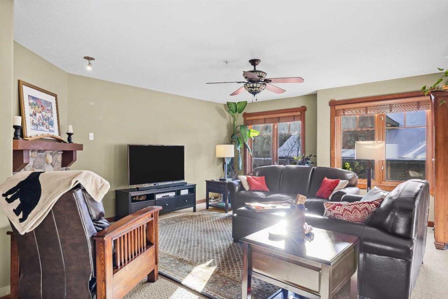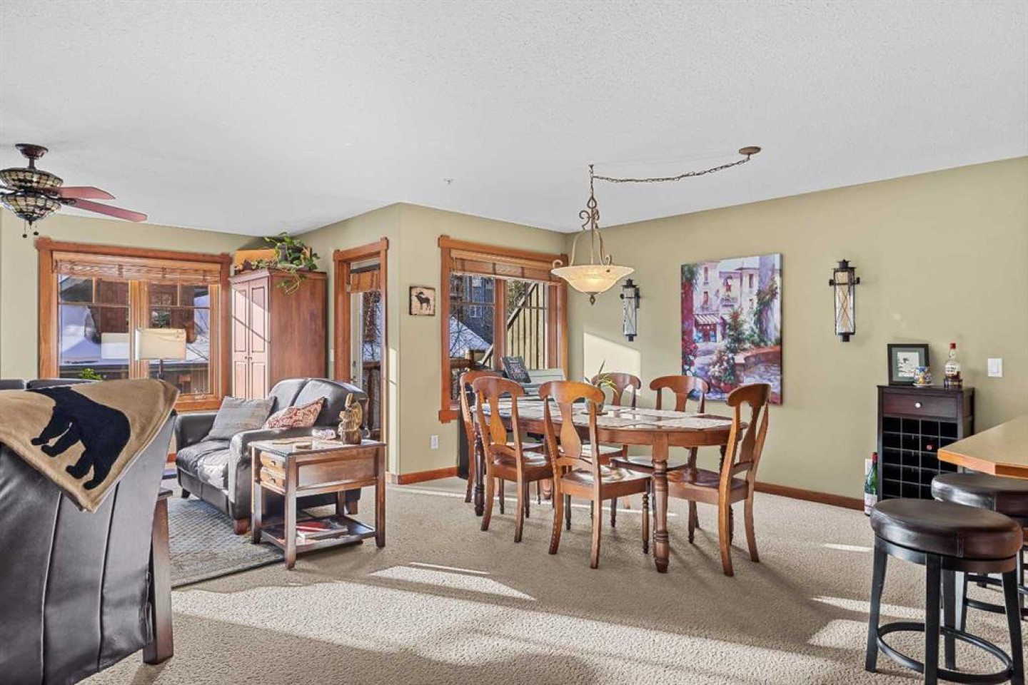 This is the sunny home with mountain views you’ve been waiting for! Located on the quiet south side of the building and spanning the top two floors, this fabulous 2 bedroom, 2 bathroom condo enjoys plentiful sunshine year-round with enviable Three Sisters Mountain views. The spacious open-plan living level is flooded with light from all the south facing windows, yet offers privacy from mature trees, and comprises a very spacious kitchen with eating bar, huge living room with gas fireplace, and a generous dining area that will encourage you to invite guests! Step out onto the sunny deck to enjoy your morning coffee with Three Sisters Mountain views, or take a walk by the Bow River along nearby trails. After a fun day in the mountains, the adjacent amenities building offers abundant relaxation opportunities and entertainment for your family and guests, including indoor and outdoor hot tubs, well equipped gym, a sauna, pool tables, lounge area with large screen TV, and ping-pong table. Easy access to endless trails, and the convenience of the newly developed Gateway retail park just down the road. The free Roam bus stops right outside the complex for added convenience. This beautifully presented home offers the rare combination of a quiet location, abundant sunshine, mountain views, convenient amenities and easy access to local facilities. Don’t hesitate – book your viewing today! One heated underground parking space (plus visitor parking) with adjacent spacious (9’x5’) storage. Please note that short-term rentals are not permitted at this property. There are no age restrictions in this building.