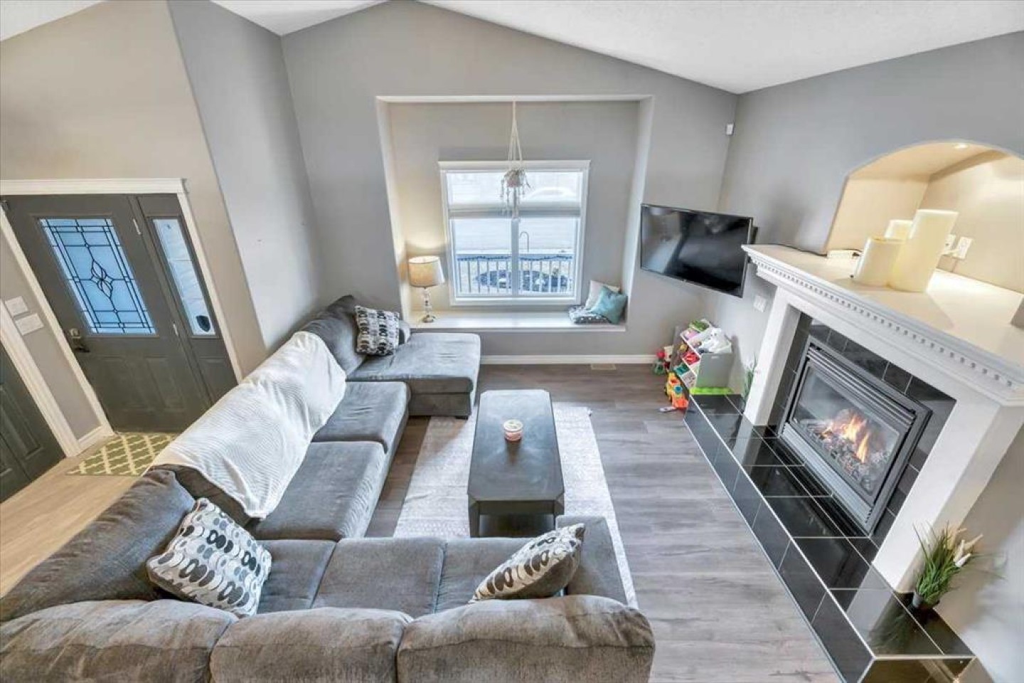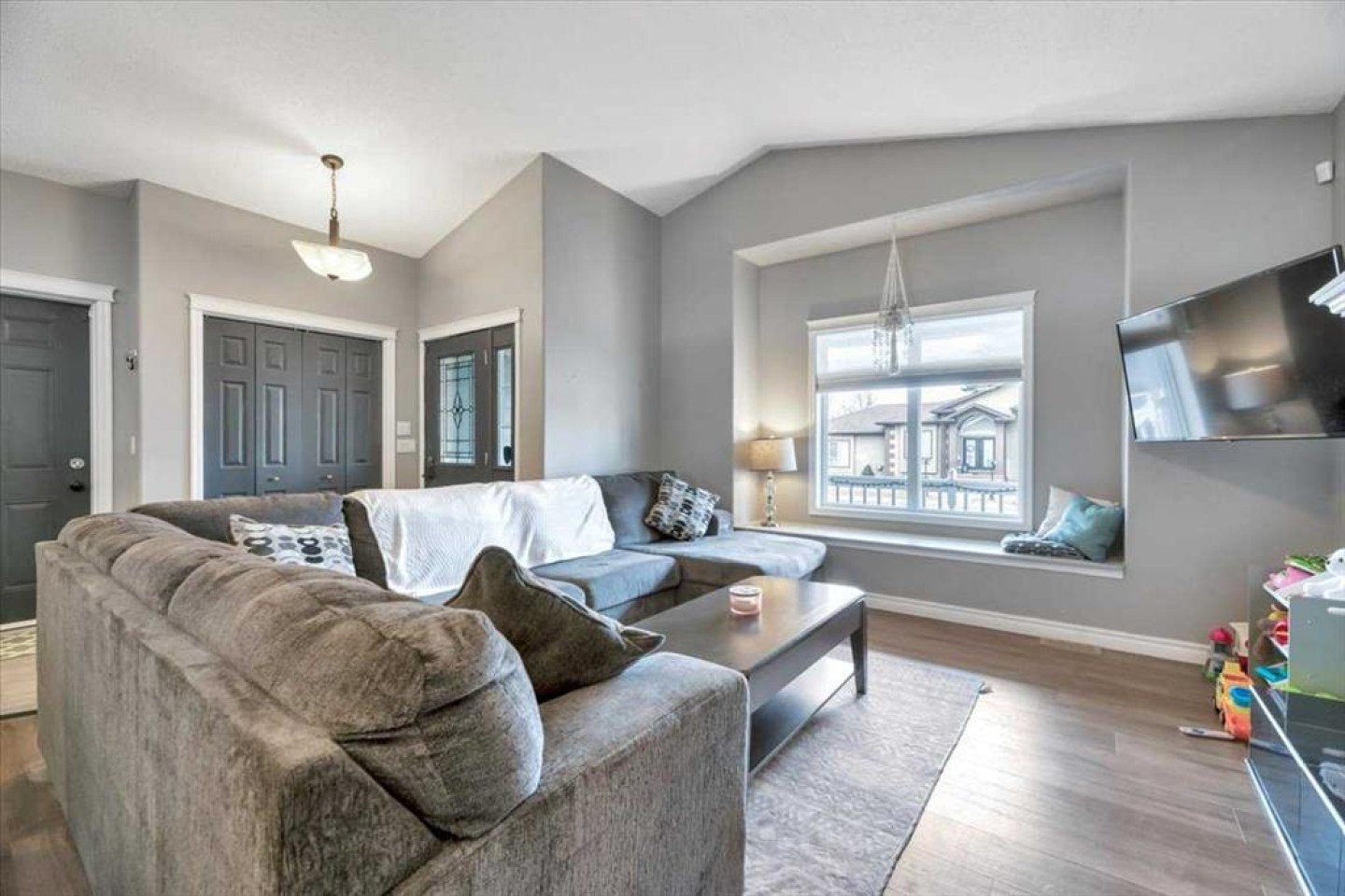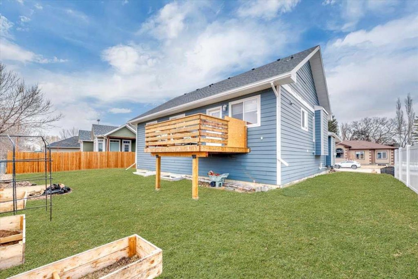Set against peaceful green space in the welcoming community of Vulcan, this fully updated detached home delivers the perfect blend of modern comfort and small-town charm. With uninterrupted views and a quiet countryside backdrop, this is the kind of location that instantly feels like home. Step inside to soaring vaulted ceilings and a bright, open layout designed for both everyday living and entertaining. The inviting living room is anchored by a gas fireplace, creating a warm and cozy space to unwind after a long day. Just off the living area, the chef-inspired kitchen impresses with a large quartz-topped island, stainless steel appliances, a striking anthracite sink, and an abundance of cabinetry and counter space. The adjacent dining area easily accommodates family dinners and gatherings of any size. The main level also features an updated laundry area, three spacious bedrooms, and beautifully renovated bathrooms, making this home as functional as it is stylish. Major updates have already been taken care of, including a new dishwasher, washer, and dryer (2023), plus a new furnace and hot water tank, offering peace of mind for years to come. Outside, the durable Hardie Board exterior is built to handle Alberta’s climate, while the massive basement with impressive 12-foot ceilings presents endless possibilities — whether you envision a home gym, additional bedrooms, a media room, or a fully customized family space. With thoughtful upgrades throughout, a tranquil setting, and outstanding value, this move-in-ready home is an exceptional opportunity you won’t want to miss.