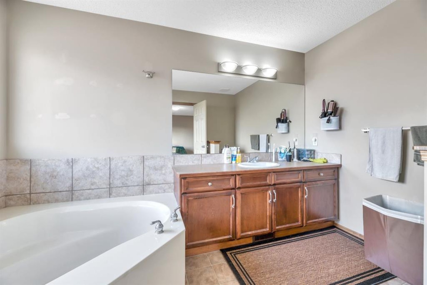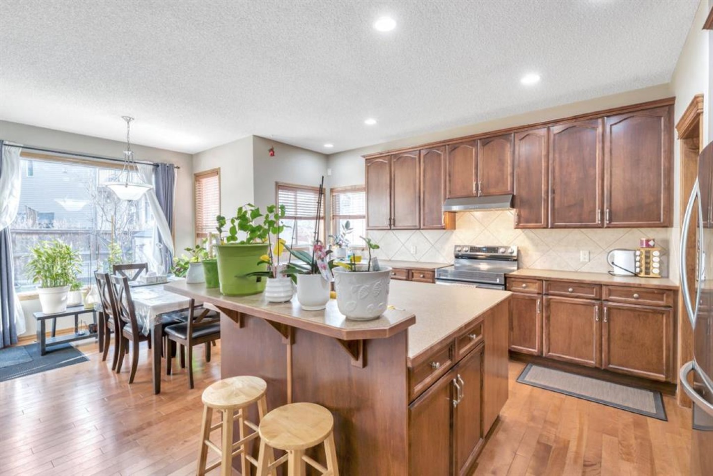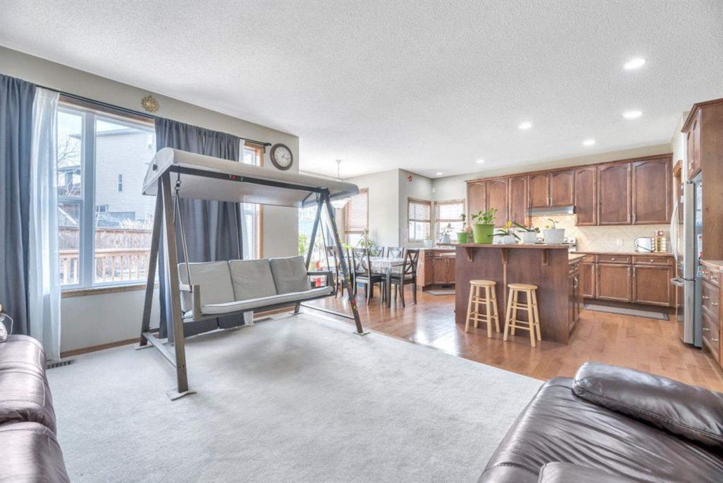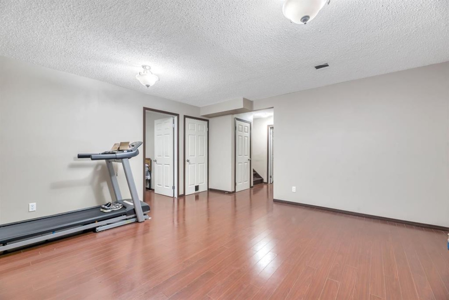 Amazing floorplan in this thoughtfully designed living space. This fully developed home offers just over 3200 sq. ft. of total living area, 5 bedrooms, and 3.5 bathrooms—ideal for growing families or those who love to entertain. Notable features include hardwood flooring, air conditioning, a cozy gas fireplace, and a vaulted bonus room that adds both space and architectural interest. Recent updates include new Class 4 shingles, gutters as well as partial siding completed in 2025. The main floor is functional and inviting, featuring a roomy foyer, a front home office/den, 2-piece powder room, main-floor laundry at the back entrance, and a spacious living room centered around the gas fireplace. The kitchen is well-appointed with an endless amount of cabinetry and counter space, central island, walk-through pantry, and a bright nook with access to the deck and backyard—perfect for everyday living and entertaining. Upstairs, you’ll find three generously sized bedrooms, a 4-piece bathroom, and a vaulted bonus room ideal for family movie nights or a kids’ retreat. The double door entry primary bedroom is complete with a walk-in closet and a full ensuite with corner soaking tub, glass enclosed shower and a sizable vanity. The fully developed lower level adds excellent flexibility with two additional bedrooms, a 3-piece bathroom, a comfortable family room, plus a lot more available storage. The front and back yard have great spaces for gardening and the front attached garage plus longer driveway has window for natural light as well as extra storage racks. Ideally located close to schools, parks, green spaces, shopping, transit, community centres, the library, theatres, and Vivo Place, this home offers exceptional convenience and lifestyle appeal.