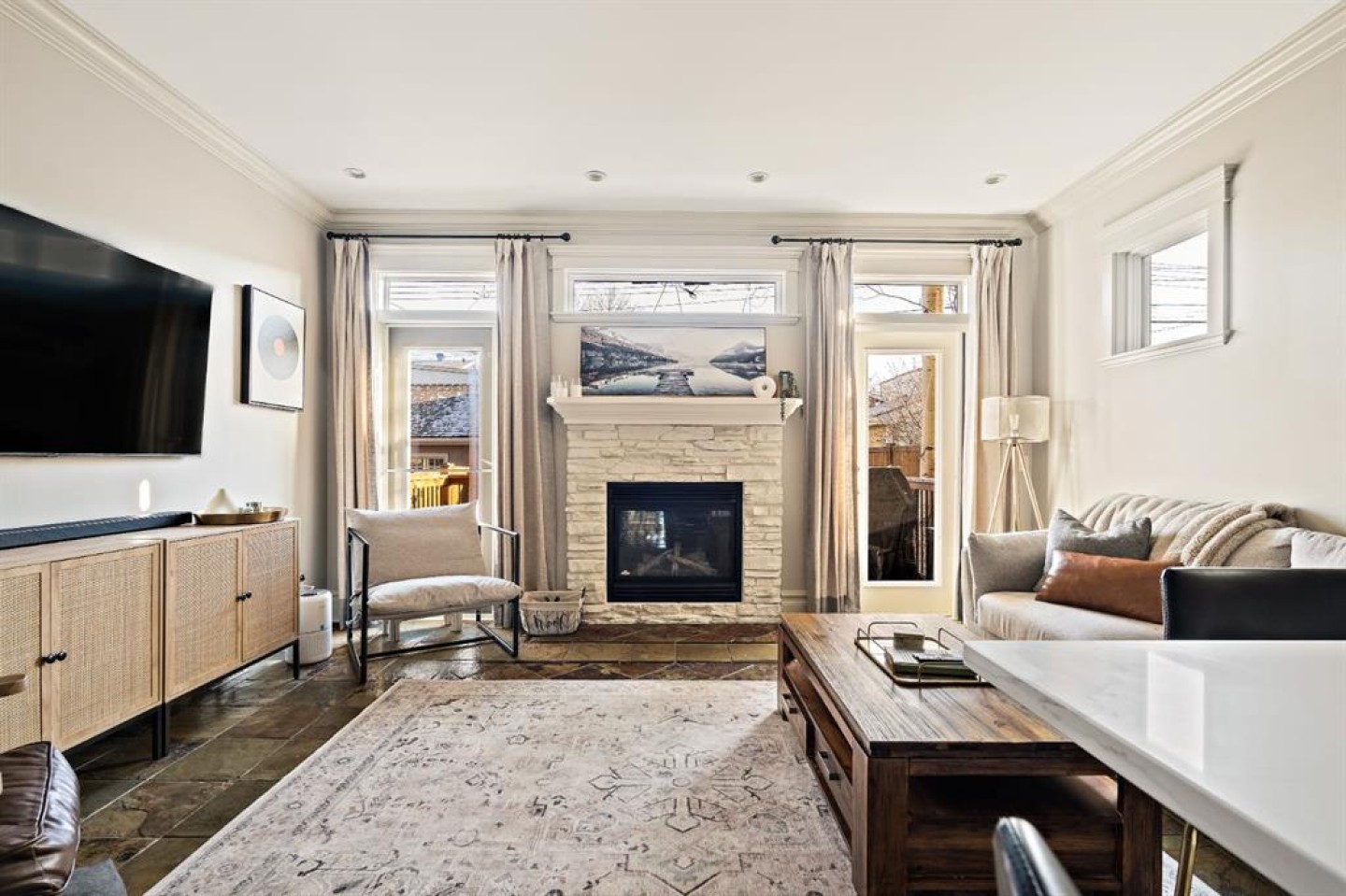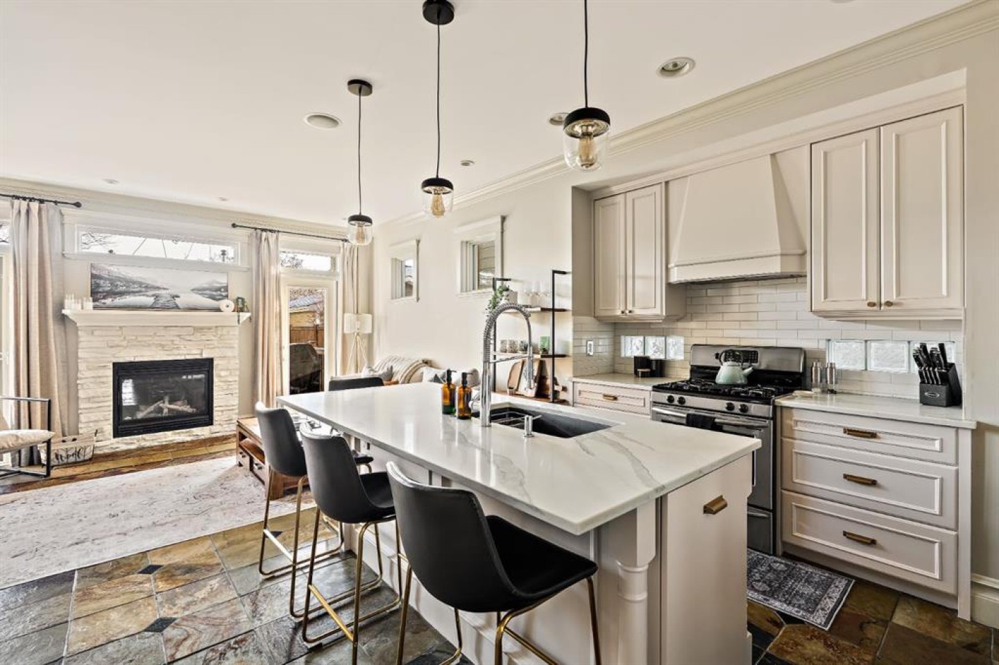 Refined inner-city living awaits at 2006 34 Street SW, an exquisite detached infill located in the heart of Killarney. Lovingly maintained and thoughtfully updated, this home blends traditional charm with modern elegance across nearly 2,500 square feet of beautifully finished living space. From the moment you arrive, the stunning curb appeal and classic exterior detailing set the tone for what lies within. Step inside to discover professionally curated interiors featuring flat ceilings, elegant crown mouldings, and a timeless colour palette that feels both warm and sophisticated. The open living and dining areas create an inviting space for entertaining, seamlessly flowing into a renovated kitchen designed for both function and style. Here, painted cabinetry is paired with quartz countertops, subway tile backsplash, updated lighting and hardware, modern appliances, and dual wine fridges. A breakfast bar allows guests to gather while meals are prepared, enhanced by a built-in speaker system that sets the mood for effortless hosting. At the rear of the home, the family room offers a cozy retreat anchored by a gas fireplace and direct access to the east-facing backyard. Outdoors, a weather-treated cedar deck and stone patio provide an exceptional extension of the living space, complete with low-maintenance perennial landscaping, multiple gas hookups, and integrated audio—perfect for year-round enjoyment. Upstairs, the second level features three well-appointed bedrooms, including a light-filled primary suite with vaulted ceilings, large windows, double closets, and a spa-inspired ensuite with dual vanities, soaker tub, and separate glass shower. Two additional bedrooms, a full four-piece bathroom, and upper-level laundry complete this floor with comfort and practicality. The fully developed basement adds outstanding versatility with a spacious recreation area, flexible space ideal for a home gym or office, a fourth bedroom, and a three-piece bathroom—perfect for guests or teens. Additional highlights include central air conditioning, smart home features, updated lighting, a heated and insulated double detached garage, and numerous thoughtful upgrades throughout. Ideally located close to parks, schools, transit, and amenities, with quick access to downtown and vibrant inner-city destinations, this exceptional home offers the very best of Calgary living. Simply put, 2006 34 Street SW is a home where comfort, style, and location come together seamlessly.