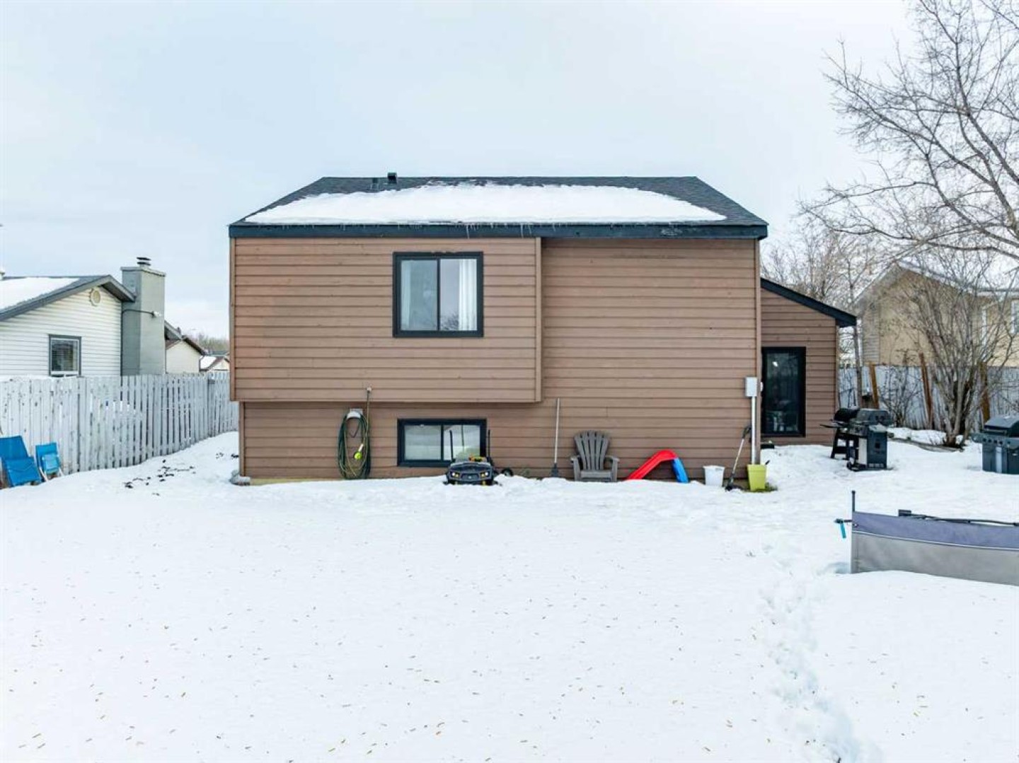 Affordable living at its finest! Welcome to 148 Silvertip Place, ideally situated on a quiet, highly sought-after street close to all amenities. This well-maintained home offers 3 bedrooms on the second floor, including a spacious primary bedroom with two generous closets, along with a recently renovated 5-piece bathroom featuring dual sinks. The main floor showcases a renovated kitchen with updated cabinets, countertops, sink and faucet, stainless steel appliances, a dining area large enough for the whole family, a convenient 2-piece bathroom, and a bright, spacious living room with access to the back deck and landscaped, fully fenced yard. The fully developed basement provides a versatile rec room, perfect for a home office or kids’ playroom, along with laundry. Notable upgrades include exterior paint, shingles (2019), front door (2019), patio door (2021), select windows replaced between 2020–2024, new bathroom tile on the main and second floors (2019), basement flooring (2019), and a full 5-piece bathroom renovation (2019). Additional features include air conditioning, an attached single-car garage, and a 6,300 sq. ft. lot. A fantastic opportunity in a peaceful location—call today for your personal showing!