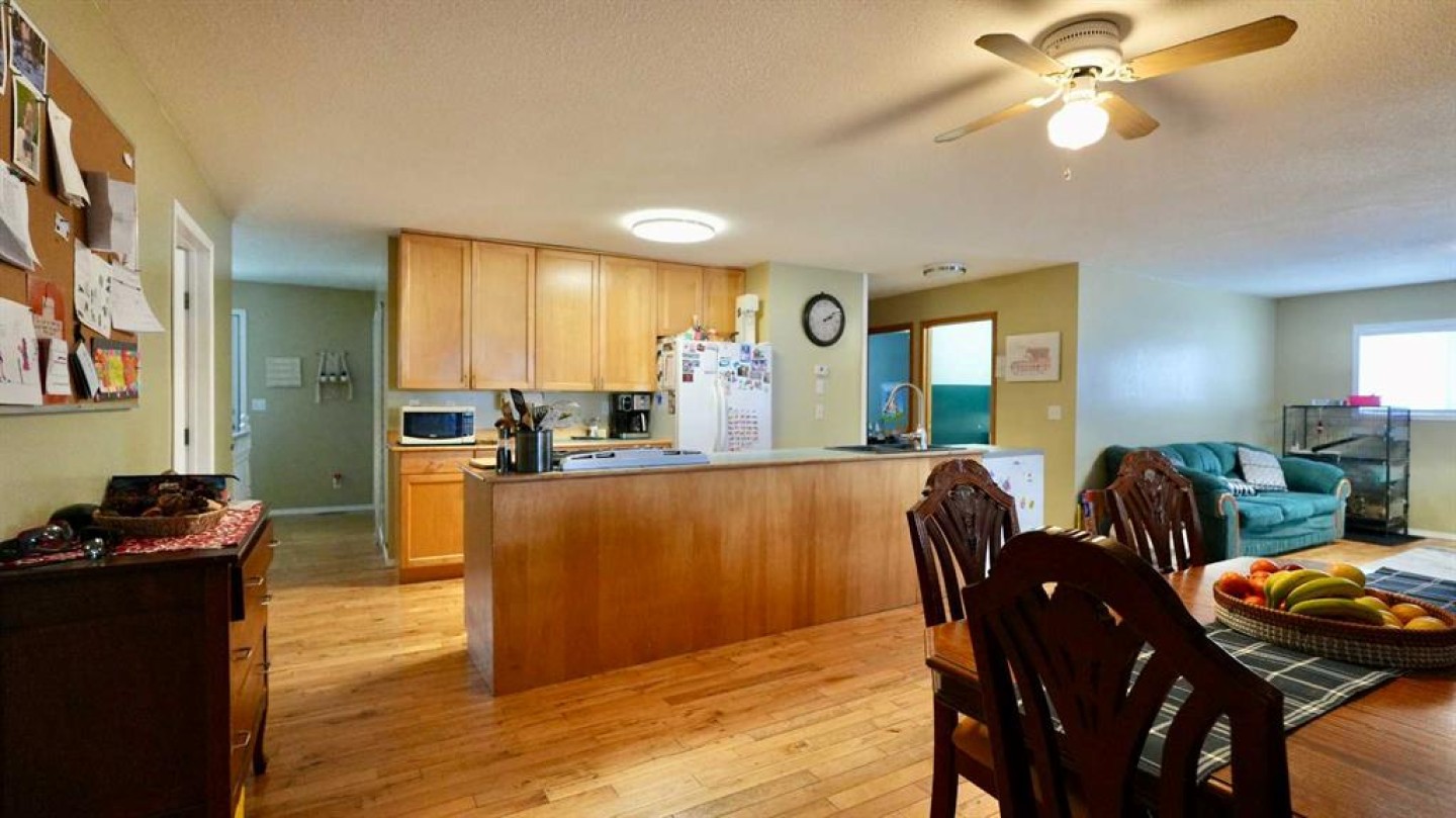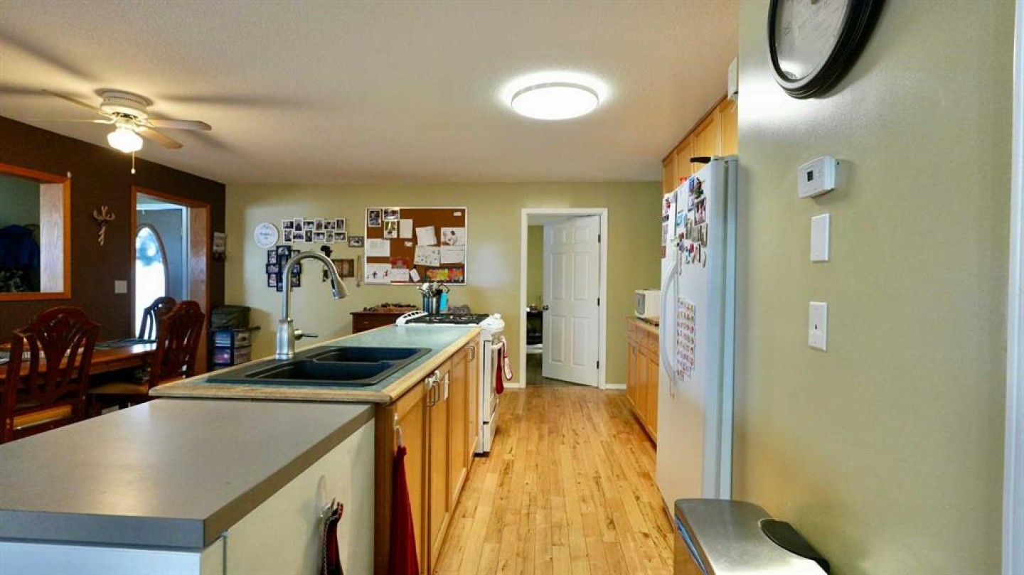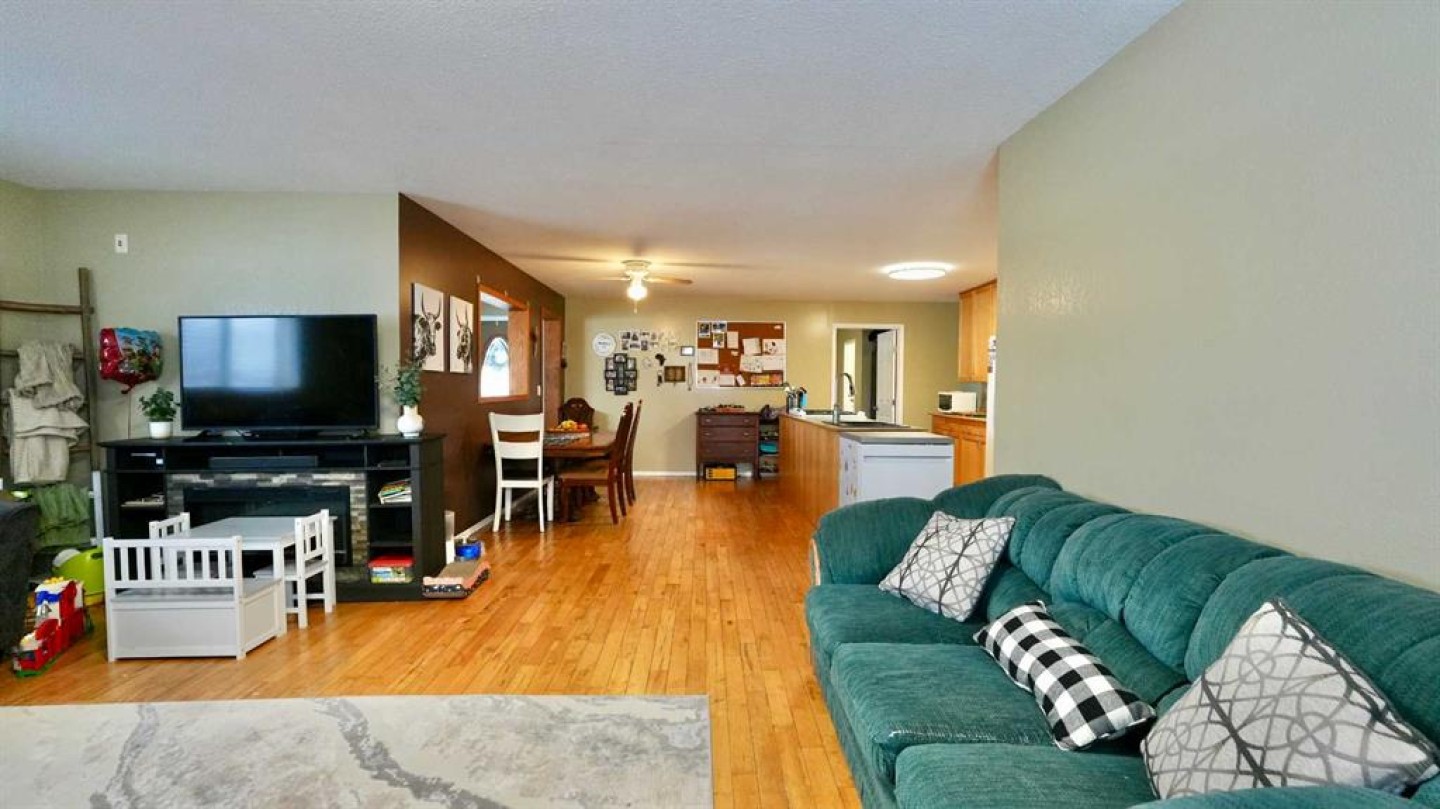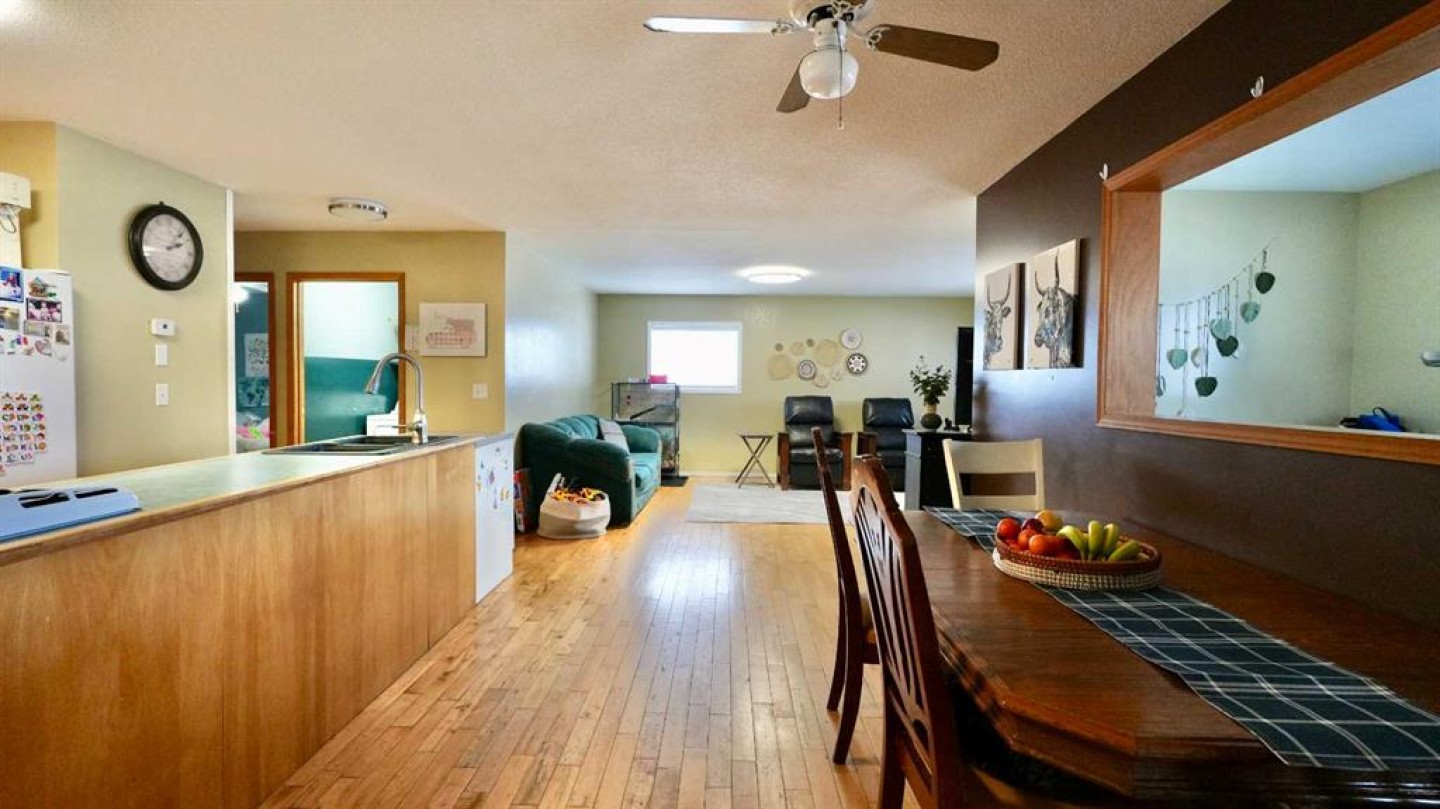 Take a look at this family-friendly 3-bedroom, 2-bathroom acreage that has just hit the market! Situated on 9.60 acres, including approximately 7 acres of cultivated land and five row of Saskatoon trees, this property is located just outside the farming community of Deadwood, AB. Offering over 1,500 sq. ft of developed living space on the main level, this well-maintained home clearly reflects pride of ownership. You are welcomed by a generous entryway and an open, functional floor plan, highlighted by a mix of hardwood and laminate flooring. The main level provides ample space for everyday living and entertaining, while the unfinished lower level offers excellent potential to expand your living area with a family room, additional bedrooms or recreation space. A cold storage room adds convenient space for garden produce and extra storage. The kitchen features a central island and pantry, providing plenty of room for meal prep and storage. Step outside to the nicely sized deck, perfect for summer barbecues and outdoor relaxation in you own sanctuary. Recent updates include new asphalt shingles and connection to the municipal water co-op program. Location is key – this home offers peaceful country living while remaining close to the heart of the Deadwood community and just a short distance to Manning.